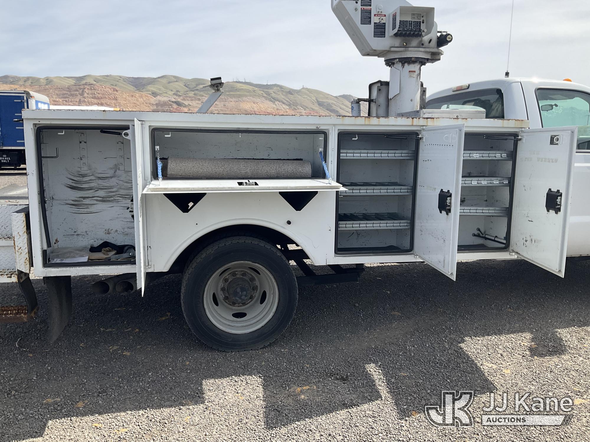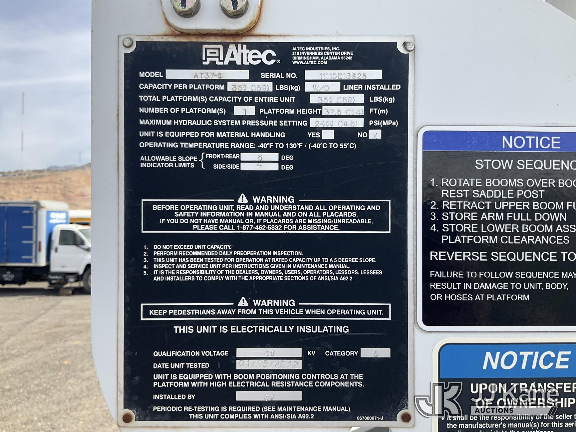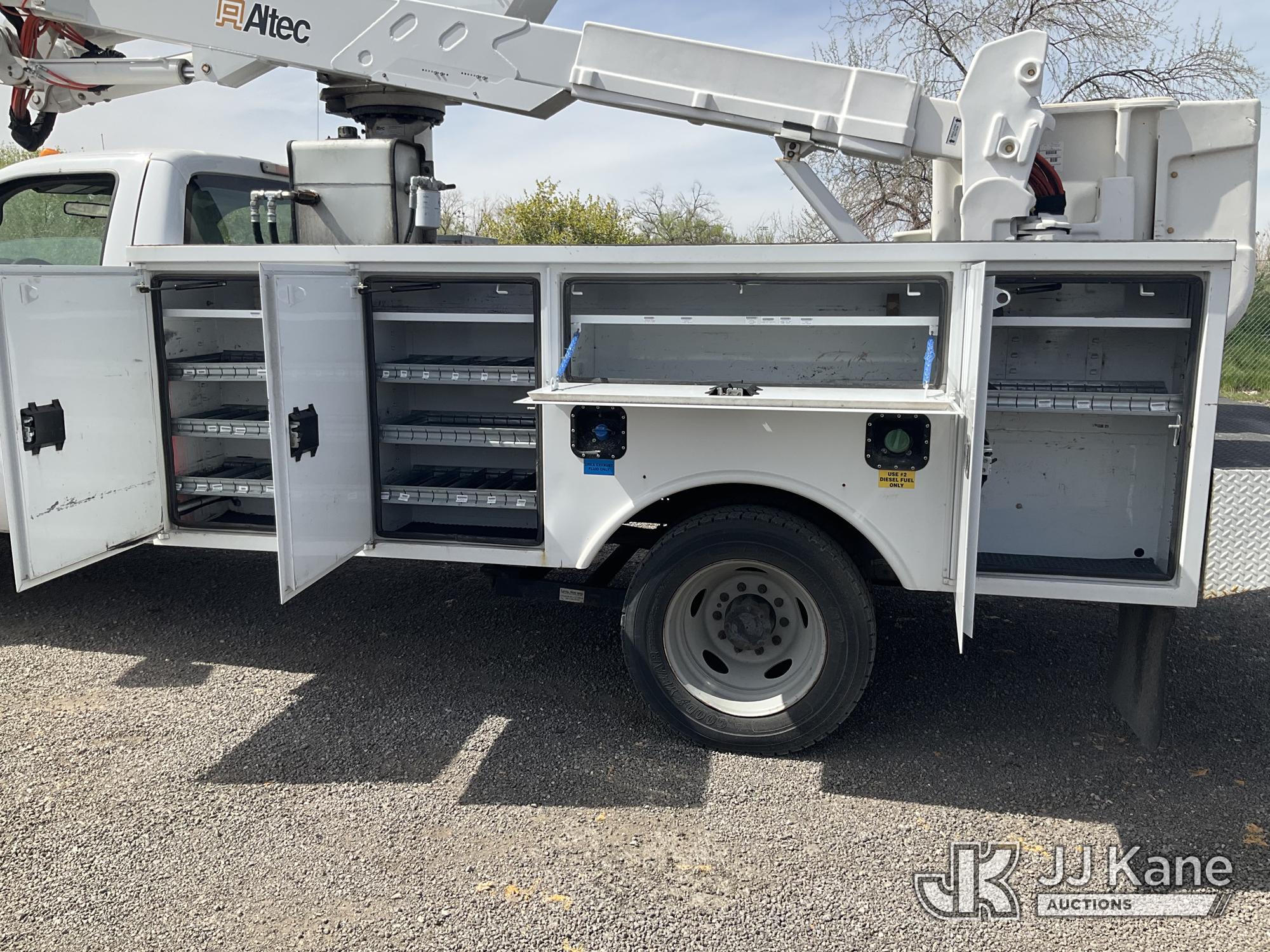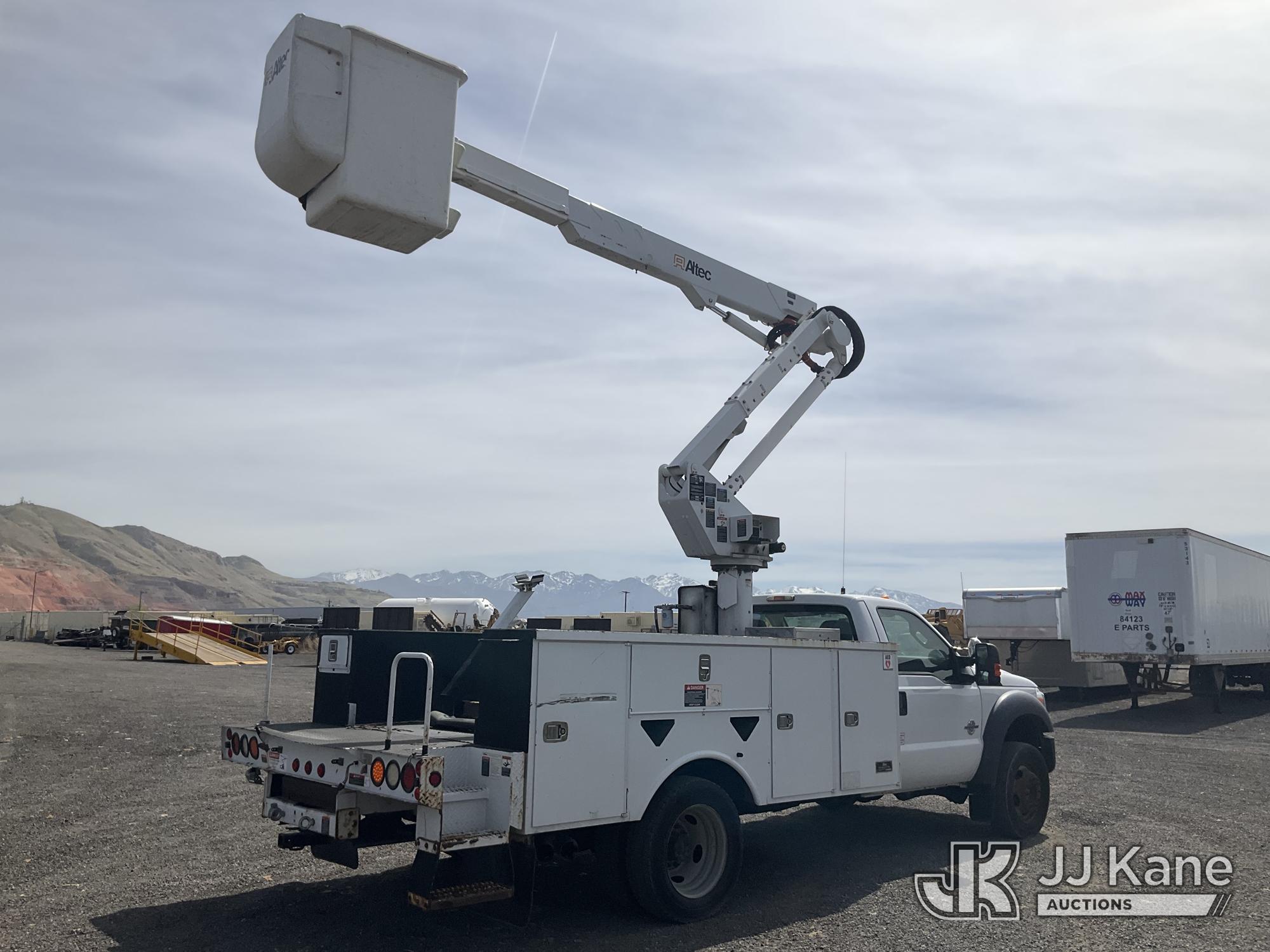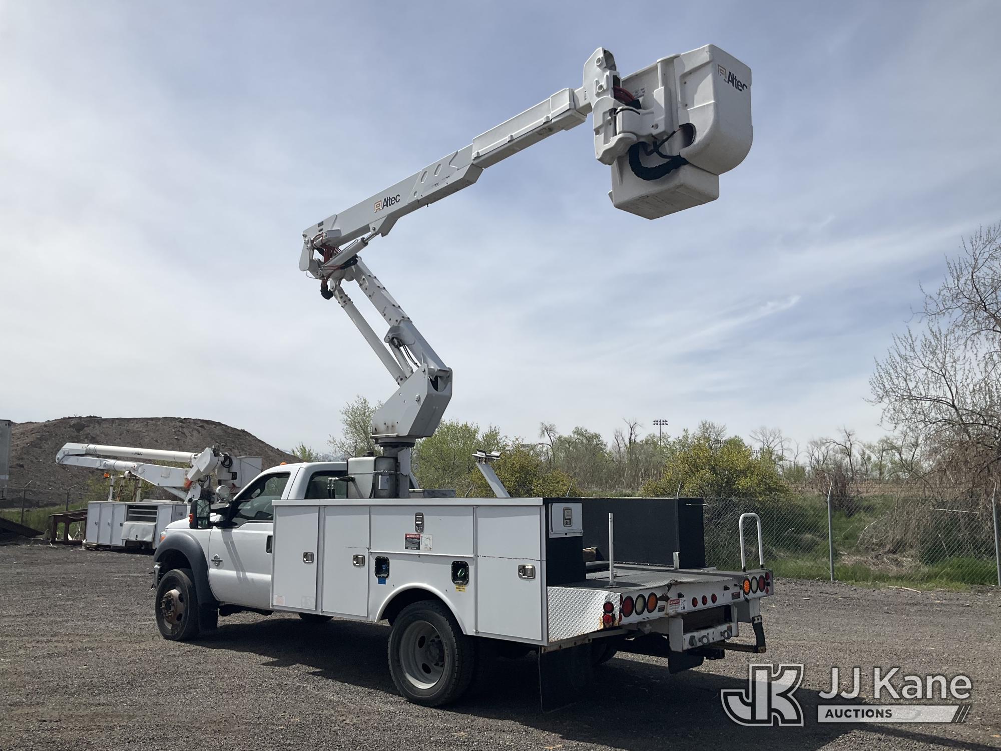 Altec AT37G, 42 ft, Articulating & Telescopic Bucket Truck s/n 1111DE13628, with single man bucket, mounted behind cab on 2012 Ford F550 4x4 Service Truck, 6.7L diesel, Auto, A/C, (115,509 miles) (Runs, Moves & Upper Operates) (Check Engine Light On ) This is a Titled Item*