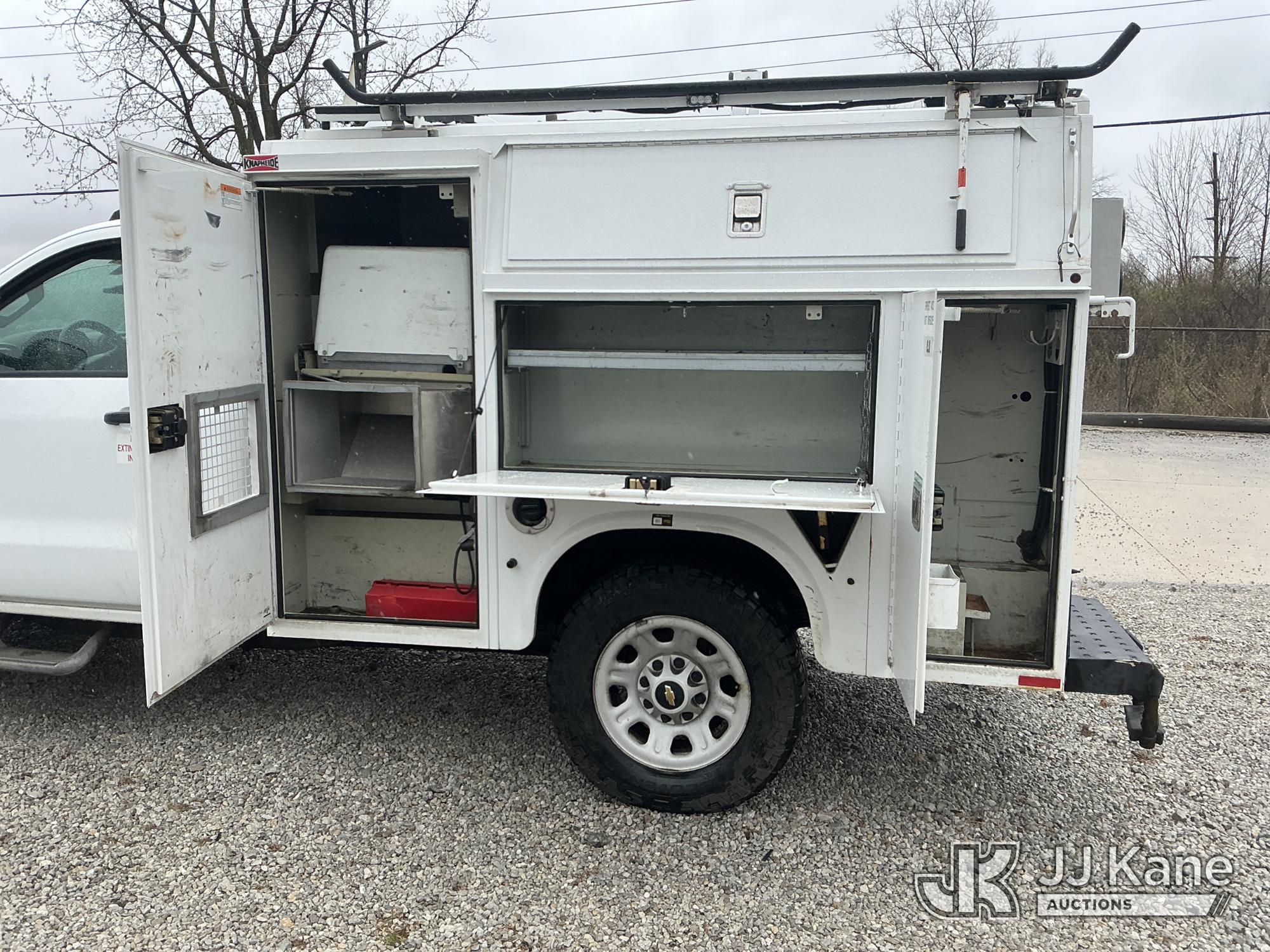 2015 Chevrolet Silverado 3500HD Enclosed Service Truck, 6.0L V8 OHV 16V FFV gas, RWD, 6-Speed Automatic, A/C, with inverter, generator & air compressor, (61,051 miles) (Runs & Moves) (Body/Paint Damage, Some Doors Open Hard) (Reads 4,041 hours) This is a Titled Item*