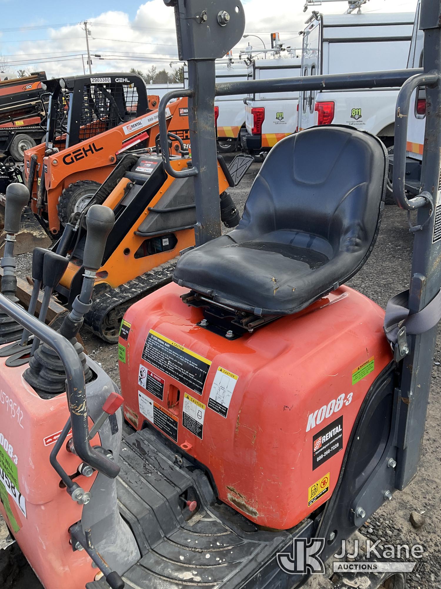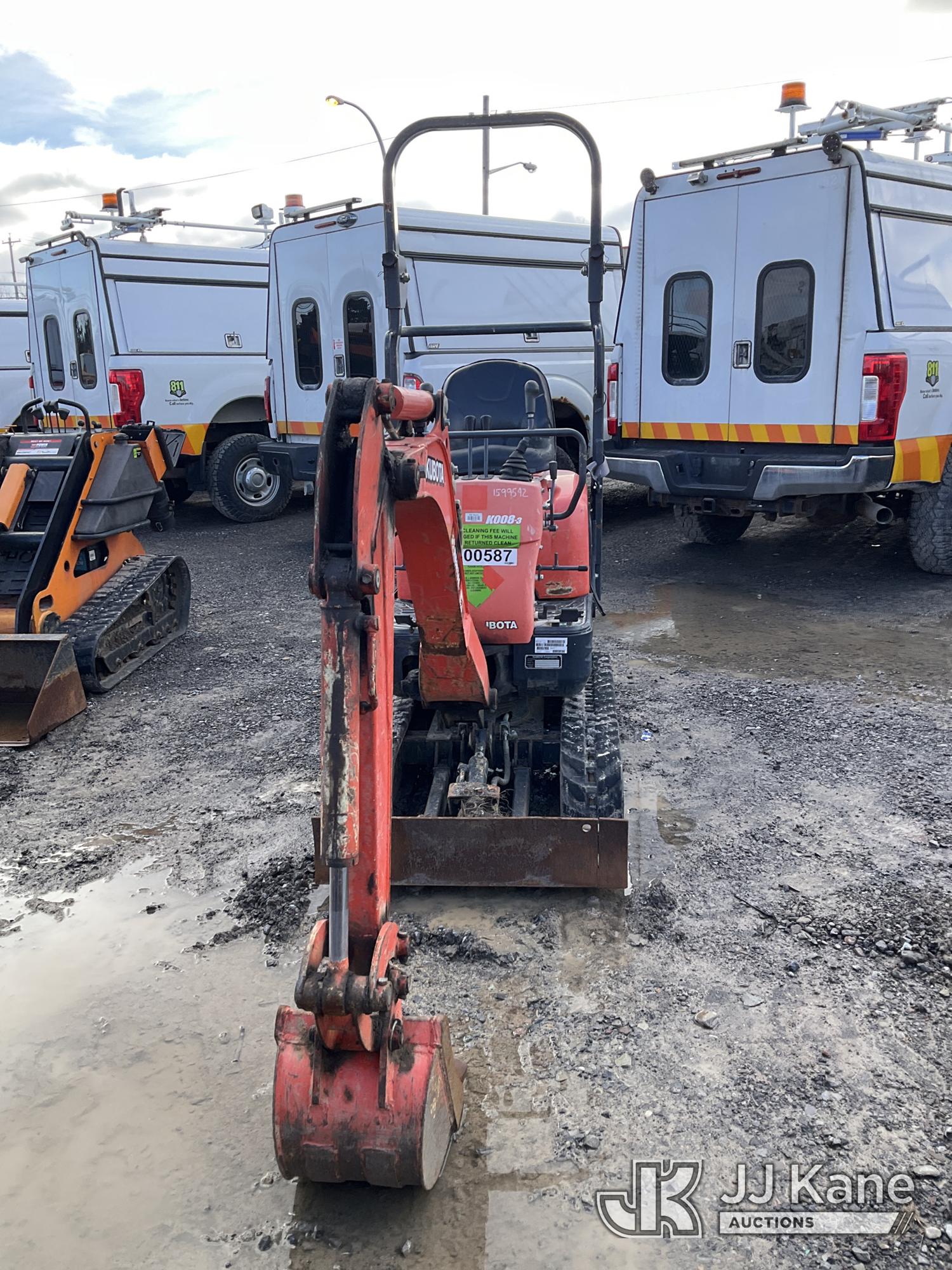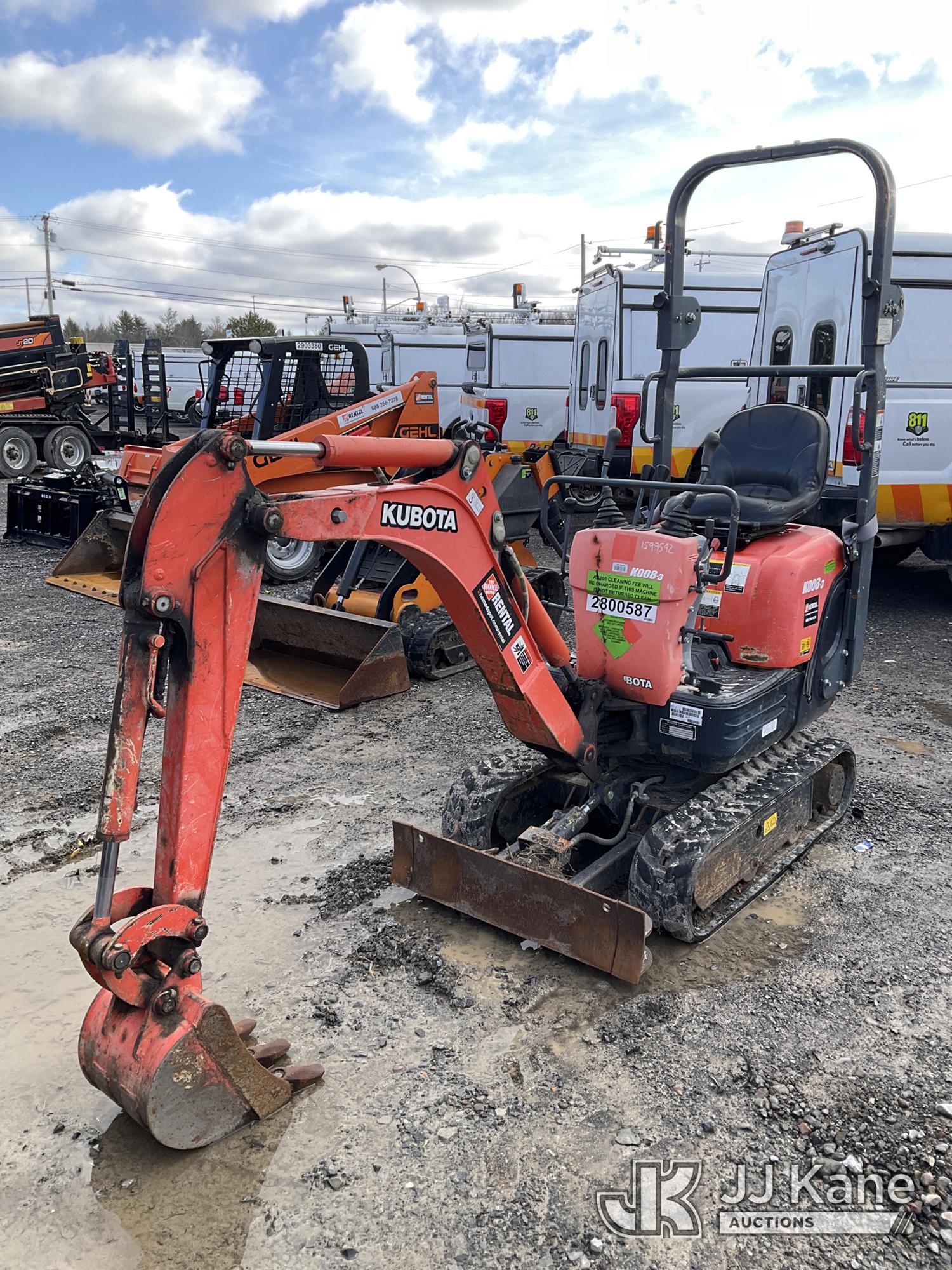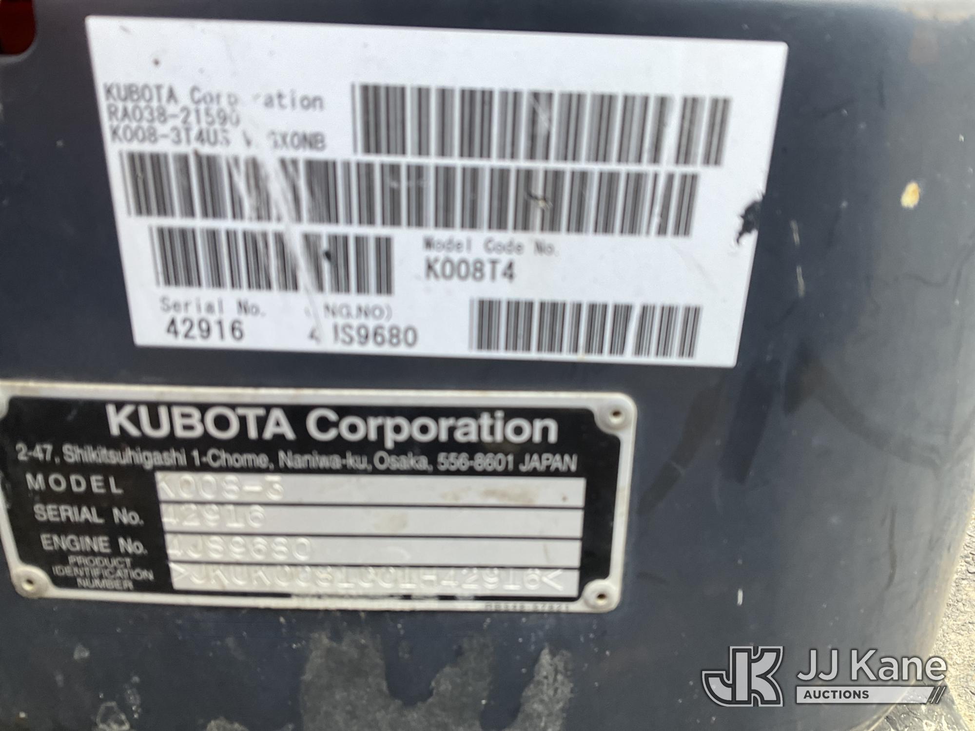 2019 Kubota K008-3 Mini Hydraulic Excavator, s/n 42916, Kubota diesel, Hydraulic Drive, with 12in Digging Bucket, Backfill Blade, Rubber Tracks & ROPS, (Runs, Moves & Operates) (Reads 683 hours)*