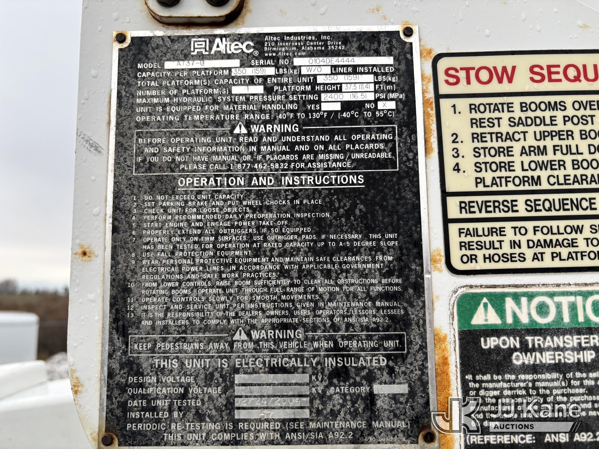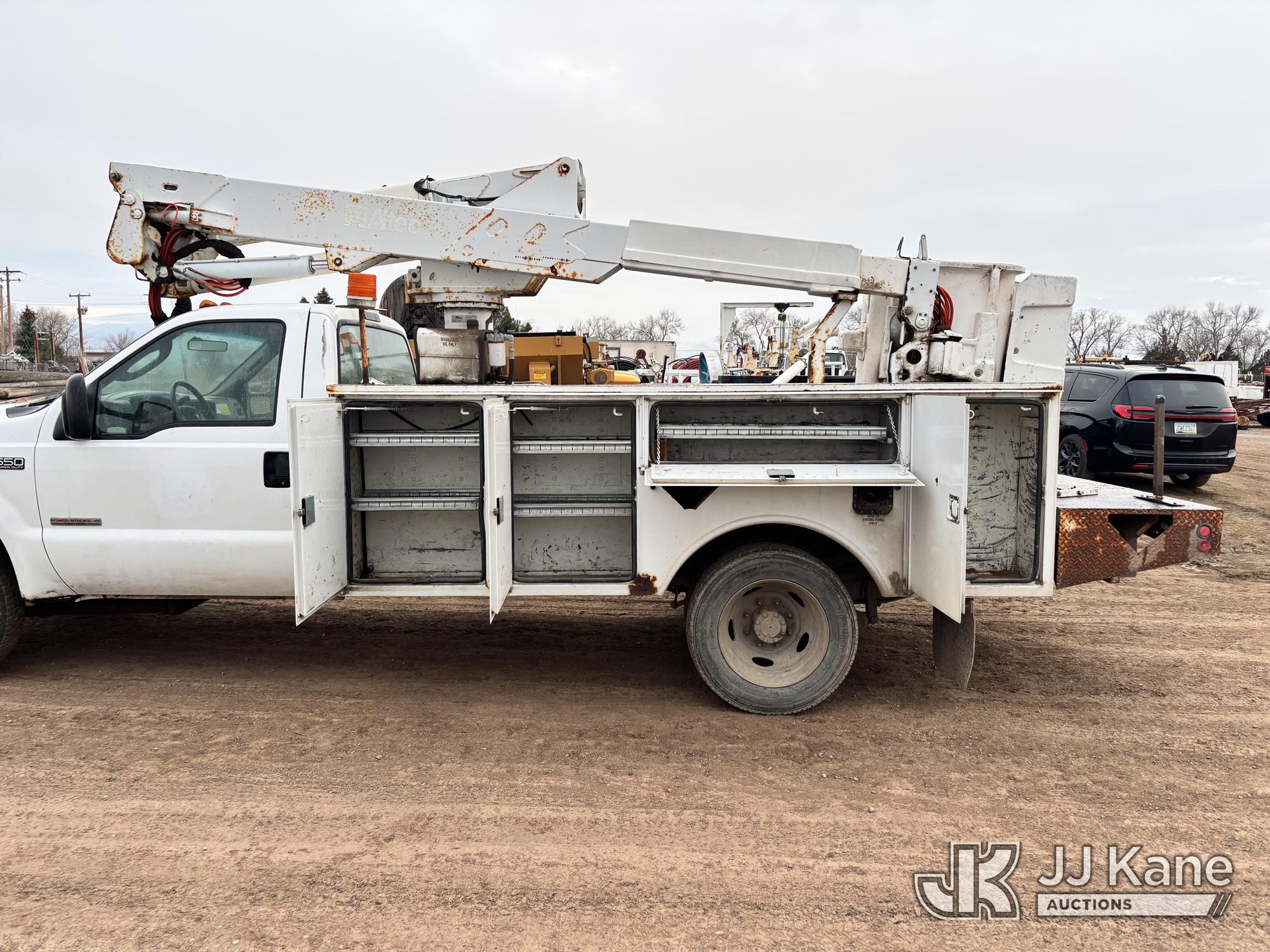 Altec AT37G, 42 ft, Articulating & Telescopic Bucket Truck s/n 0104DE4444, with single-man bucket, mounted behind cab on 2003 Ford F-550 Service Truck, 6.0L Turbo Diesel Auto, A/C, (Exempt from Odometer Disclosure - Reads 133,227 miles) Seller States: Head gasket / Failed Dielectric Test (Runs, Moves & Operates) This is a Titled Item*