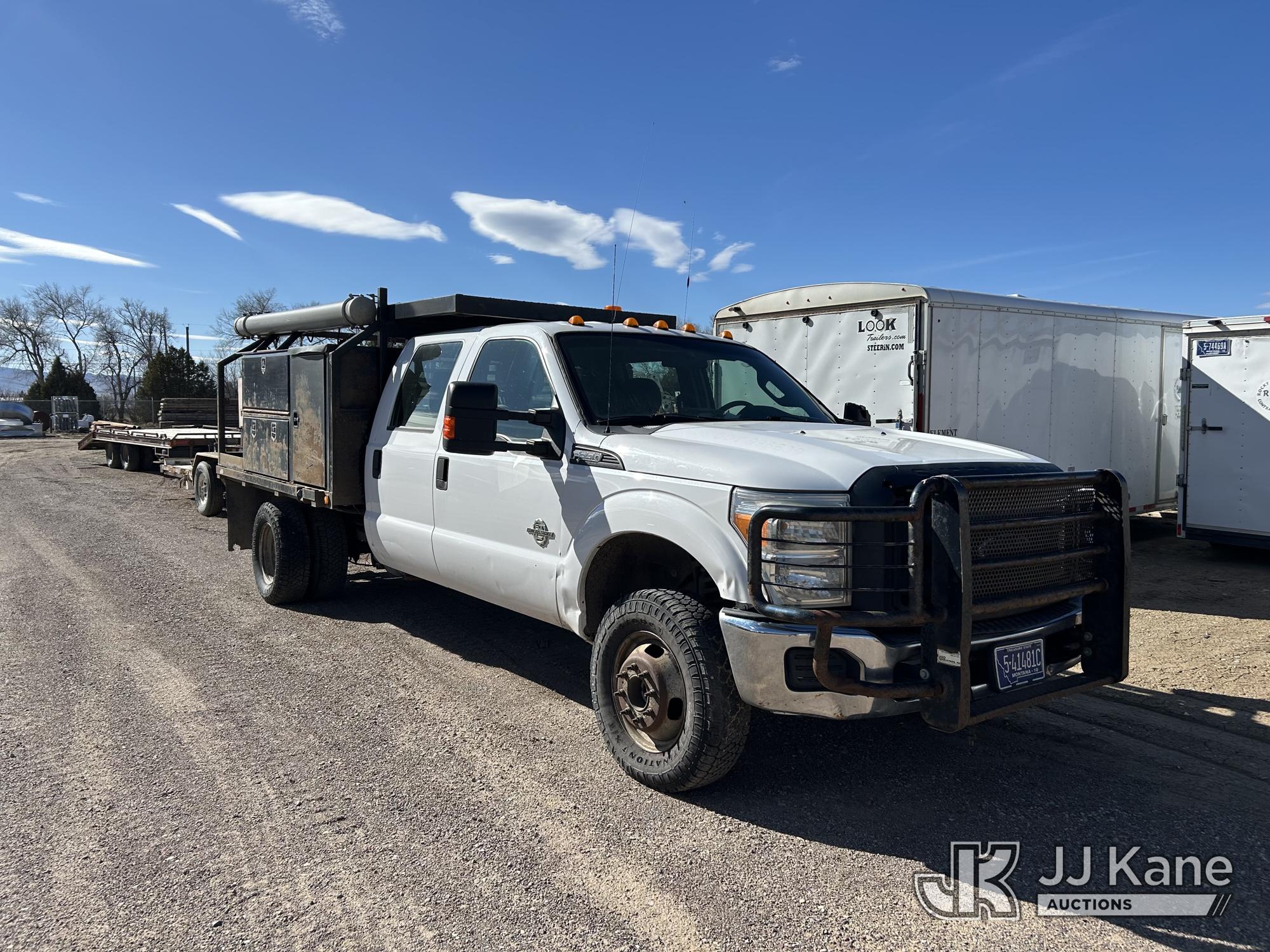 2013 Ford F-350 SD Crew-Cab Flatbed/Service Truck, 6.7L diesel, 4WD, Auto, A/C, (262,387 miles) (Runs & Moves)(Check Engine Light On) (Seller States: Injectors, CCV, Driveline is removed will drive onto a trailer in 4wd, DEF Lines) This is a Titled Item*