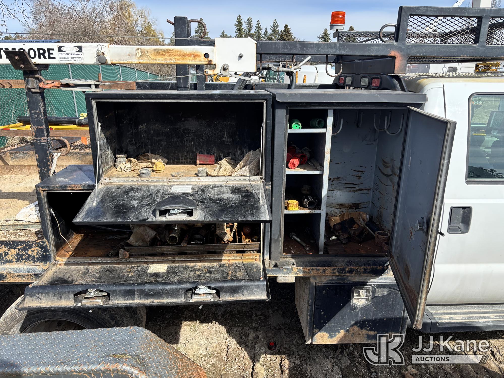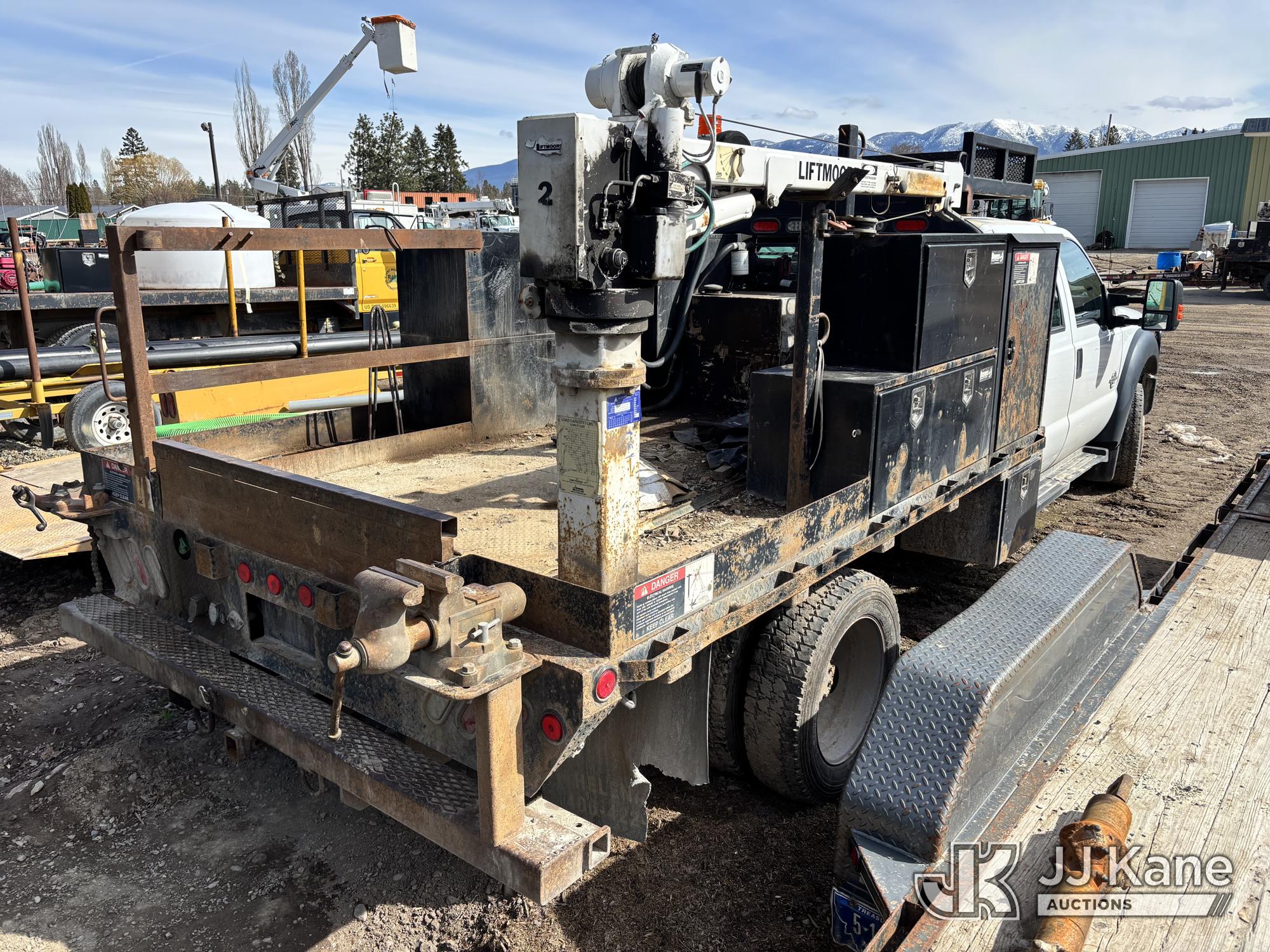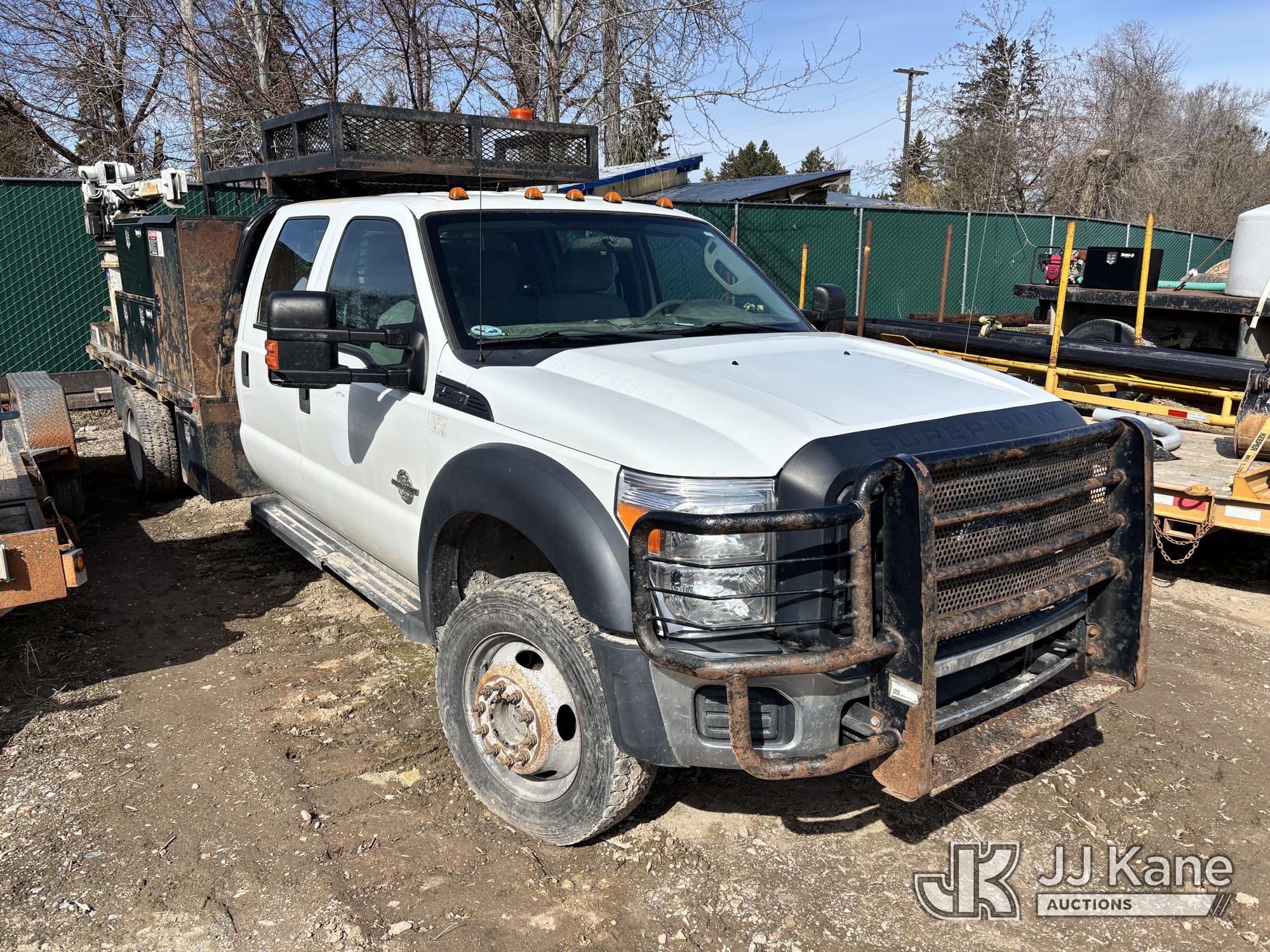 2015 Ford F-550 Crew-Cab Flatbed/Service Truck, 6.7L diesel, 4WD, Auto, A/C, with Liftmoore material crane, fuel transfer tank, True Mileage Unknown (Not Running, Condition Unknown) (Seller States: Fuel System, Turbo, Windshield have issues) This is a Titled Item*