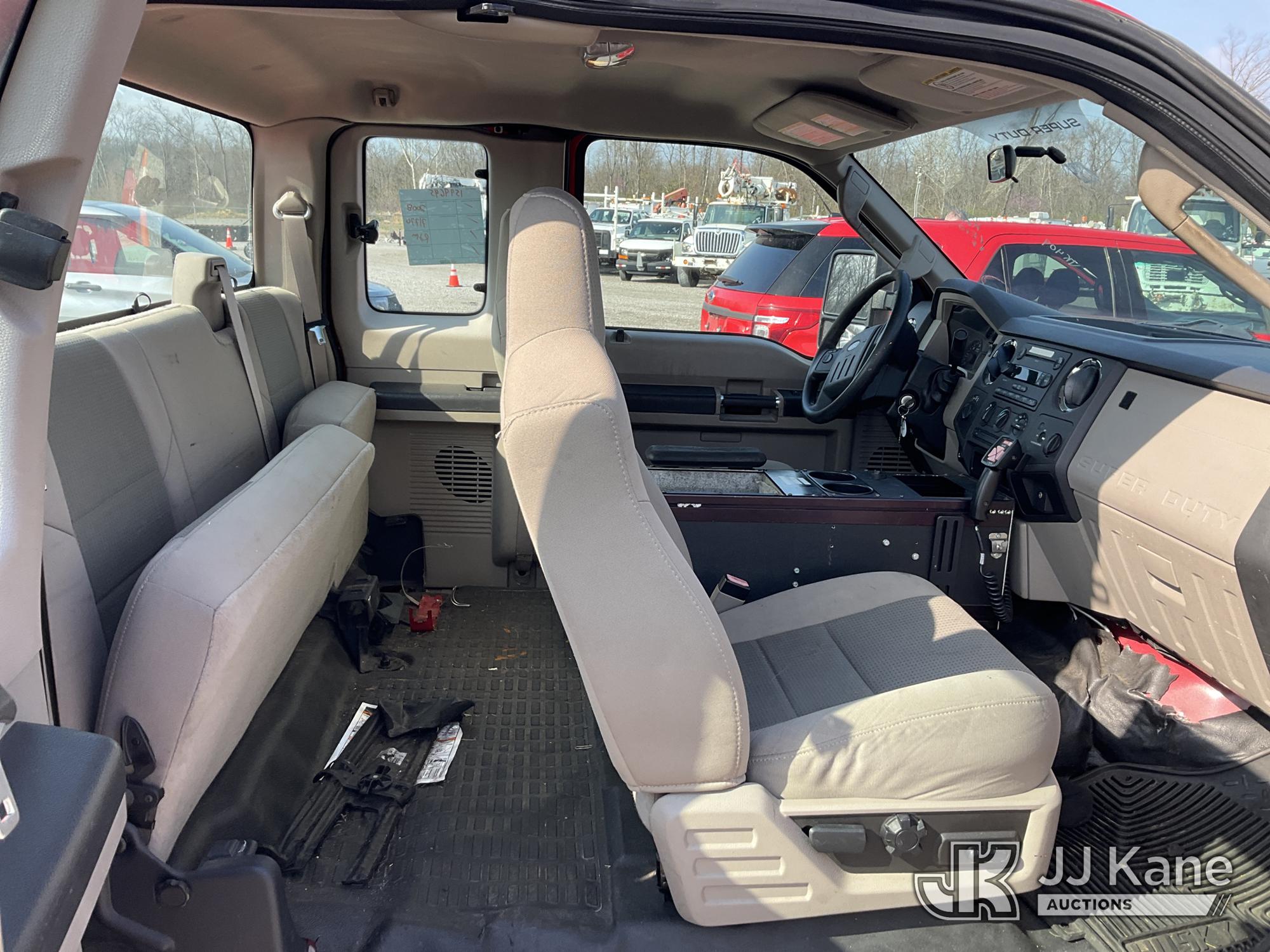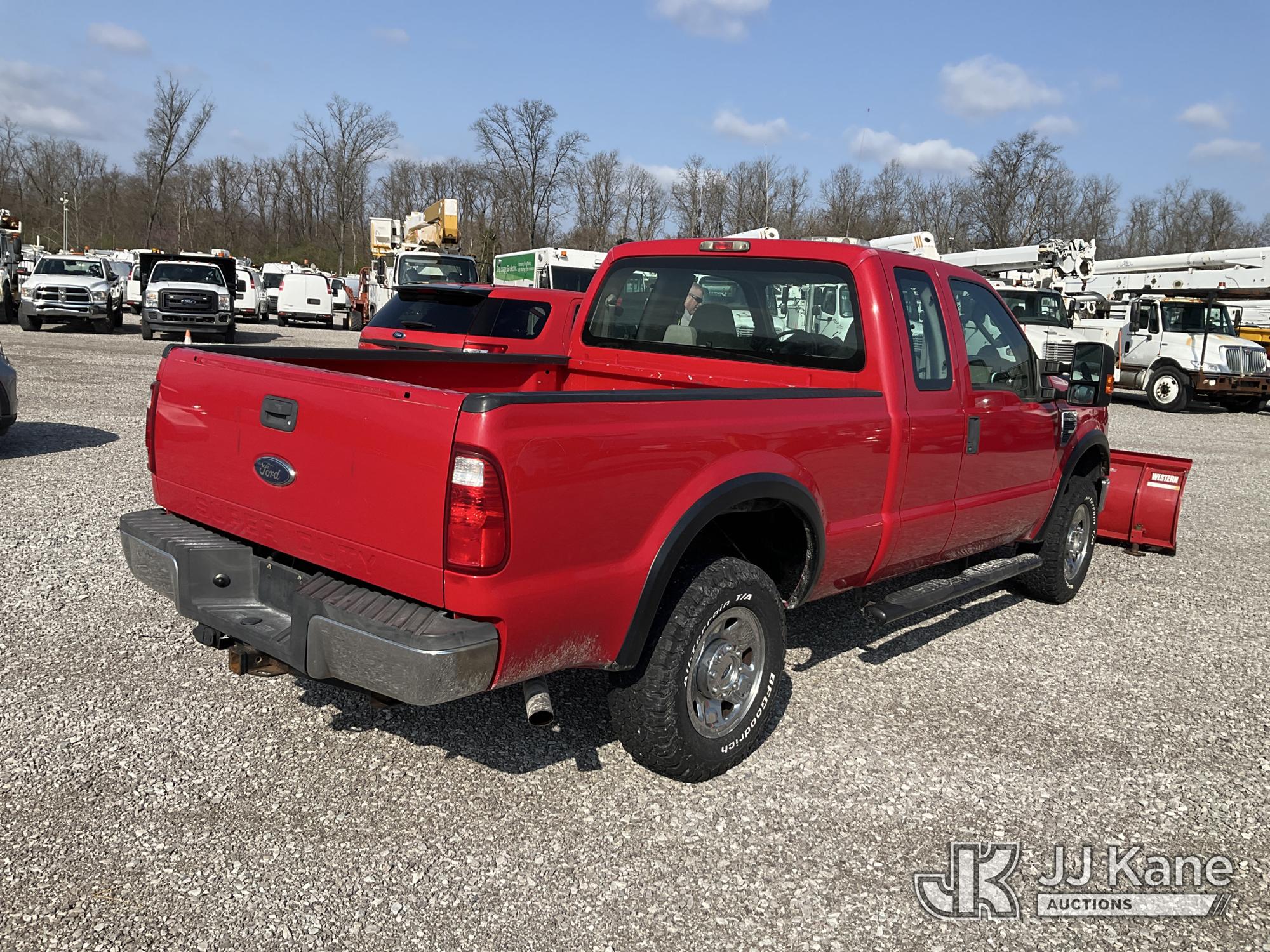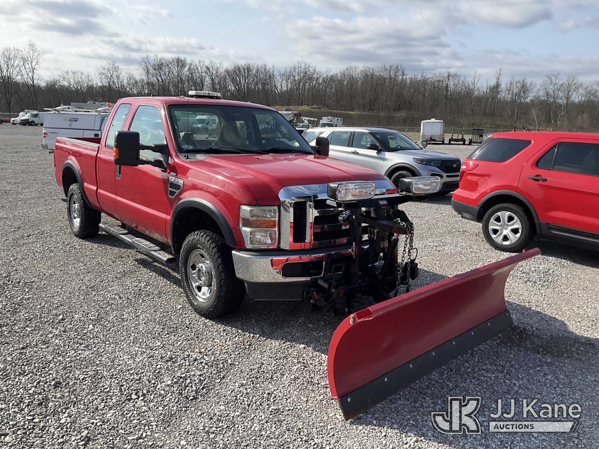 2008 Ford F250 4x4 Extended-Cab Pickup Truck, 5.4L V8 SOHC 16V gas, Auto, A/C, with 7ft 6in Western snow plow, (71,770 miles) (Runs & Moves) (Check Engine Light On, Body Damage, Exhaust Leak) This is a Titled Item*