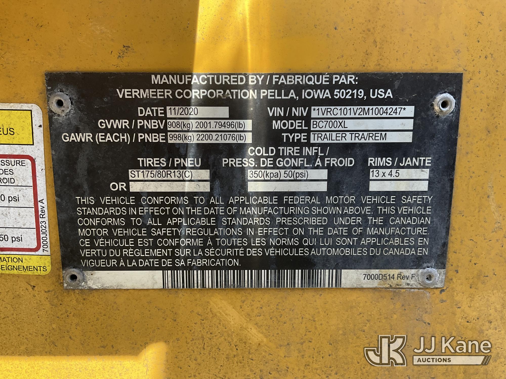 2021 Vermeer Corporation BC700XL Chipper, Kohler gas, (Not Running, Condition Unknown) (Reads 287 hours) This is a Titled Item*