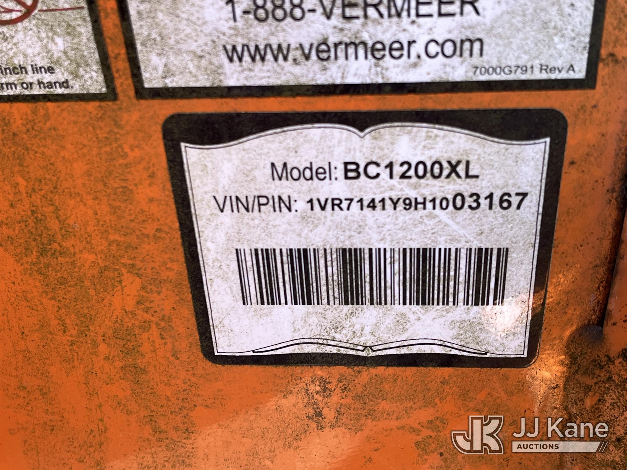 2017 Vermeer BC1200XL Chipper (12in Drum), s/n 1VR7141Y9H1003167, Gas, trailer mtd. (No Title) (Runs, No Keys, Body & Rust Damage.) (Reads 506 hours)*