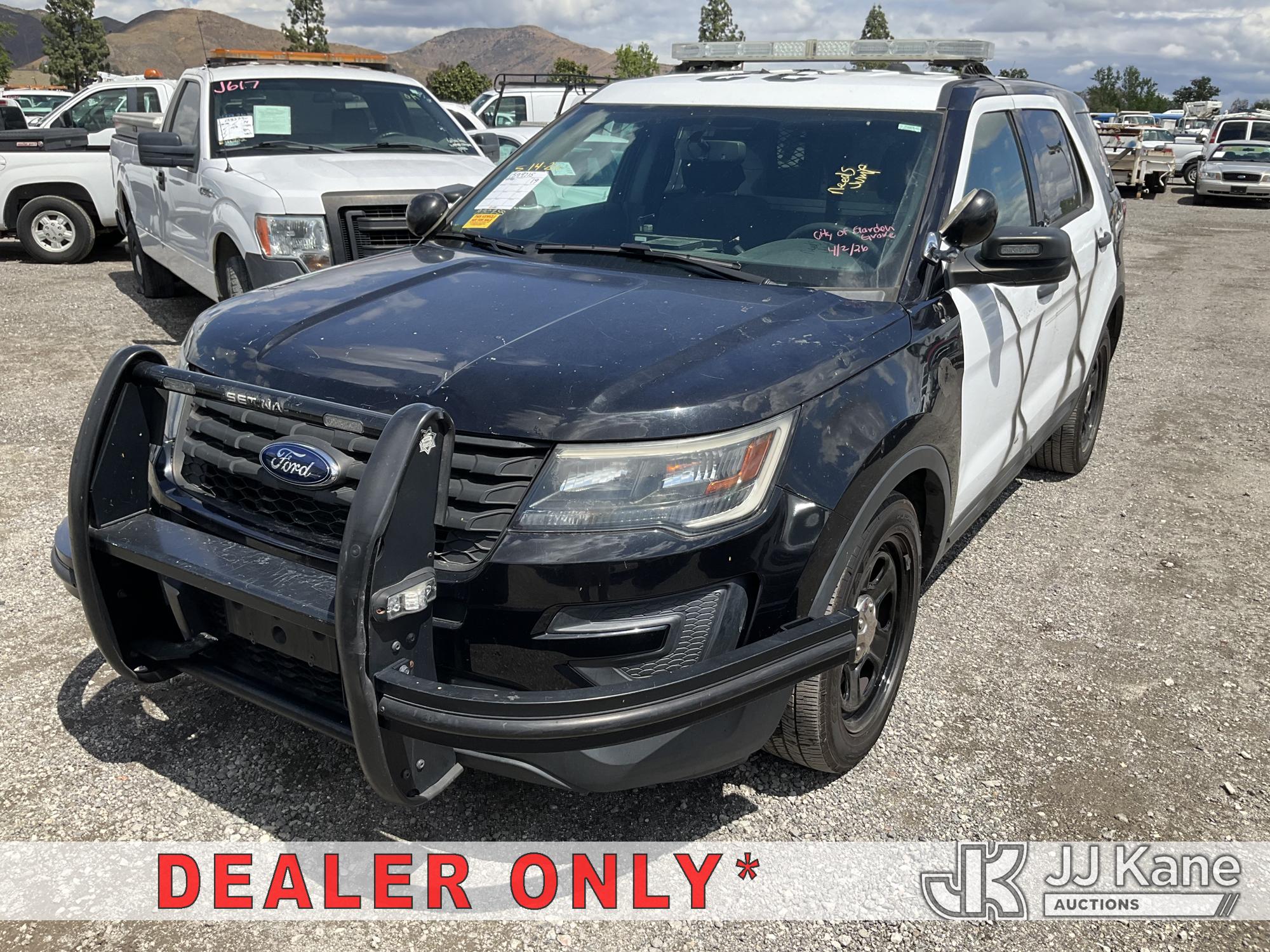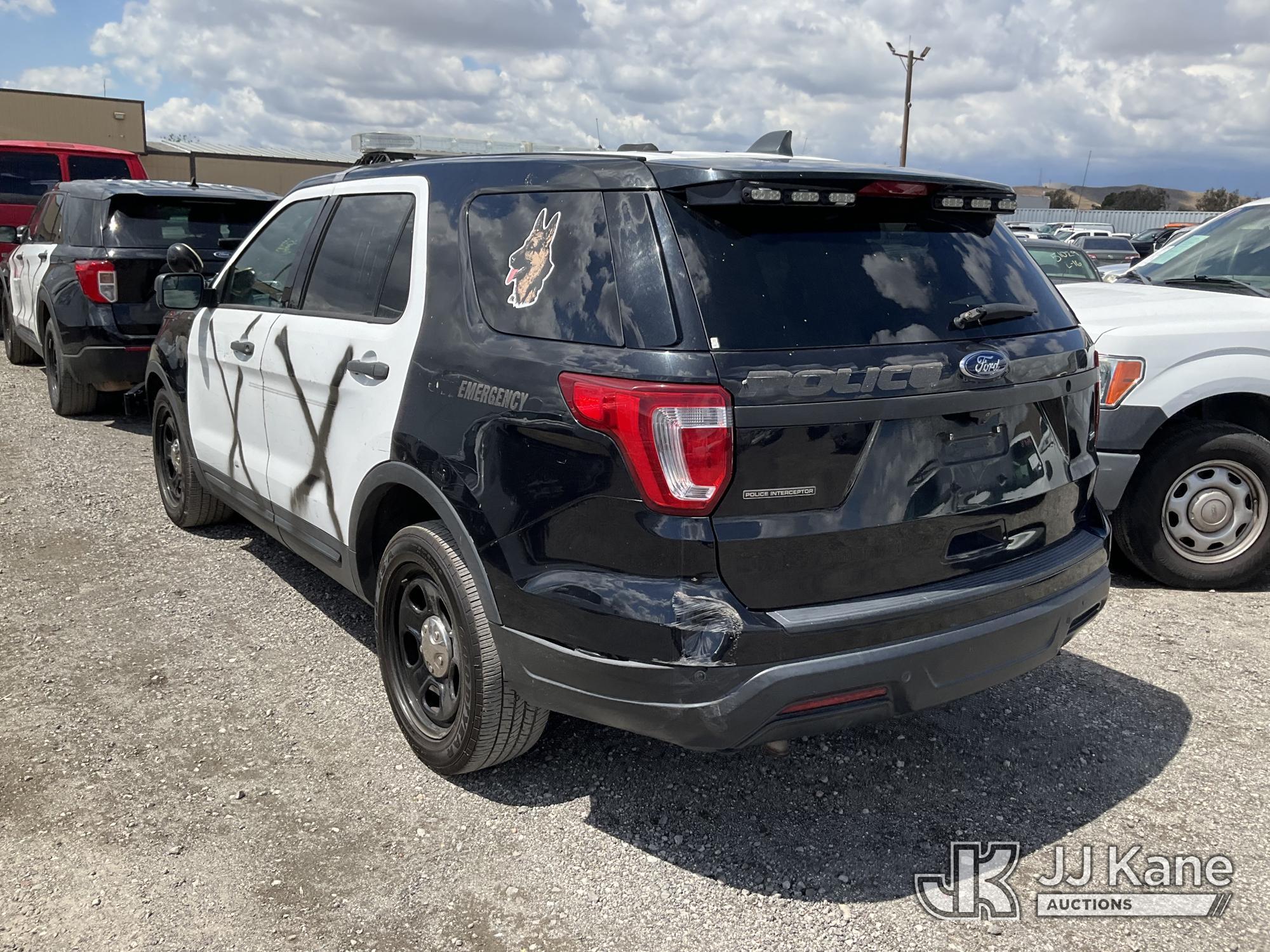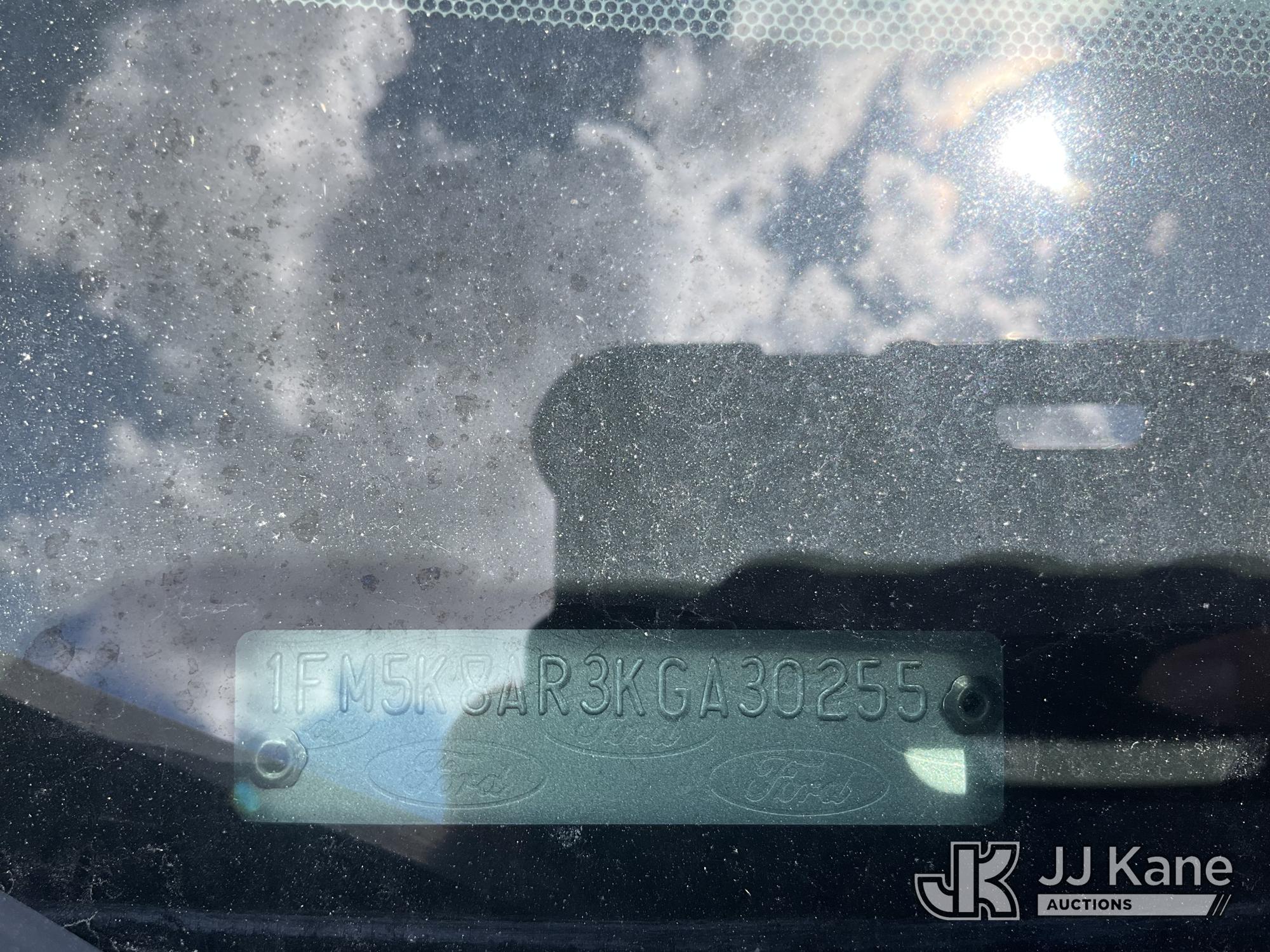2019 Ford Explorer Police 4WD 4-Door Sport Utility Vehicle, s/n 1FM5K8AR3KGA30255, 3.7L V6 DOHC 24V GAS, 6-Speed Automatic, (109,846 miles) (Runs & Moves, Engine Light On, Interior Stripped Of Parts, Open Recall, Remedy Not Yet Available, Vehicle is subject to an open NHTSA safety recall related to EXTERIOR A-PILLAR APPLIQUE MOLDING INSPECTION AN EXTERIOR A-PILLAR TRIM PART THAT DETACHES WHILE DRIVING CAN CREATE A ROAD HAZARD FOR OTHER ROAD USERS, INCREASING THE RISK OF A CRASH but a remedy for this recall does not appear to be available. Dealer is not authorized to perform the recall repair. Periodically contact the manufacturer or check the VIN on the NHTSA website at www.safercar.govivin to determine whether a remedy for the recall is available. As soon as a remedy is available, arrange to have the recall remedied with a dealer from that make of car to make such repair.) (Bidding Restricted to Licensed Vehicle Dealers Only), This is a Titled Item*