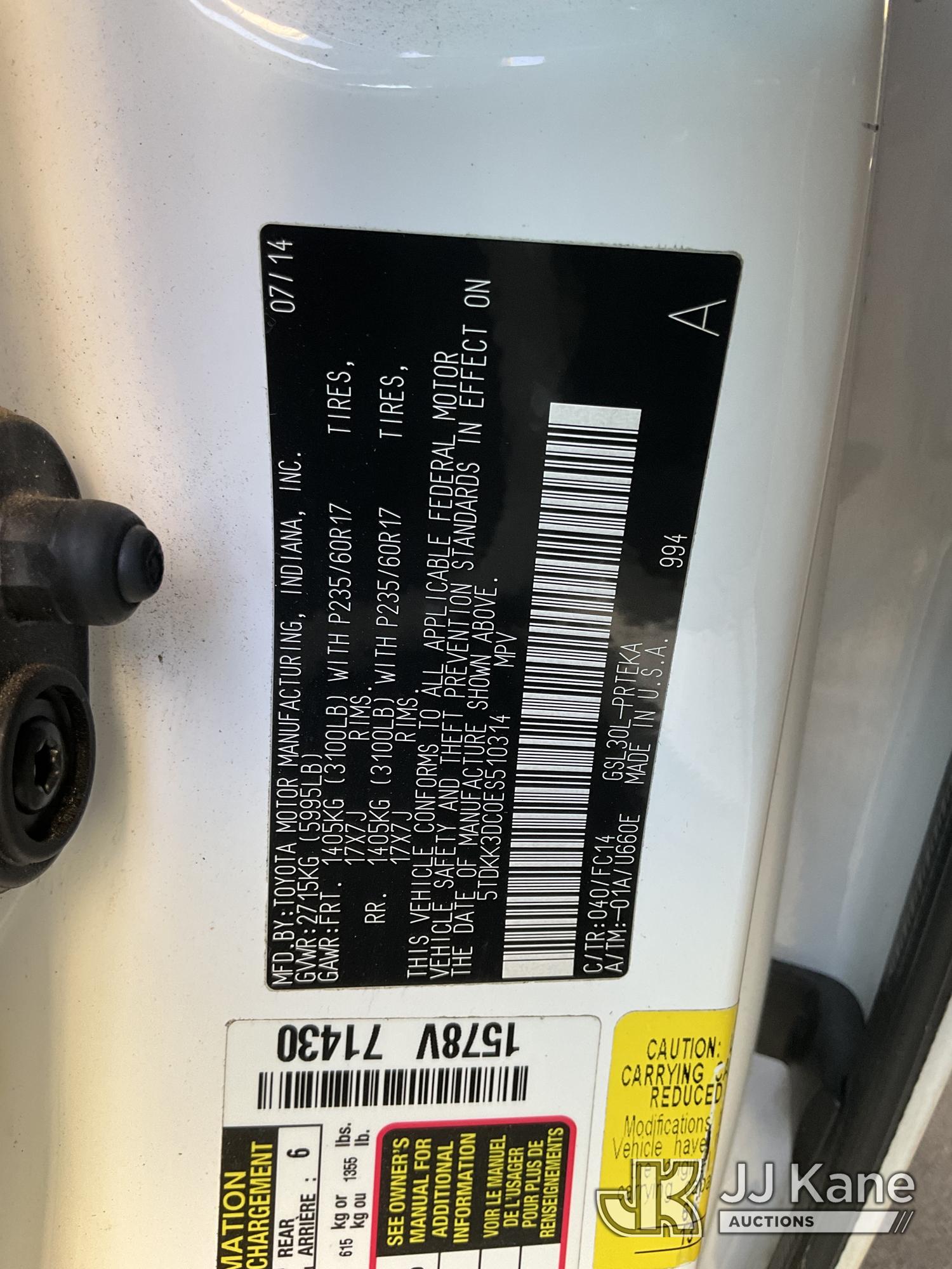 2014 Toyota Sienna LE FWD 8-Passenger V6 Mini Passenger Van, s/n 5TDKK3DC0ES510314, 3.5L V6 EFI DOHC 24V FWD, GAS, 5-Speed Automatic, A/C, (37,757 miles) (Runs & Moves) This is a Titled Item*