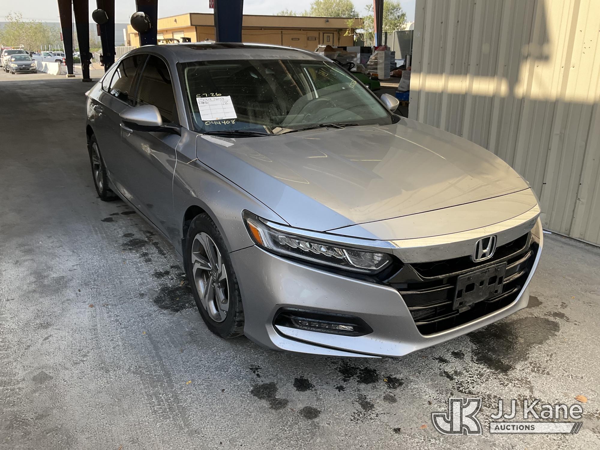 2018 Honda Accord EX-L 2.0T 10A 4-Door Sedan, s/n 1HGCV2F55JA044408, 2.0L L4 DOHC 16V TURBO FWD, GAS, 10-Speed Automatic, A/C, with Sunroof, (74,928 miles) (Runs & Moves)(Vehicle previously used with a 'cold plate' or protected record registration. Due to the prior status, VIN may not appear in NMVTIS, which could affect DMV title/registration processing. Buyer acknowledges and accepts this) This is a Titled Item*