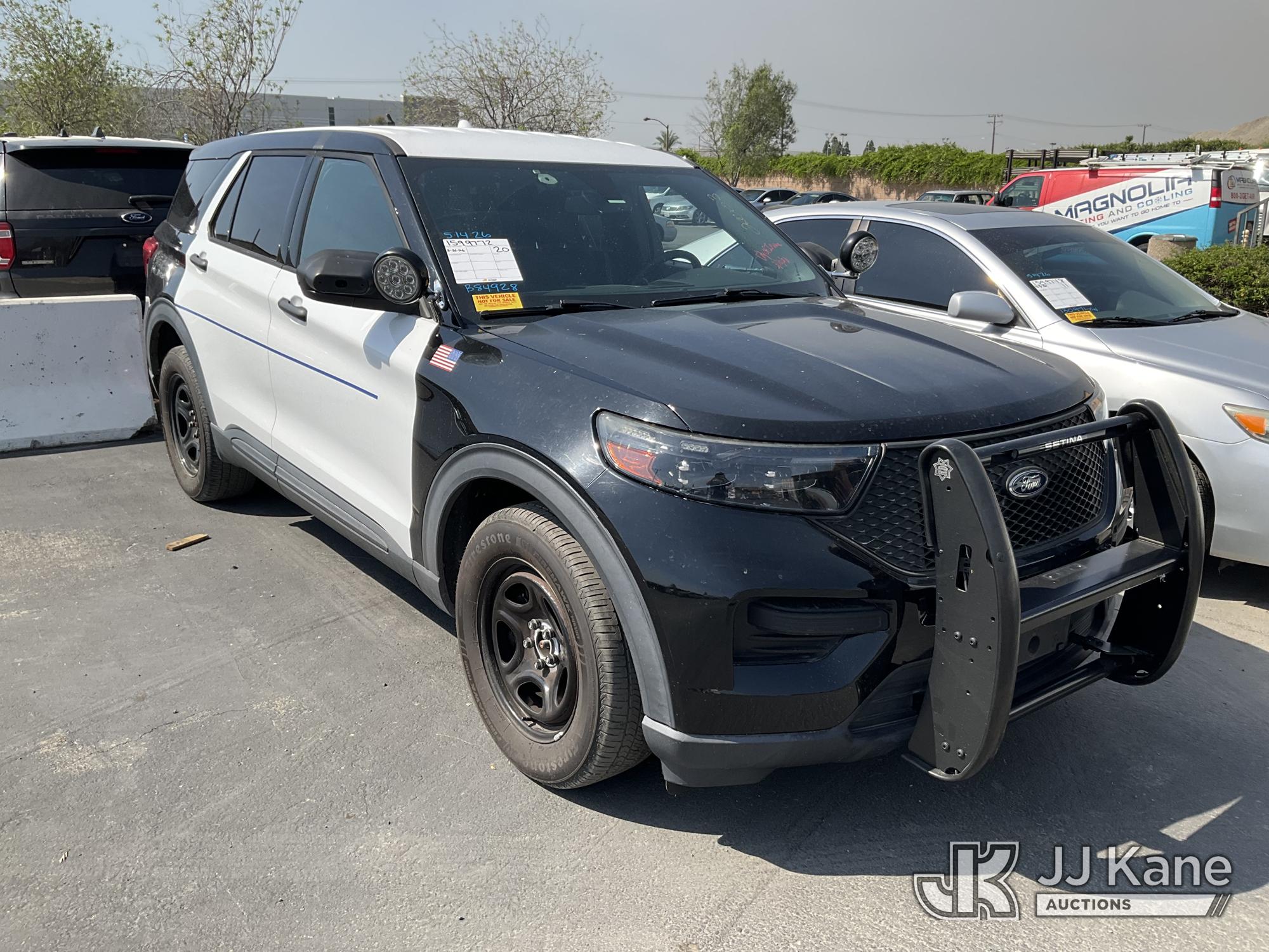 2020 Ford Explorer Police 4WD 4-Door Sport Utility Vehicle, s/n 1FM5K8AB2LGB84928, 3.3L V6 DOHC 24V AWD, GAS, 10-Speed Automatic, A/C, with Push bar, (58,179 miles) (Runs & Moves, Interior Stripped Of Parts) This is a Titled Item*