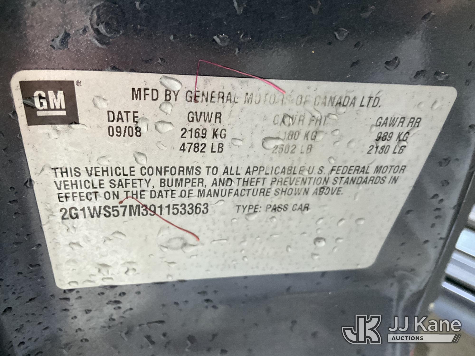 2009 Chevrolet Impala Police 4-Door Sedan, s/n 2G1WS57M391153363, 3.9L V6 FWD, GAS, 4-Speed Automatic, A/C, (106,234 miles) (Runs & Moves, No Horn, Engine Light On, Per Seller B/O Transmission) (Bidding Restricted to Licensed Vehicle Dealers Only), This is a Titled Item*