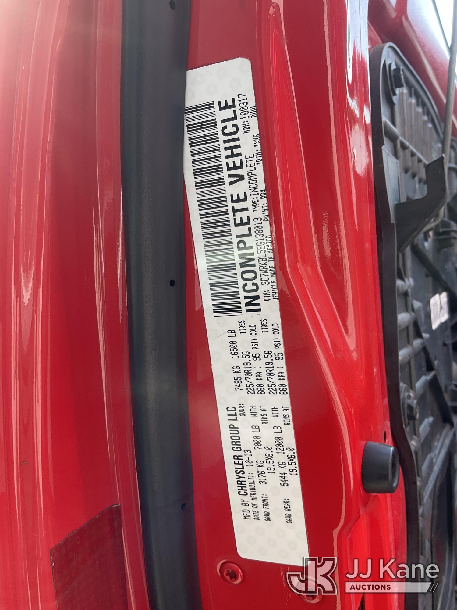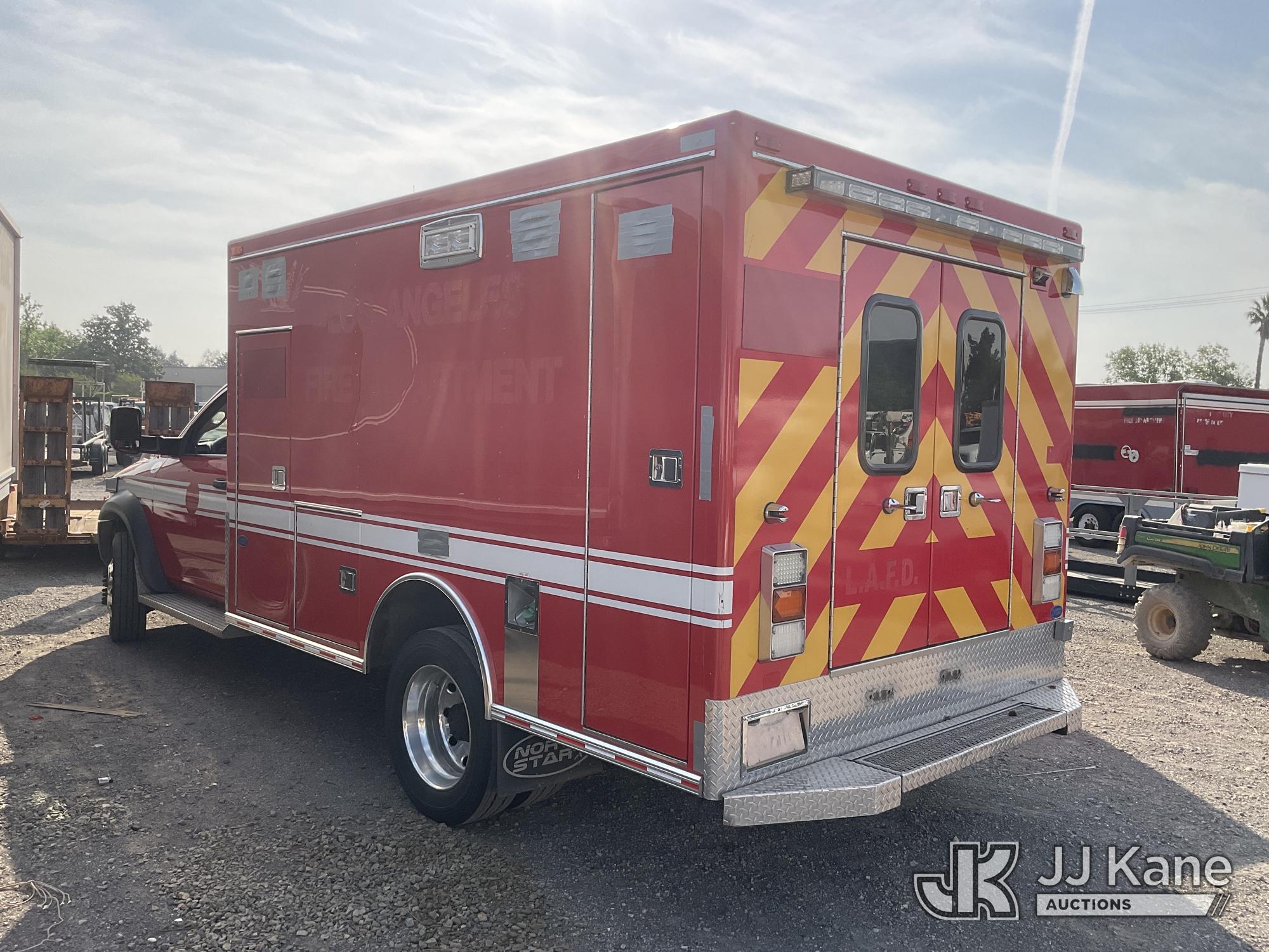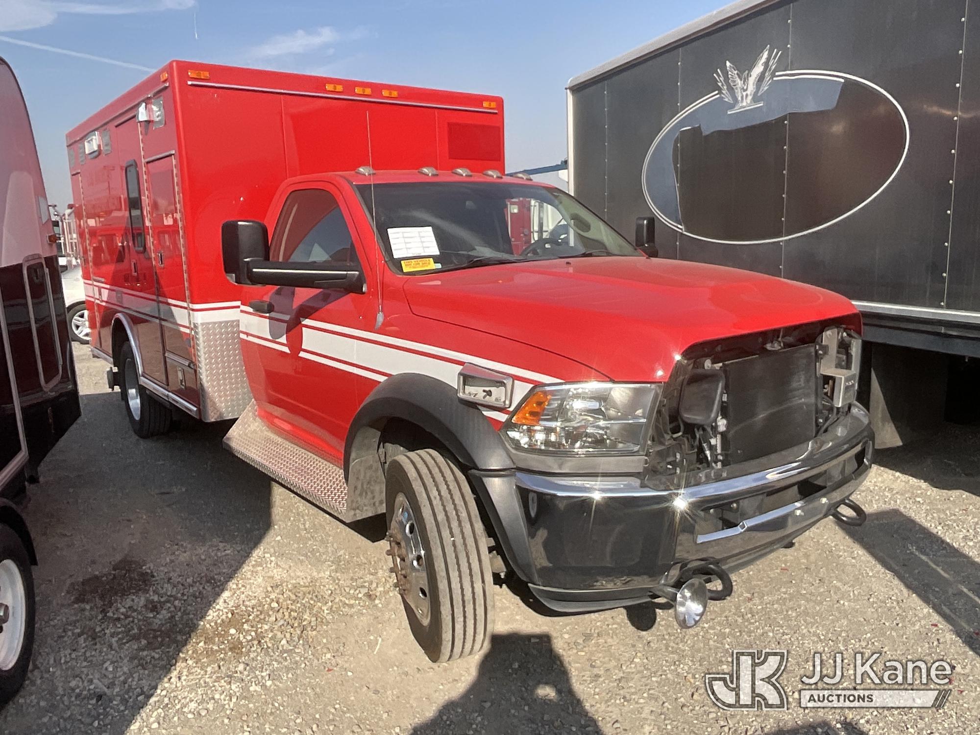 2014 RAM 4500 Regular Cab 2WD DRW Ambulance, s/n 3C7WRKBL5EG138013, 6.7L L6 OHV 24V RWD, DIESEL, Auto, (106,629 miles) (Runs, Check Engine Light On, Stripped of Parts, Missing Interior, Must be Towed) (Bidding Restricted to Licensed Vehicle Dealers Only), May be subject to ARB Regulations This is a Titled Item*