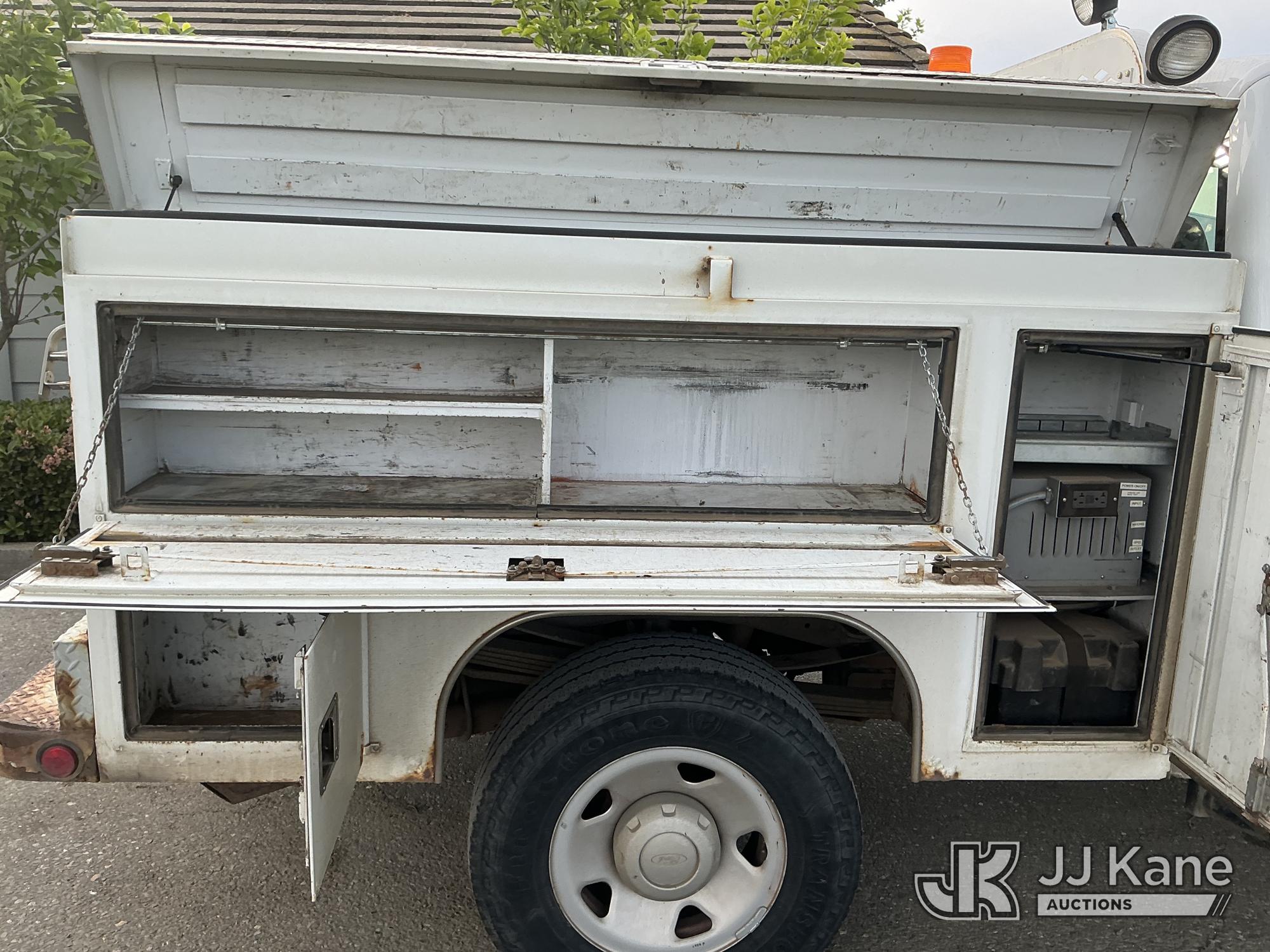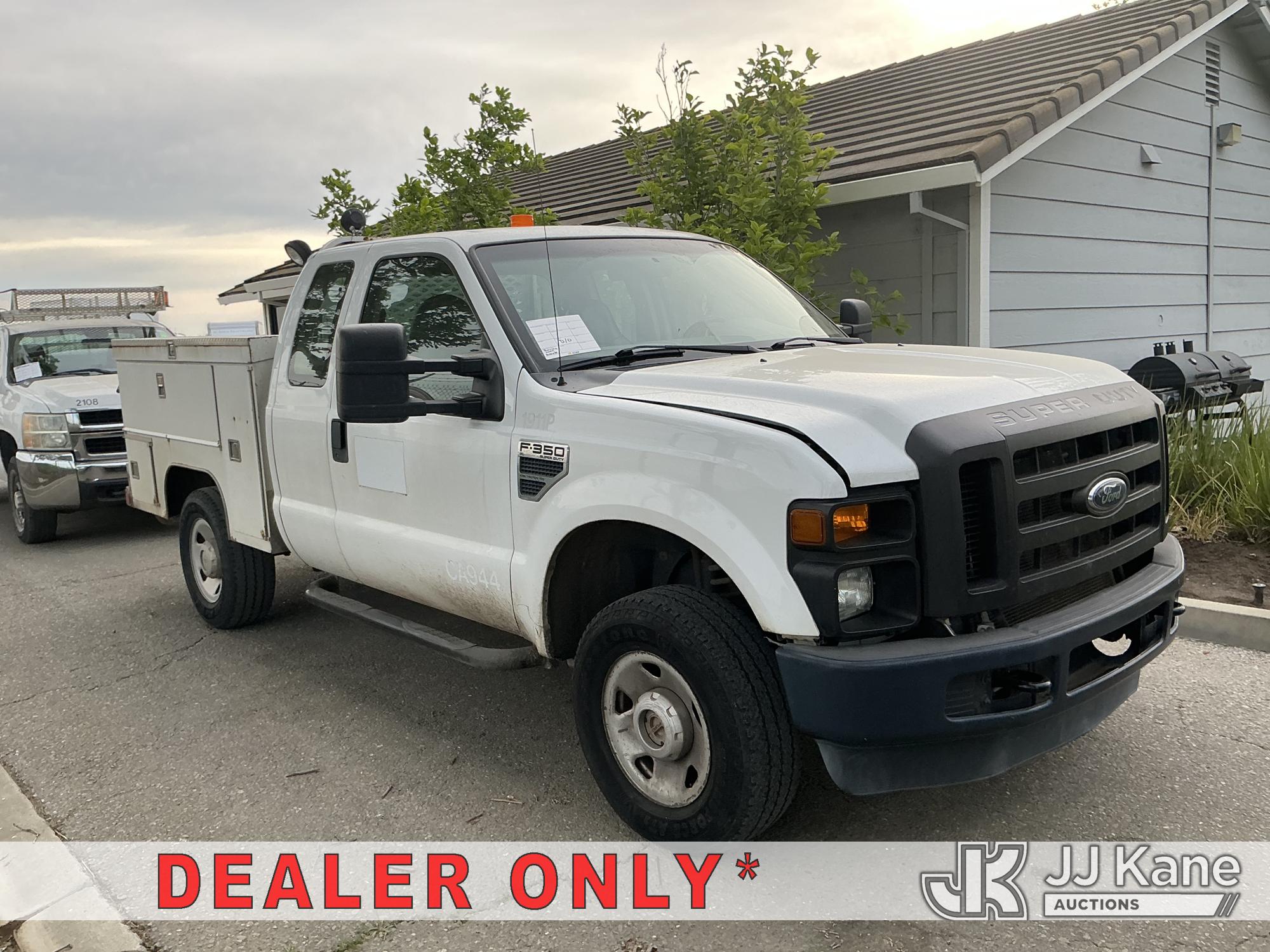 2009 Ford F-350 SD Extended-Cab Service Truck, 6.8L V10 SOHC 30V 4WD, GAS, Auto, A/C, (188,298 miles) (Runs & Moves)(Engine Knocking, Burning Smell, Bad Brakes) (Bidding Restricted to Licensed Vehicle Dealers Only), This is a Titled Item*