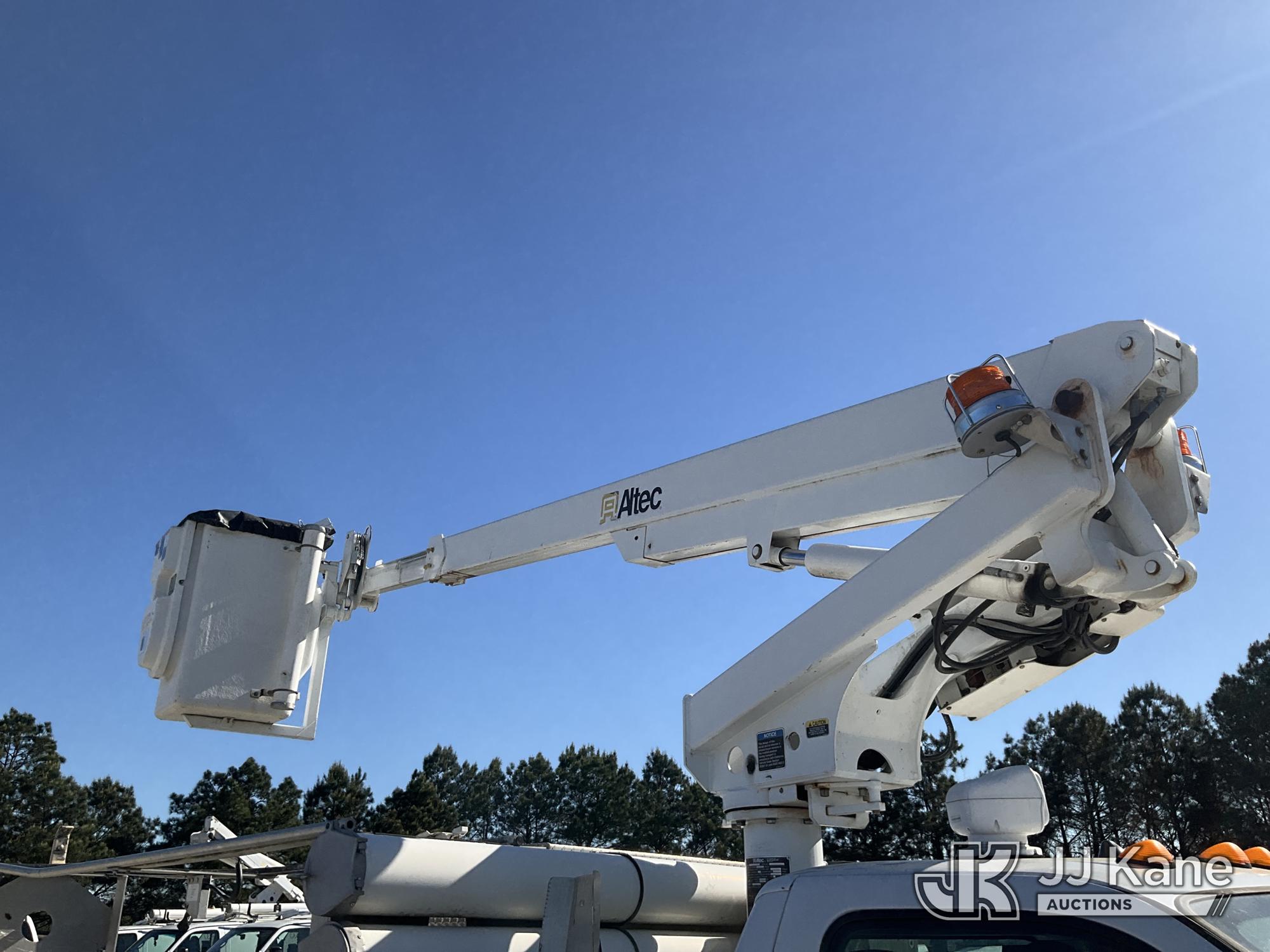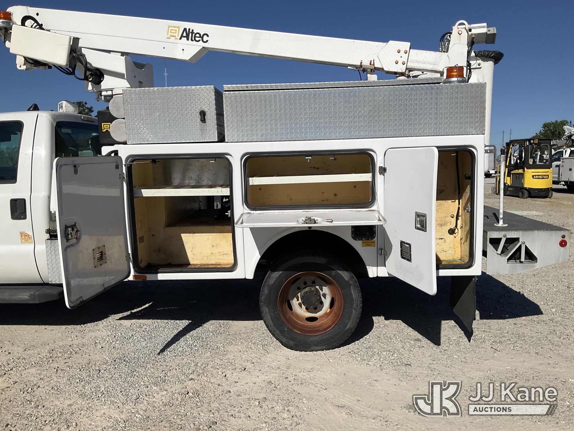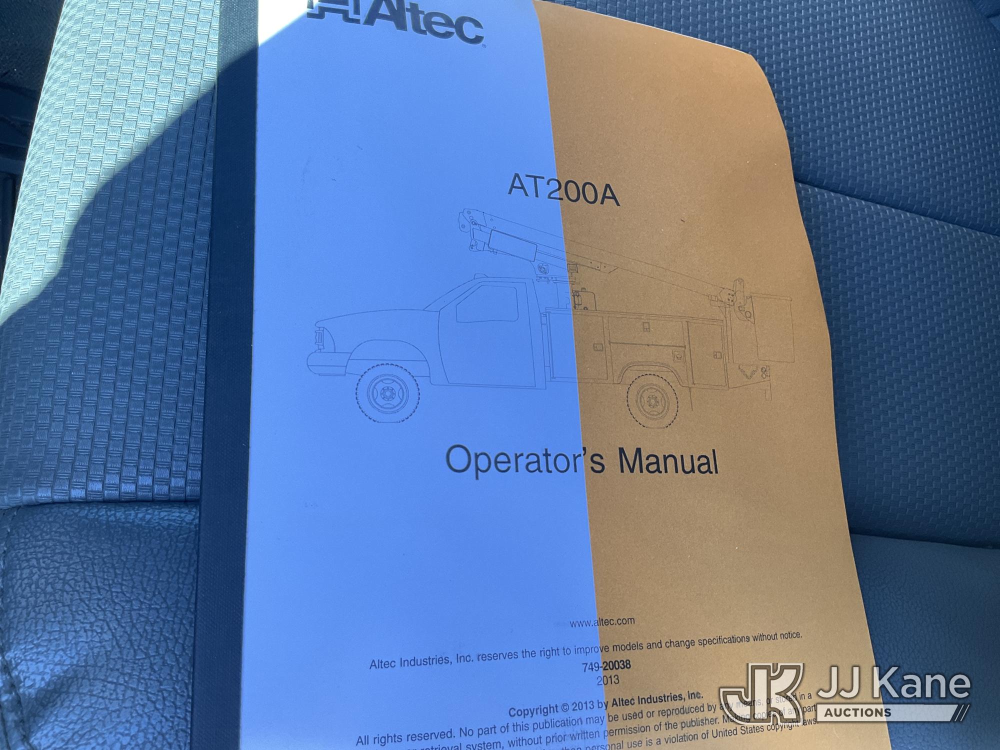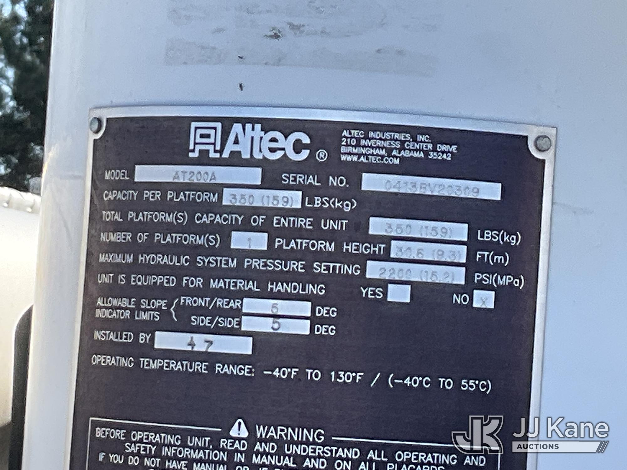 Altec AT200A, 35 ft, Telescopic Non-Insulated Bucket Truck s/n 0413BV20309, with single-man bucket, mounted behind cab on 2013 Ford F450 Service Truck, 10-cyl gas, Auto, A/C, with Onan Generator, (65,898 miles) (Runs, Moves & Upper Operates) (Check Engine Light On) This is a Titled Item*