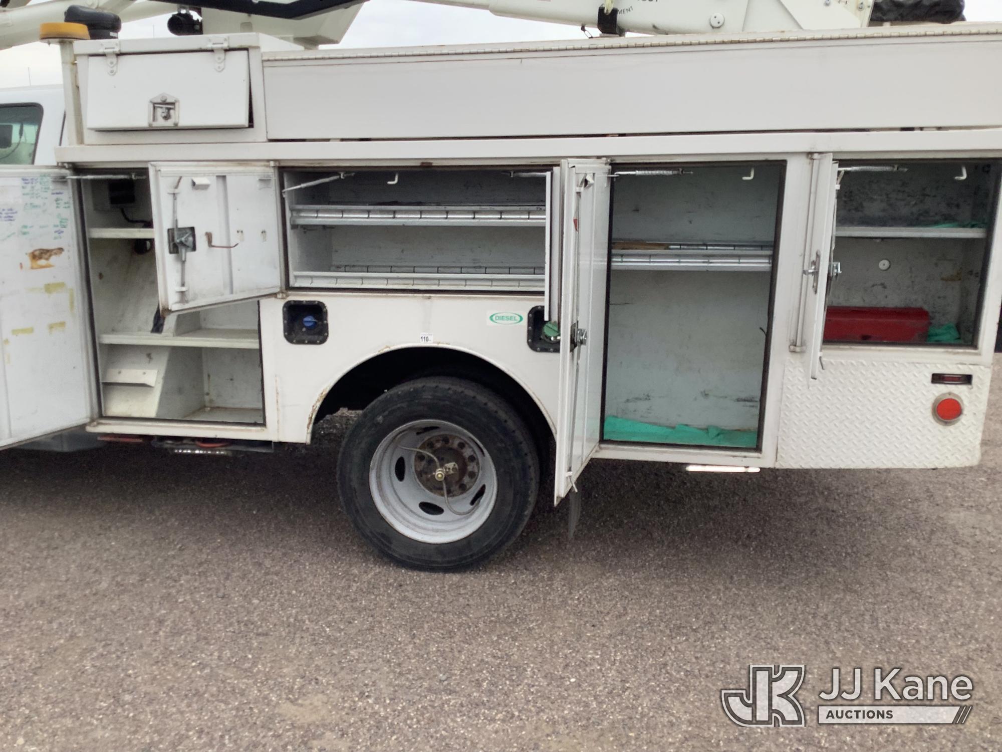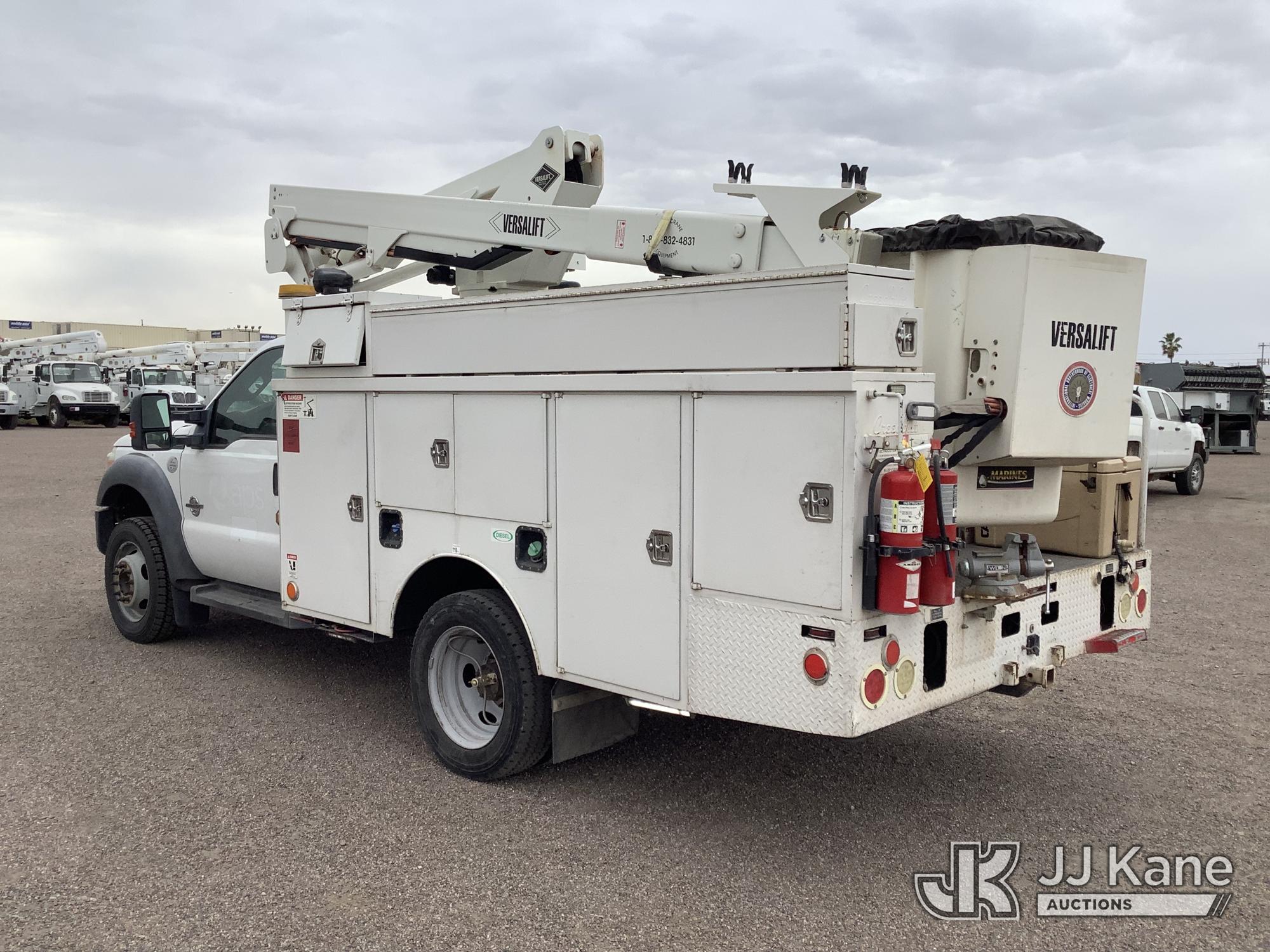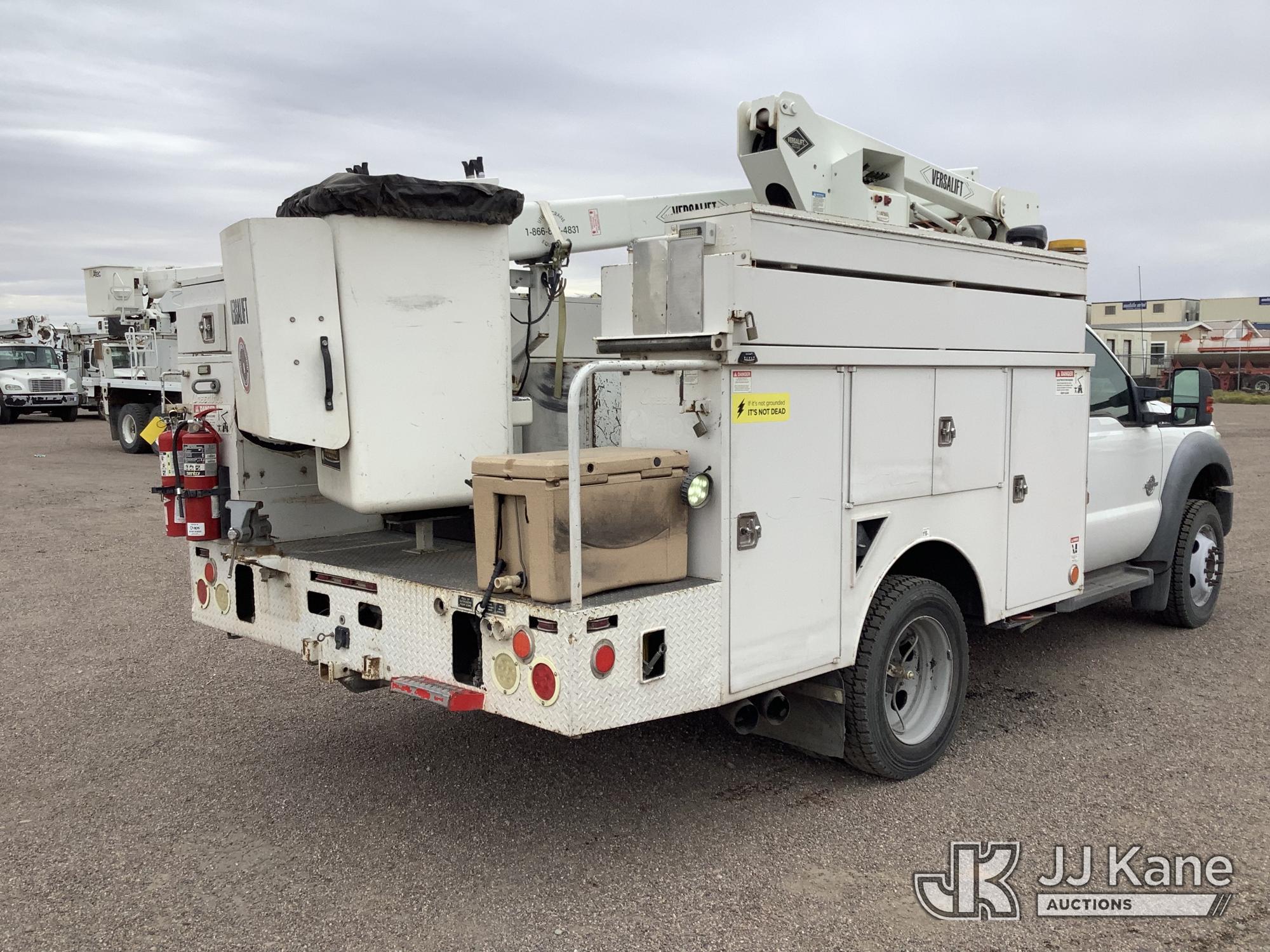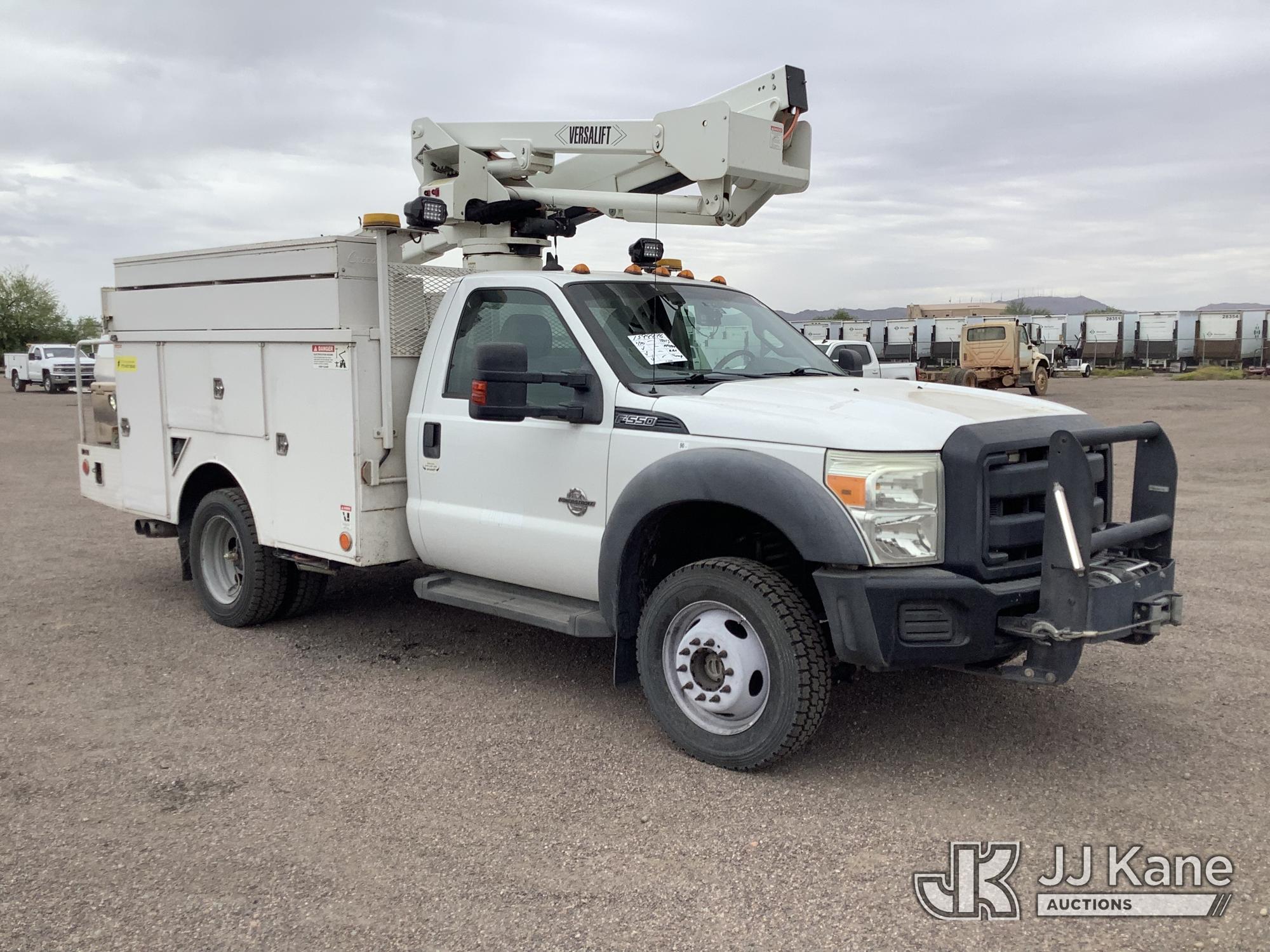 Versalift SST37EIH-01, 42 ft, Articulating & Telescopic Bucket Truck s/n DR130021, with single-man bucket, mounted behind cab on 2013 Ford F-550 Service Truck, 6.7L Diesel 4WD, Auto, A/C, with Front Bumper Winch, (174,691 miles) (Runs, Moves & Upper Condition Unknown) (Jump To Start, Passenger Side Outrigger in Bed of Truck) This is a Titled Item*