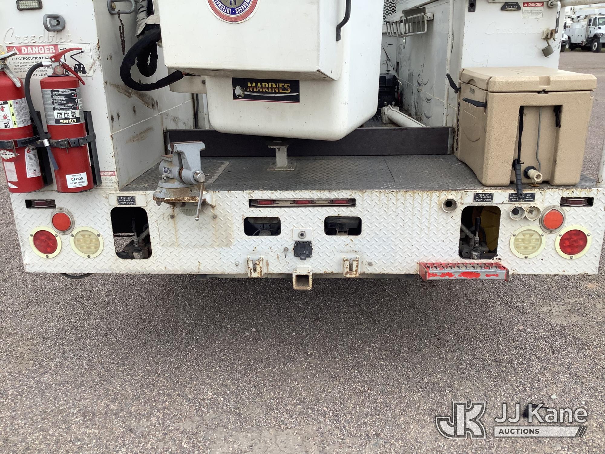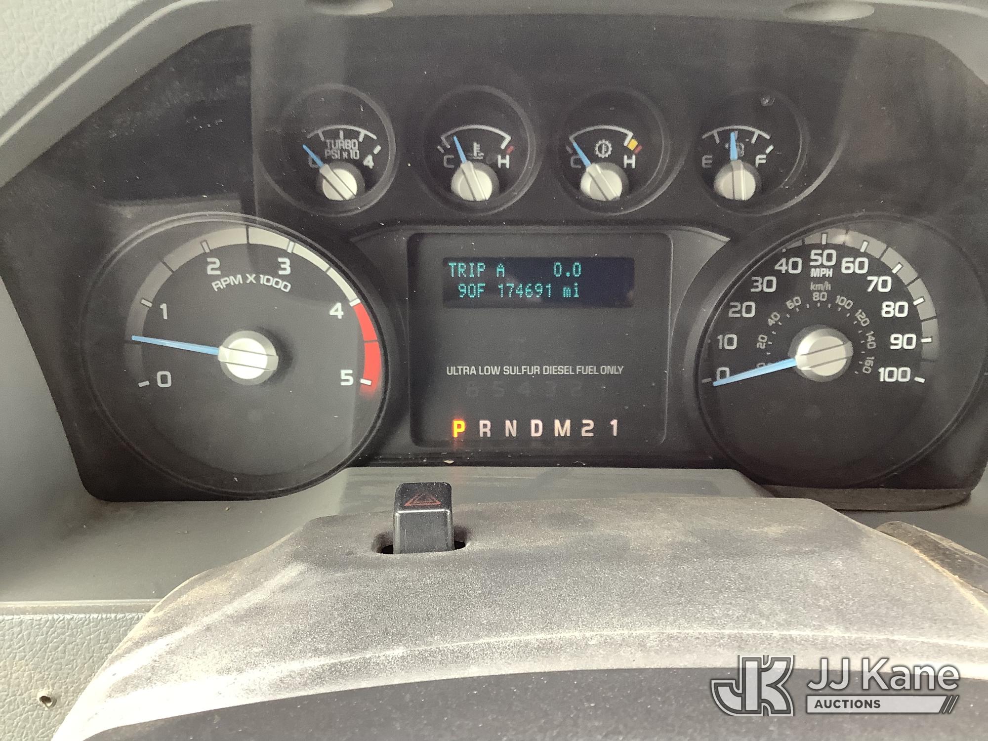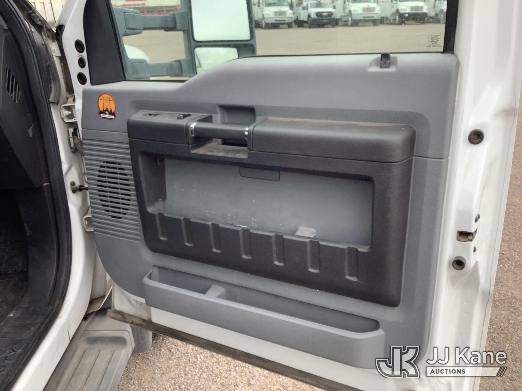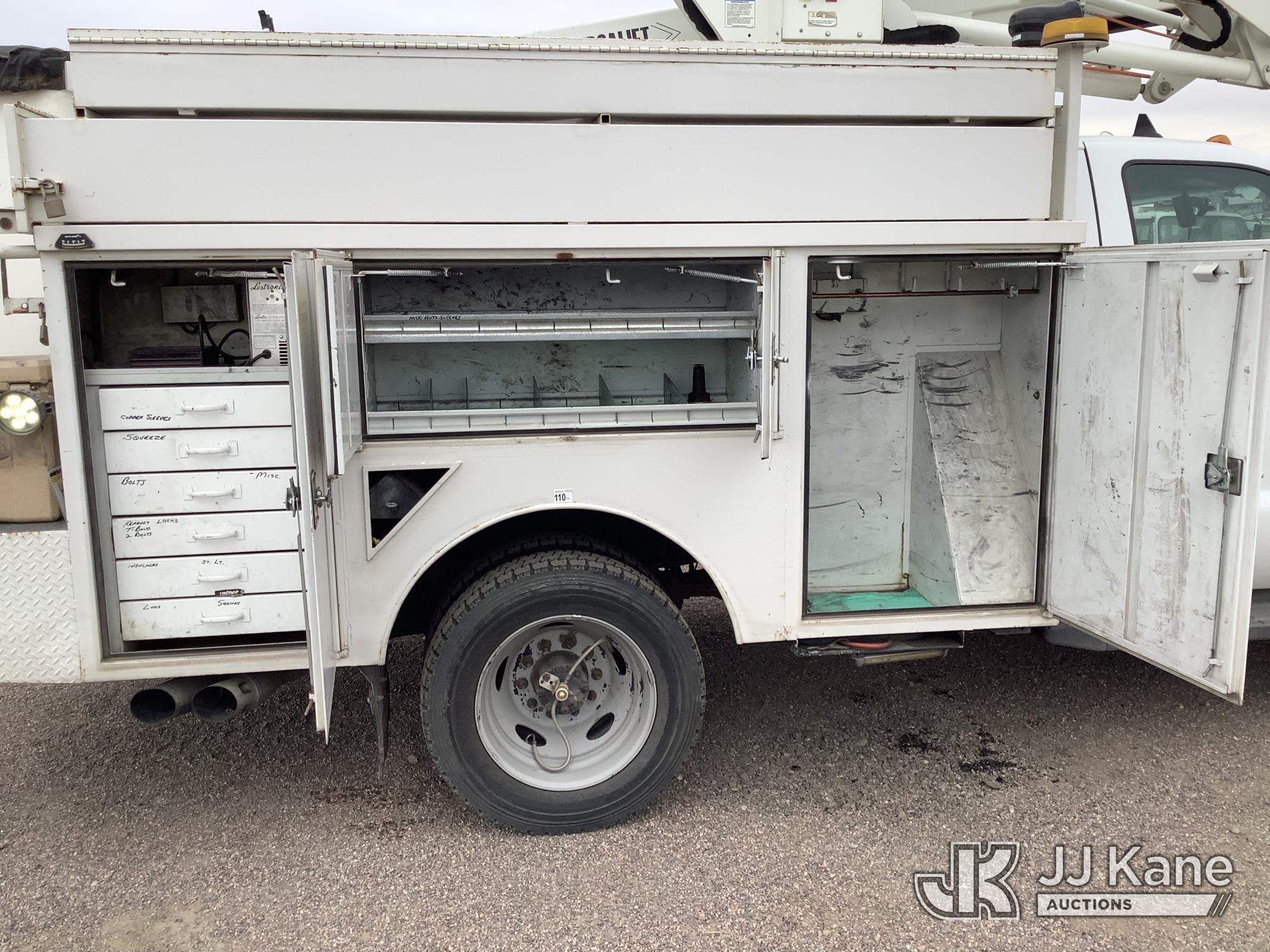 Versalift SST37EIH-01, 42 ft, Articulating & Telescopic Bucket Truck s/n DR130021, with single-man bucket, mounted behind cab on 2013 Ford F-550 Service Truck, 6.7L Diesel 4WD, Auto, A/C, with Front Bumper Winch, (174,691 miles) (Runs, Moves & Upper Condition Unknown) (Jump To Start, Passenger Side Outrigger in Bed of Truck) This is a Titled Item*