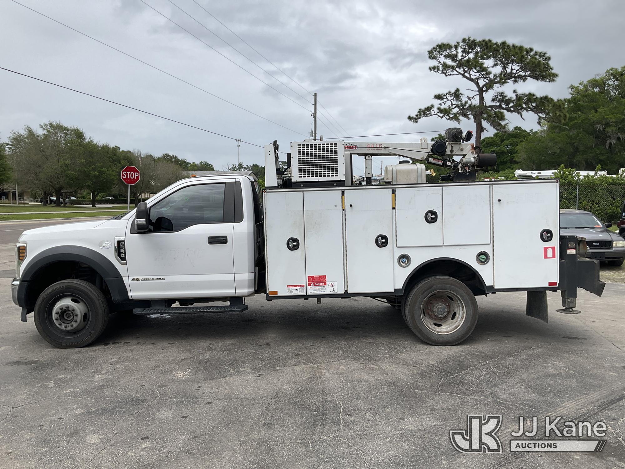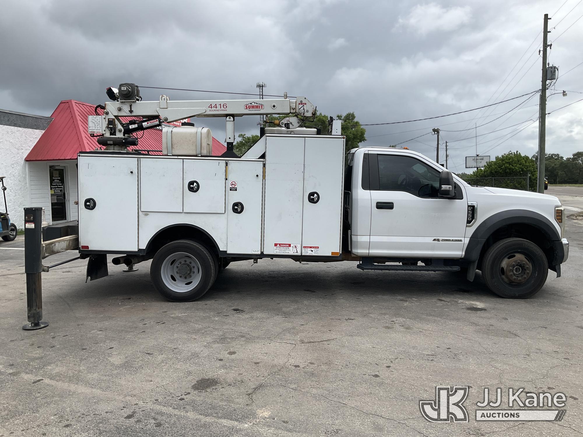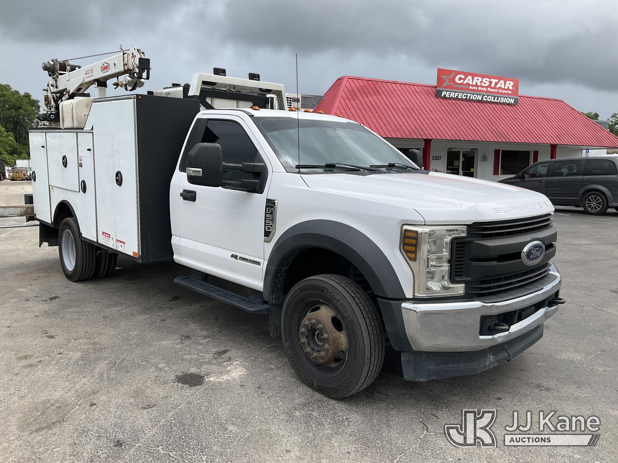 2019 Ford F550 4x4 Mechanics Service Truck, Cummins 6.7L diesel, Auto, A/C, with Summit 4416 material crane, VMAC air compressor, lube oil tanks w/ hose reels, (117,313 miles) (Runs & Moves) ( Outriggers Operate, Missing Remote Control For Crane To Operate, Condition Unknown) This is a Titled Item*