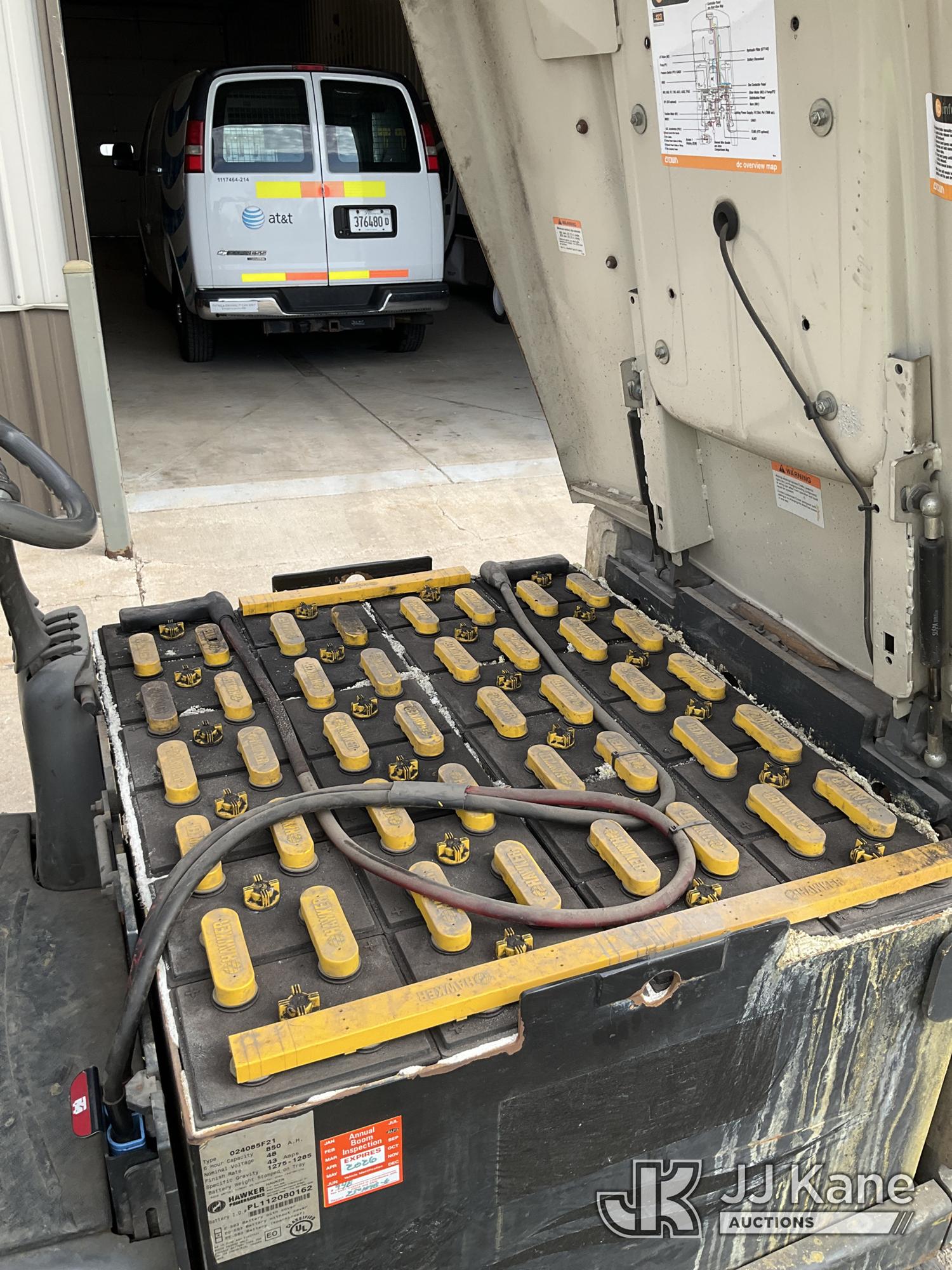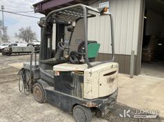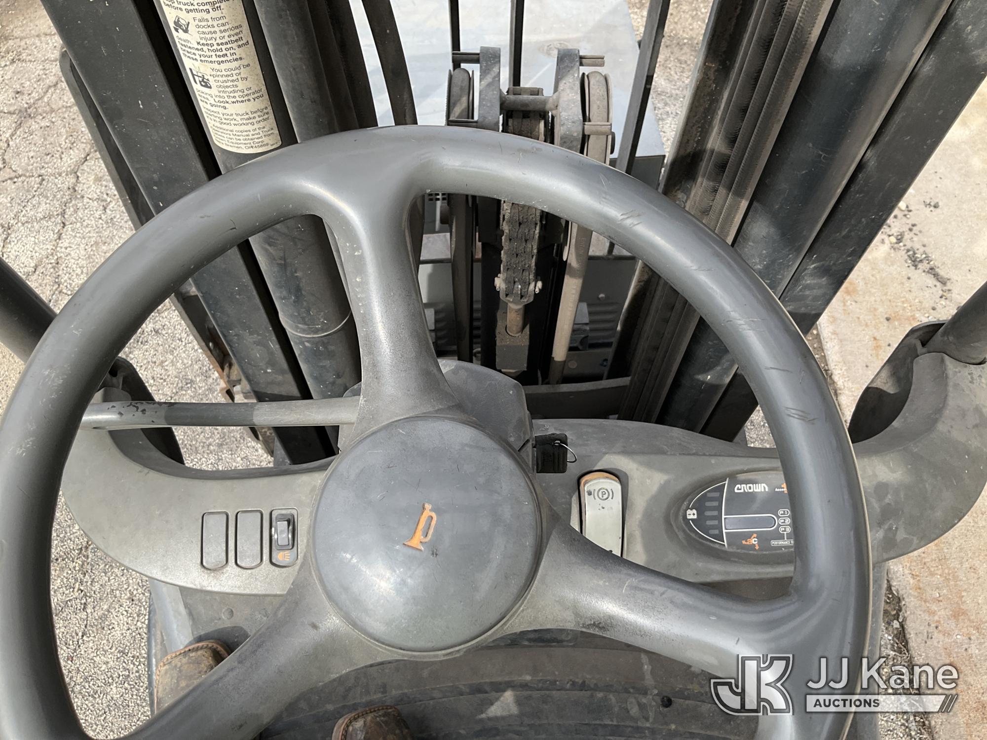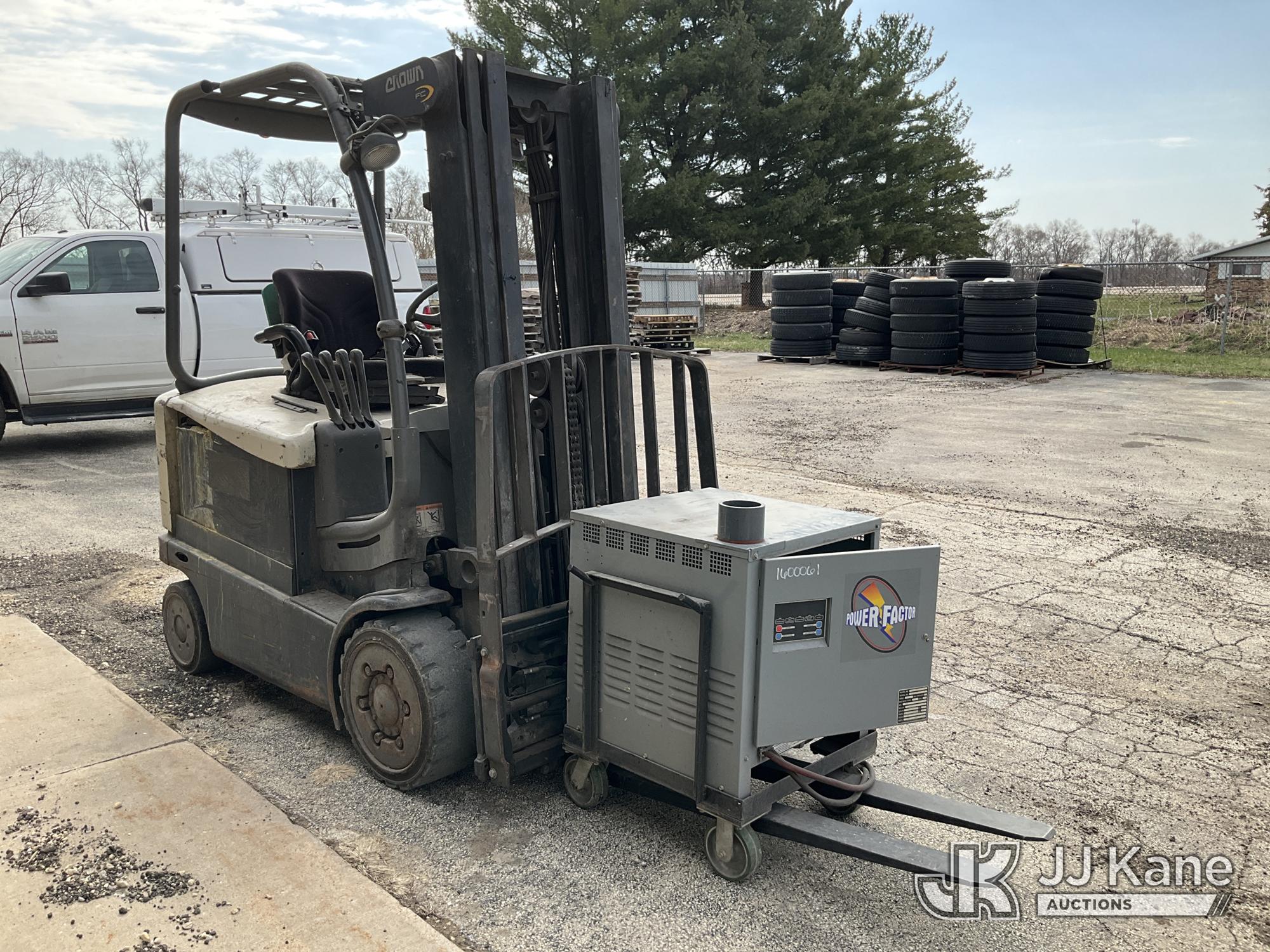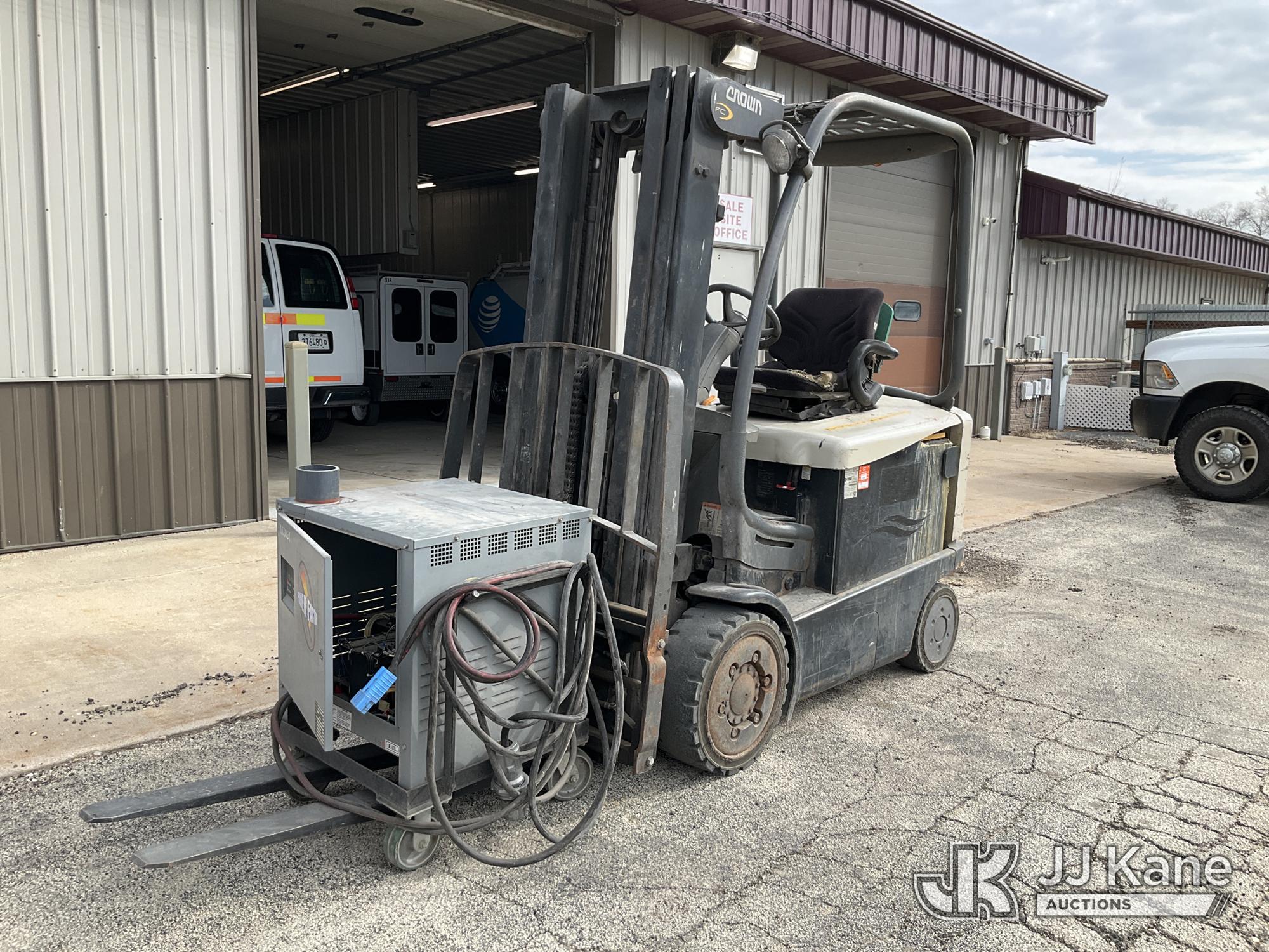 Crown FC 4500 Series Solid Tired Forklift, s/n 9A161731, Battery Shuttle, with 4,550lbs. capacity, 188in. mast height, hyd open/close, hyd side shift, 48in. forks & ROPS, (Runs, Moves, Operates)(Battery Charger Included) (Reads 1,006 hours)*