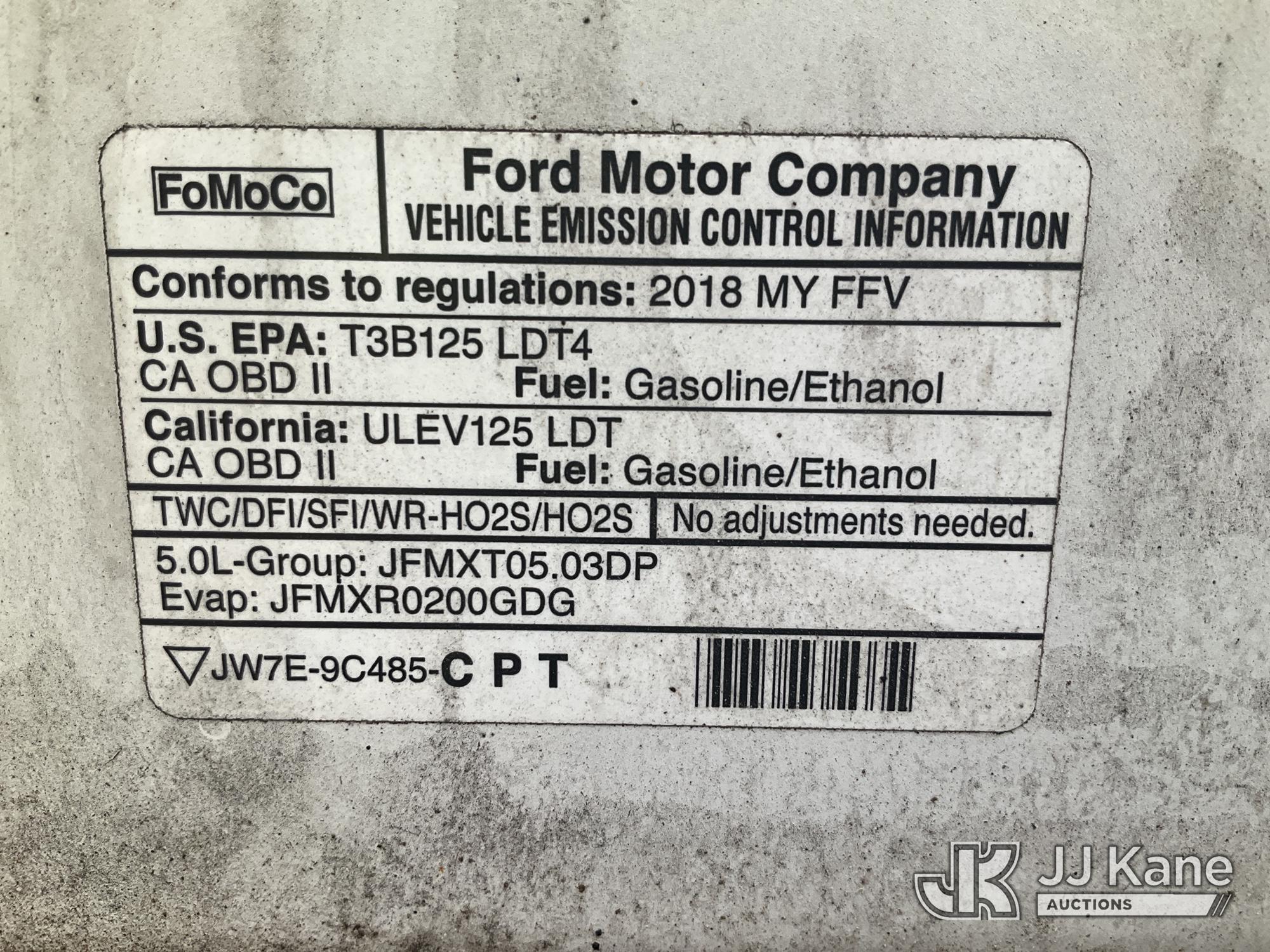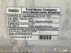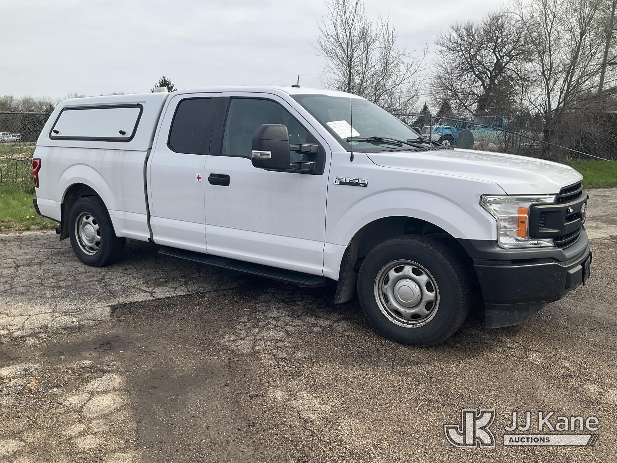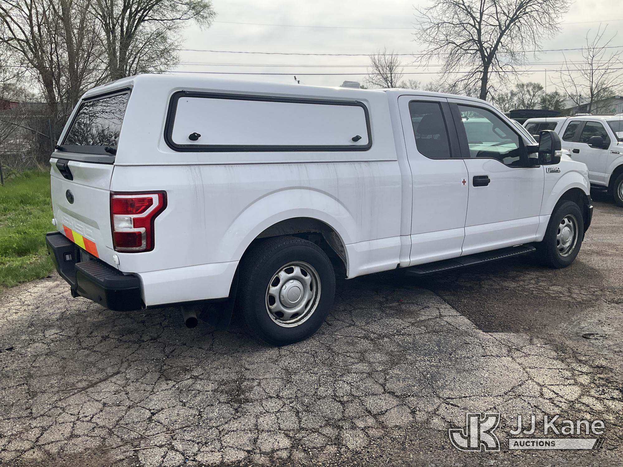 2018 Ford F150 Extended-Cab Pickup Truck, 5.0L V8 OHV 16V gas, RWD, 6-Speed Automatic, A/C, with bed cap, (196,848 miles) (Runs & Moves) (Engine Performance Concerns, Exterior Burning Smell, Dash Warning Indicators On) (Reads 10,024 hours) This is a Titled Item*