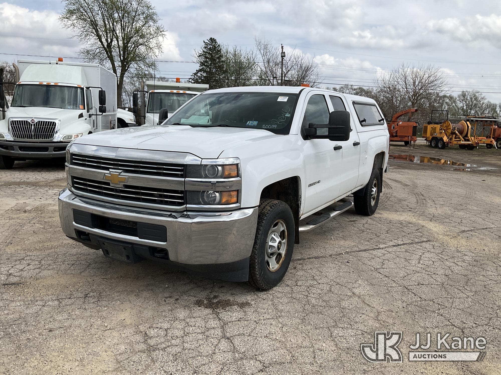 2015 Chevrolet Silverado 2500HD Crew-Cab Pickup Truck, 6.7L Diesel 4WD, 6-Speed Automatic, A/C, with camper shell, (180,213 miles) (Runs & Moves) (Dash Warning Indicators On, Corrosion) (Reads 13,549 hours) This is a Titled Item*
