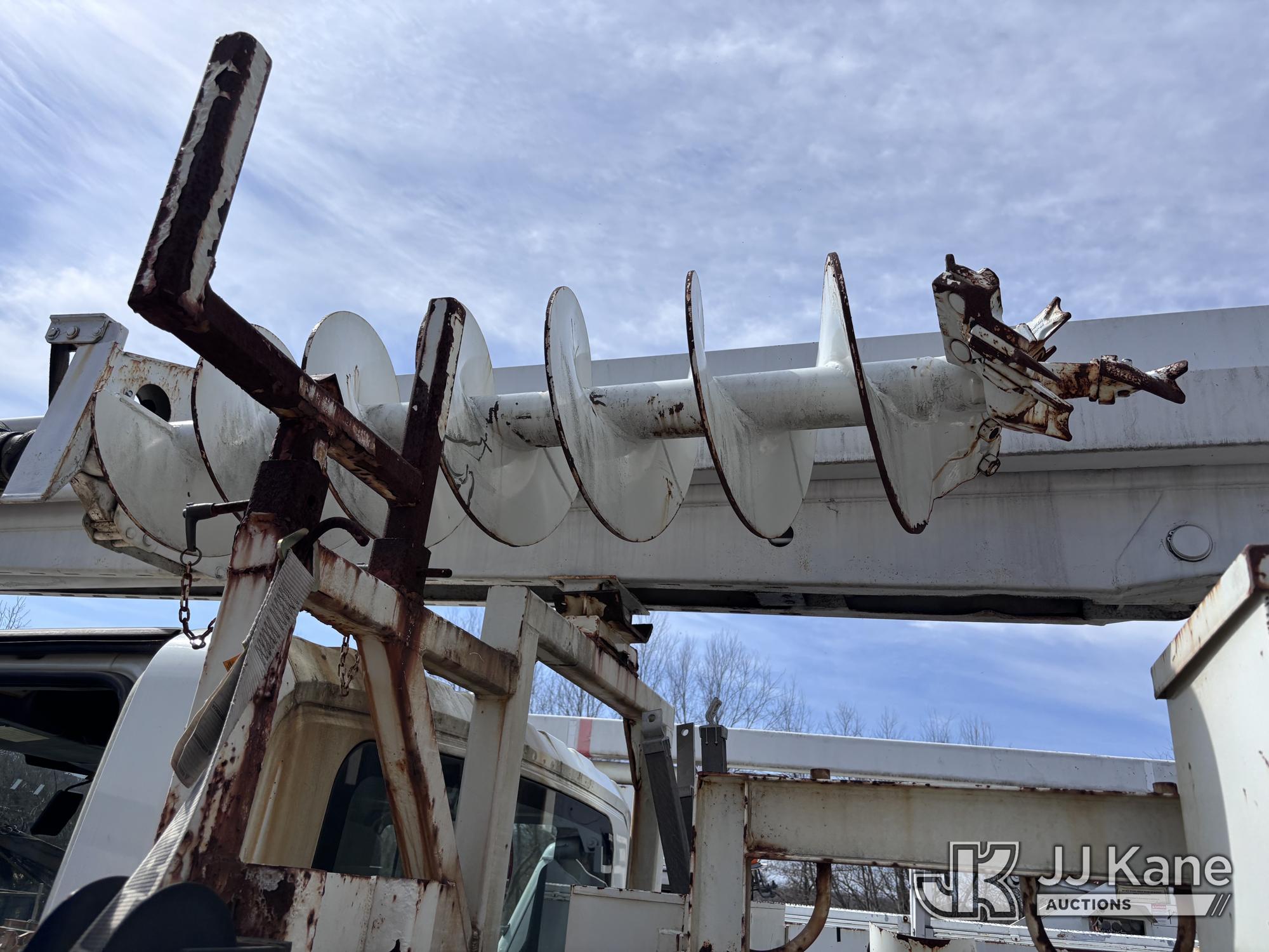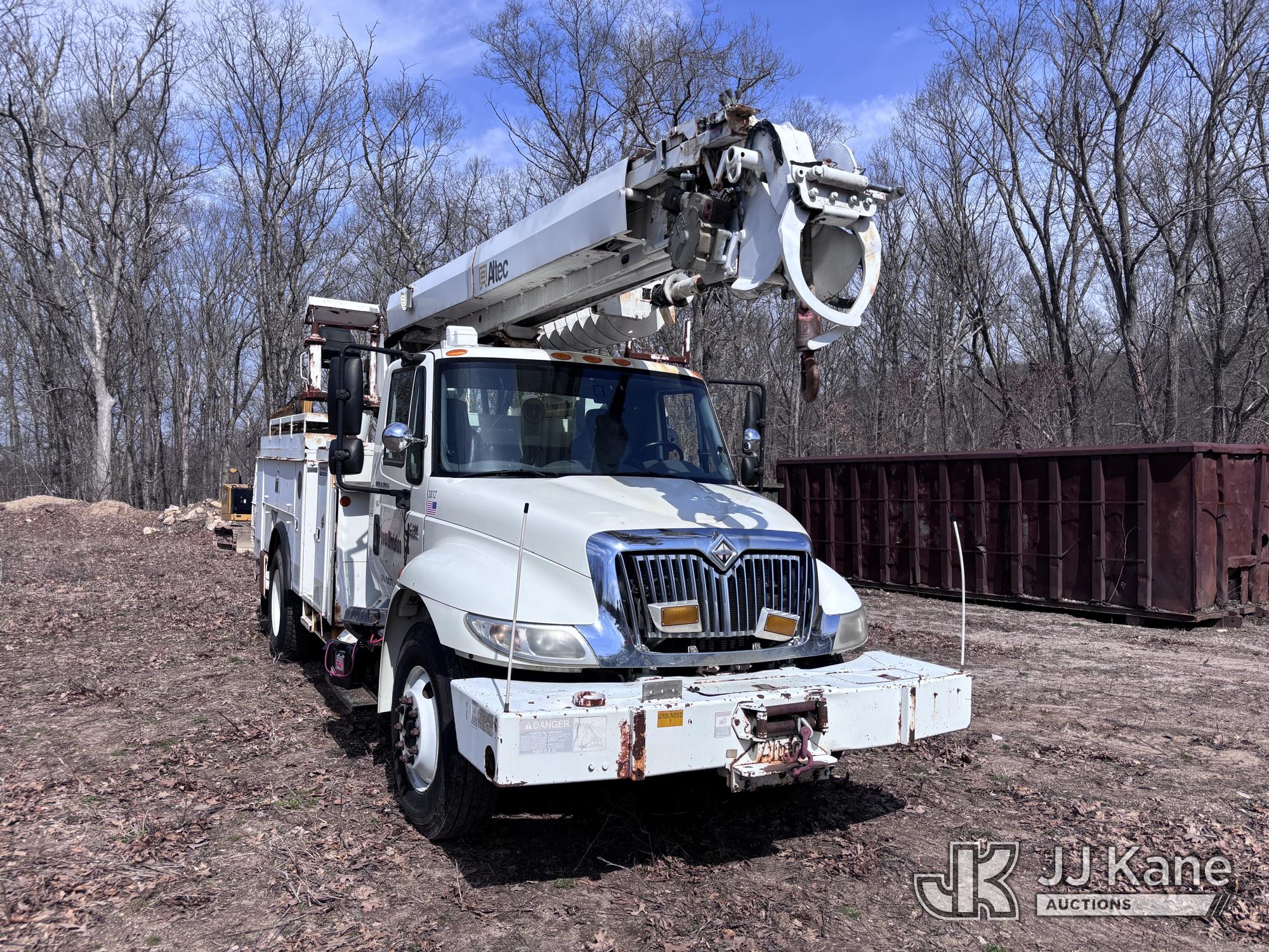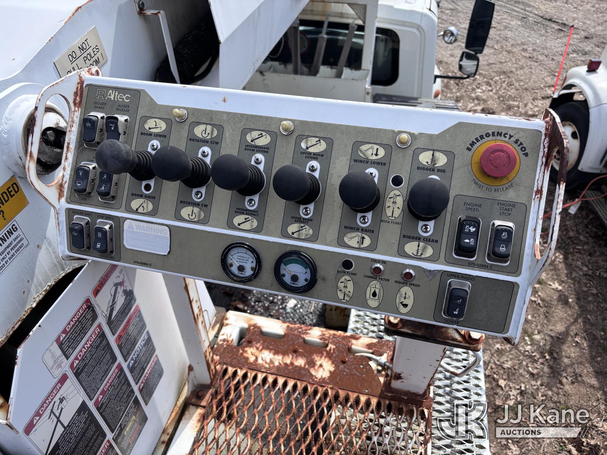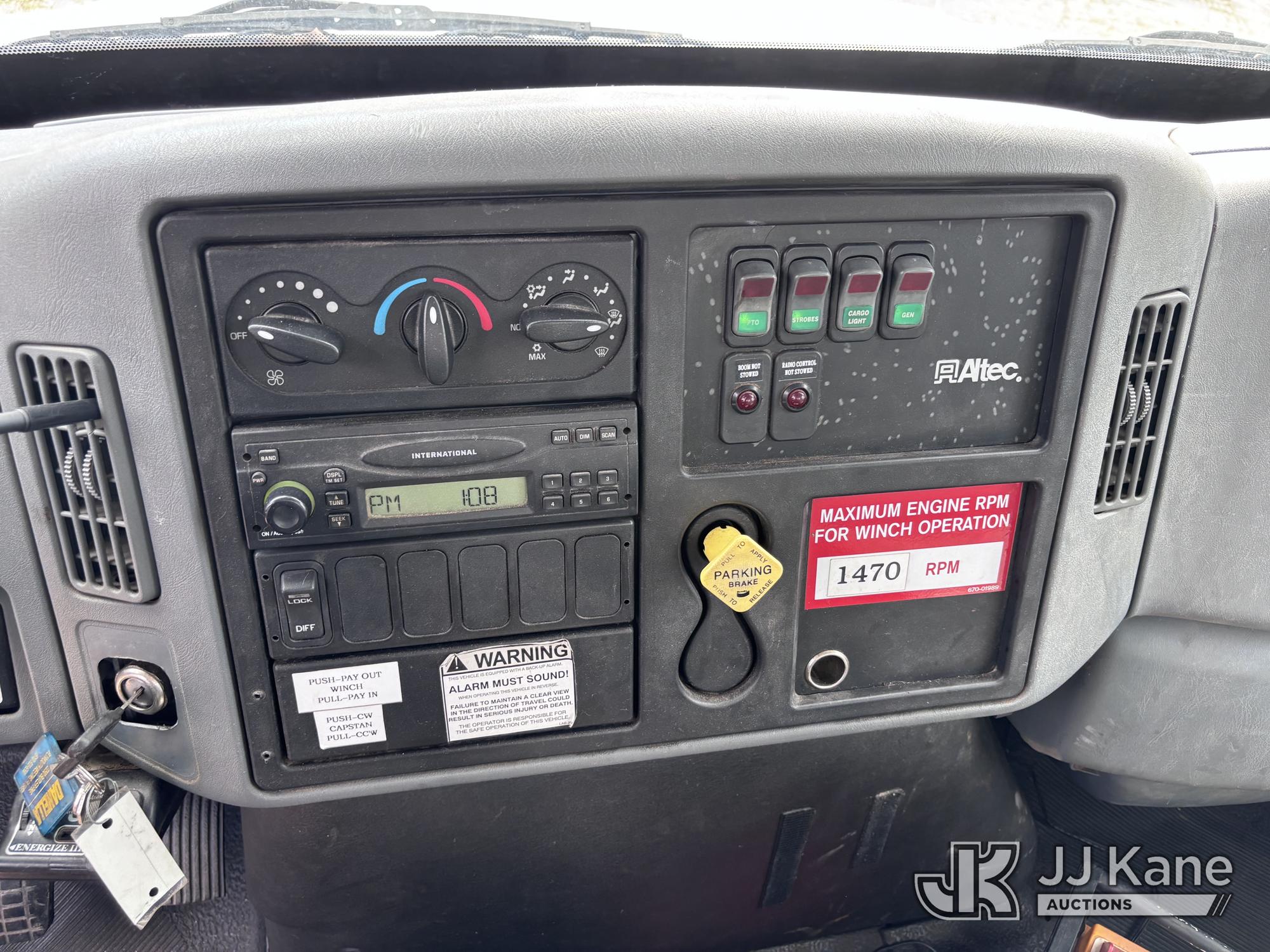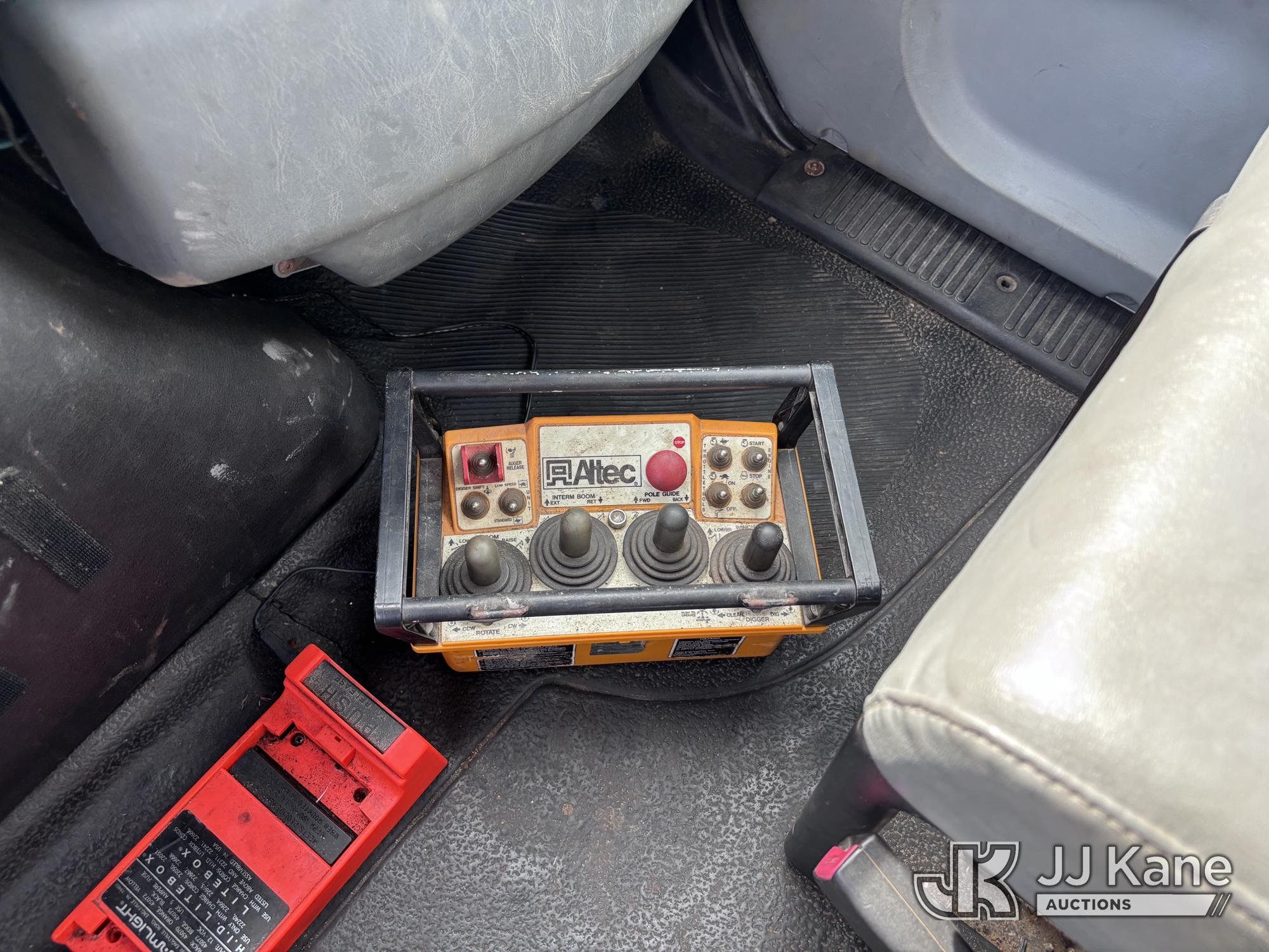 Altec DM47-BR, 17,730 Lb Digger Derrick s/n 1008DV2320, with 47 ft sheave height, 3 section hyd boom, 2 spd digger, upper controls, remote, tip winch, pole grabs, & riding console, rear mounted on 2007 International 4300 Utility Truck, DT466 Diesel, 4X2, 7-spd, A/C, with front winch, (88,979 miles) (Runs, Engine Issues, Coolant Mixing With Oil, Moves & Upper Operates) (Oil Leak At High RPMs, Gray Oil Color) (Sellers Tooling Will Be Removed Prior To Sale) (Reads 8,223 hours) This is a Titled Item*