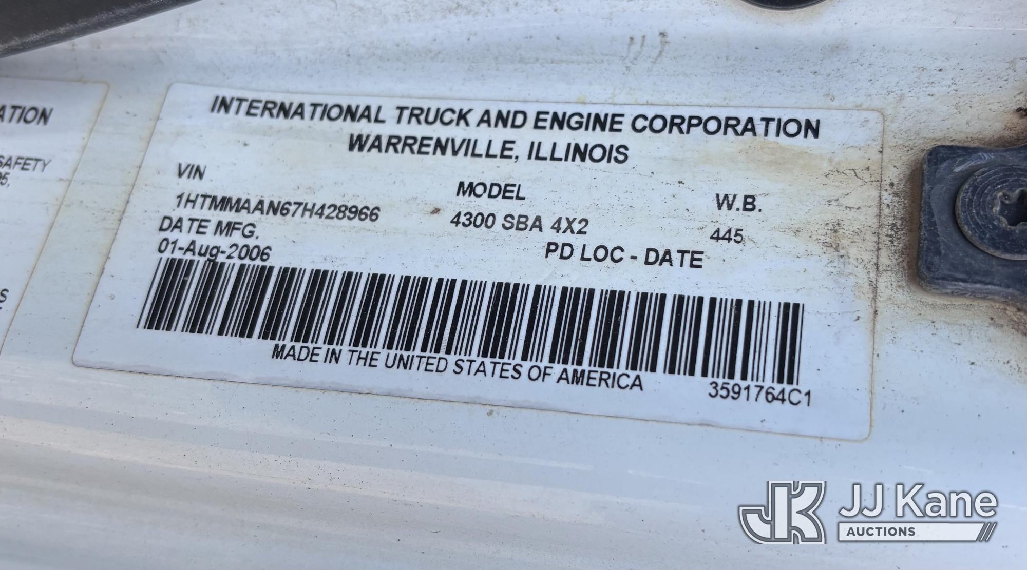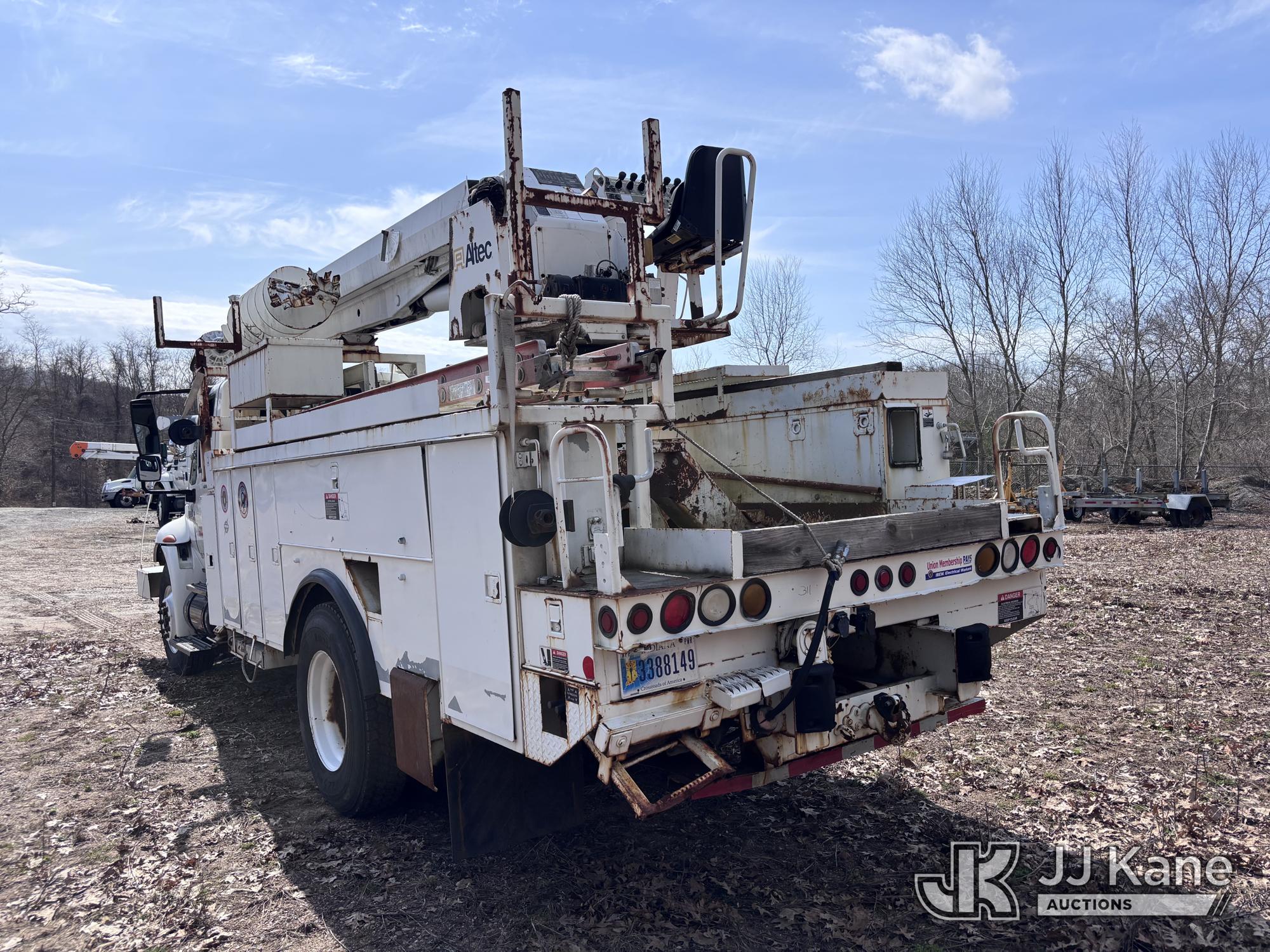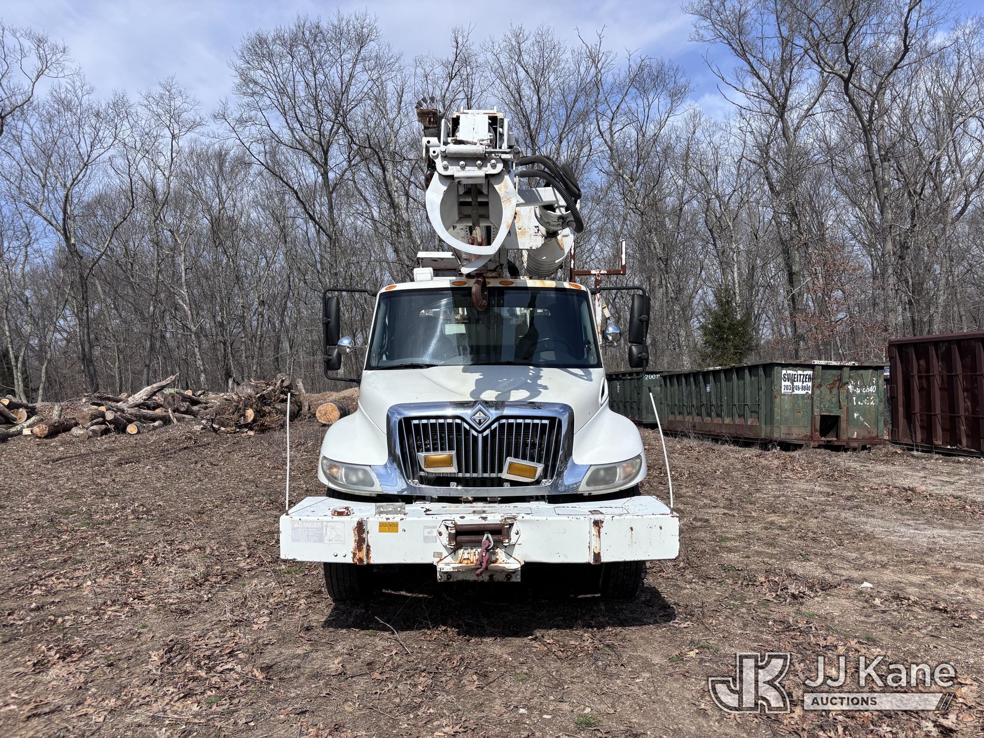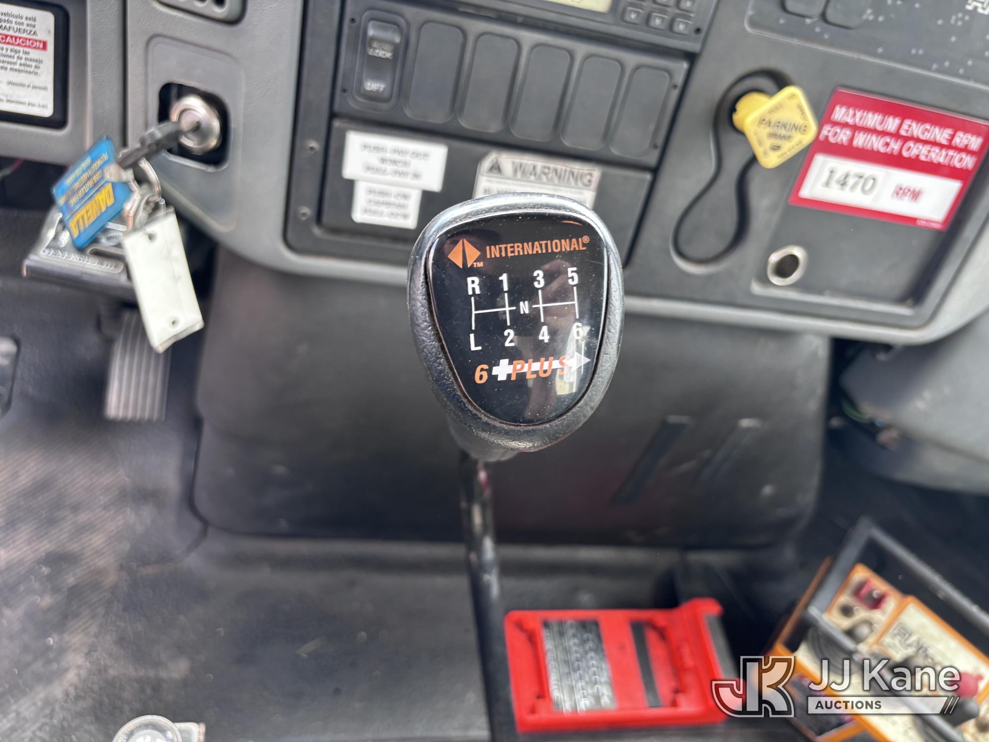 Altec DM47-BR, 17,730 Lb Digger Derrick s/n 1008DV2320, with 47 ft sheave height, 3 section hyd boom, 2 spd digger, upper controls, remote, tip winch, pole grabs, & riding console, rear mounted on 2007 International 4300 Utility Truck, DT466 Diesel, 4X2, 7-spd, A/C, with front winch, (88,979 miles) (Runs, Engine Issues, Coolant Mixing With Oil, Moves & Upper Operates) (Oil Leak At High RPMs, Gray Oil Color) (Sellers Tooling Will Be Removed Prior To Sale) (Reads 8,223 hours) This is a Titled Item*