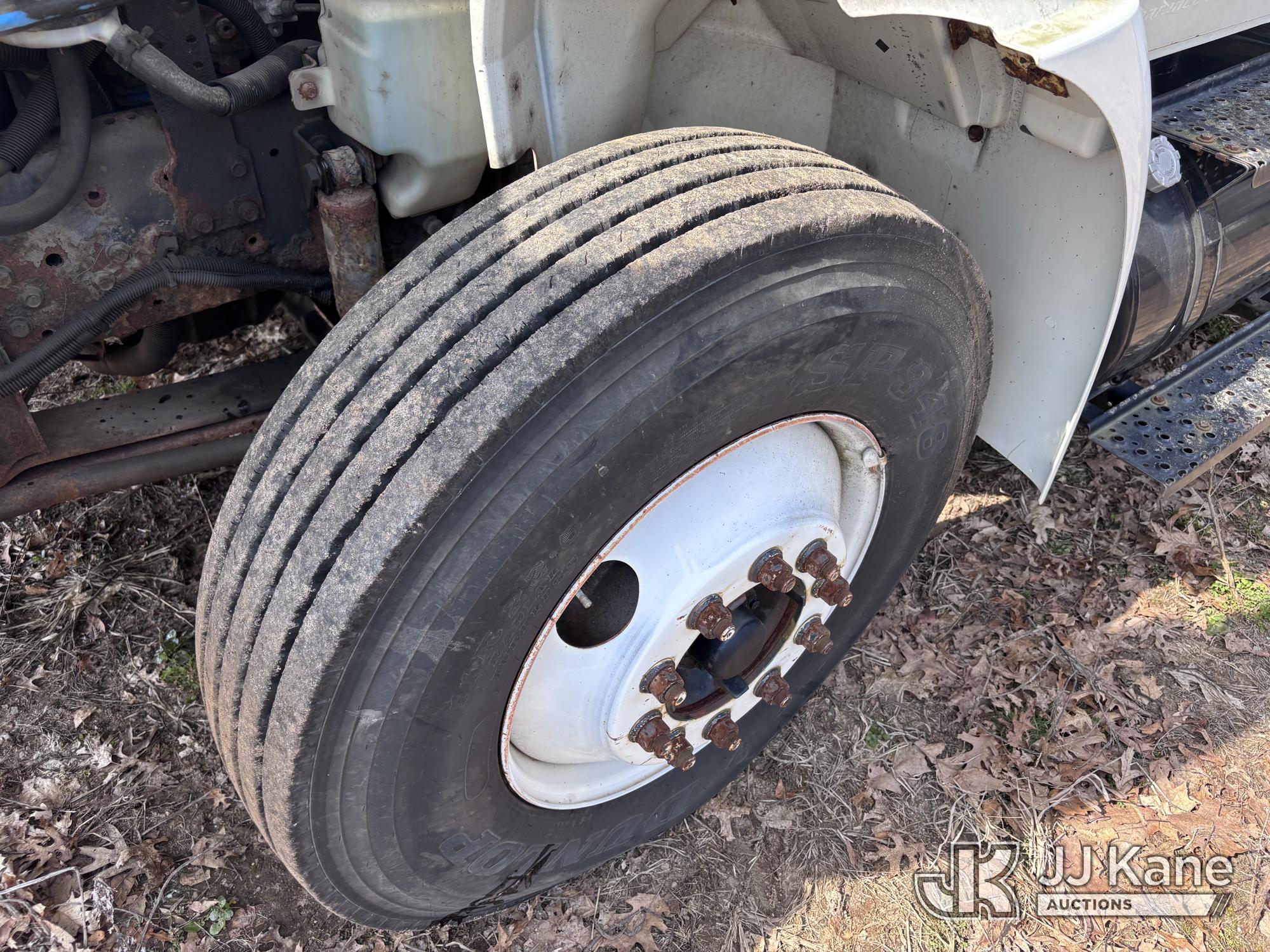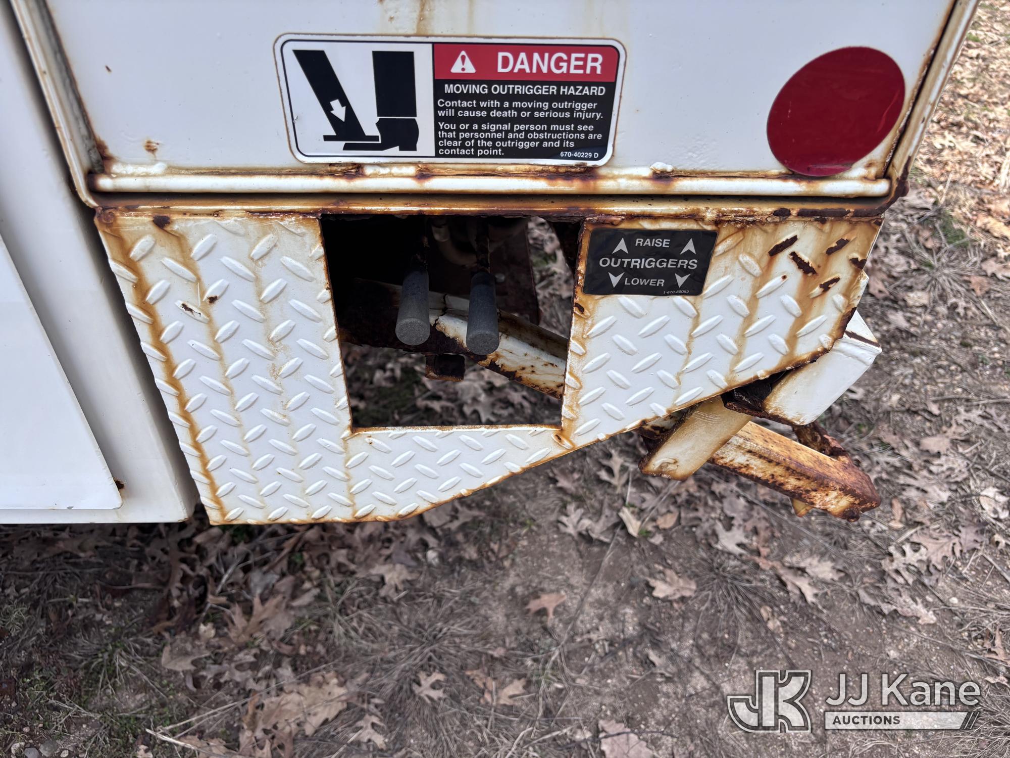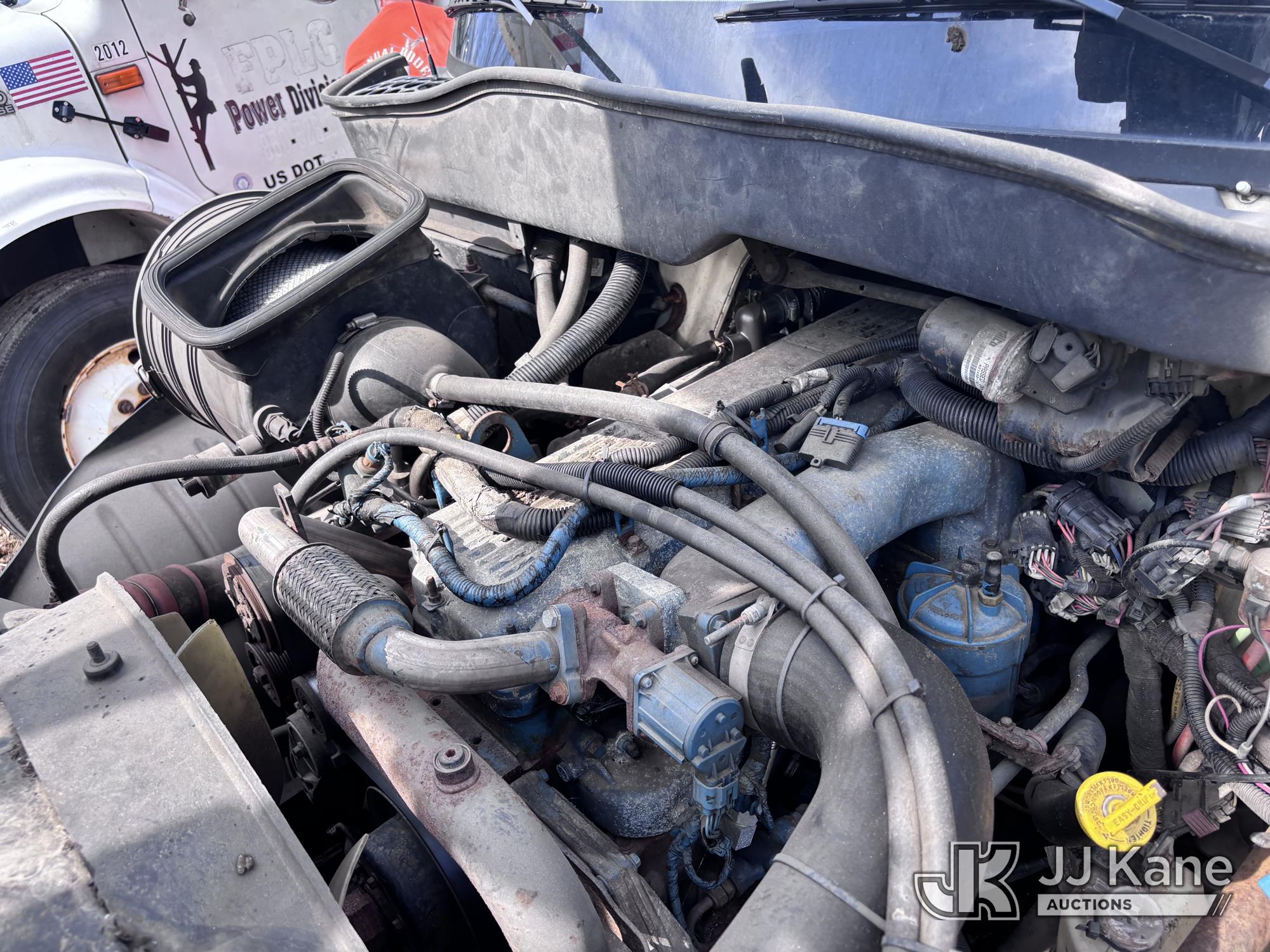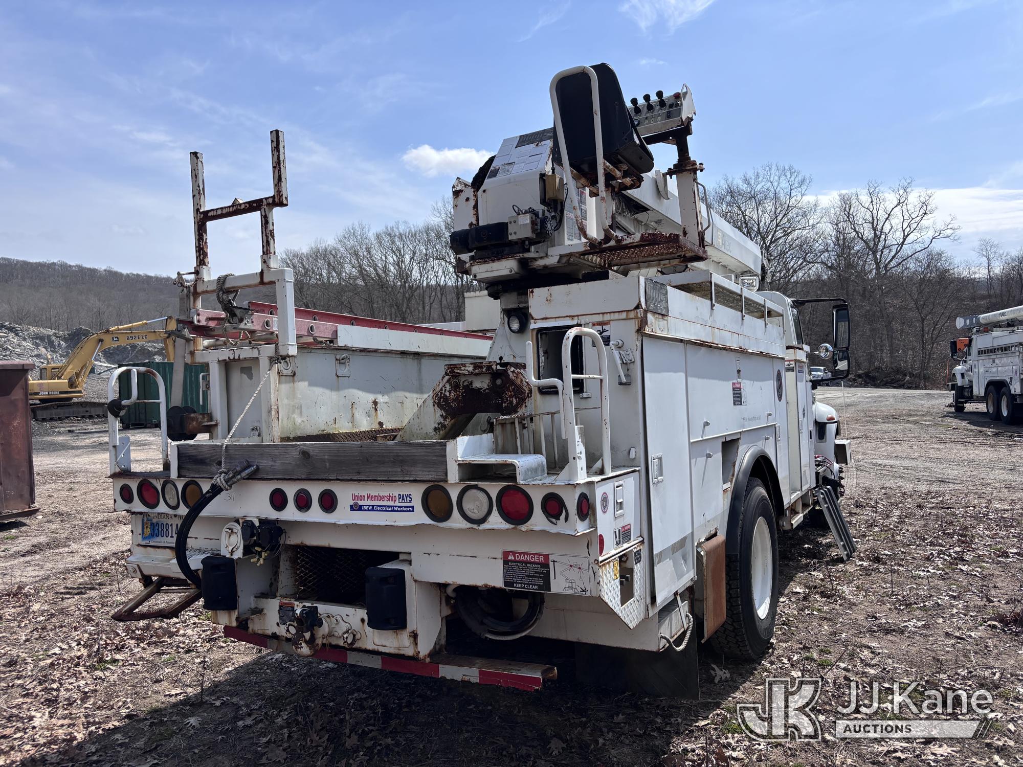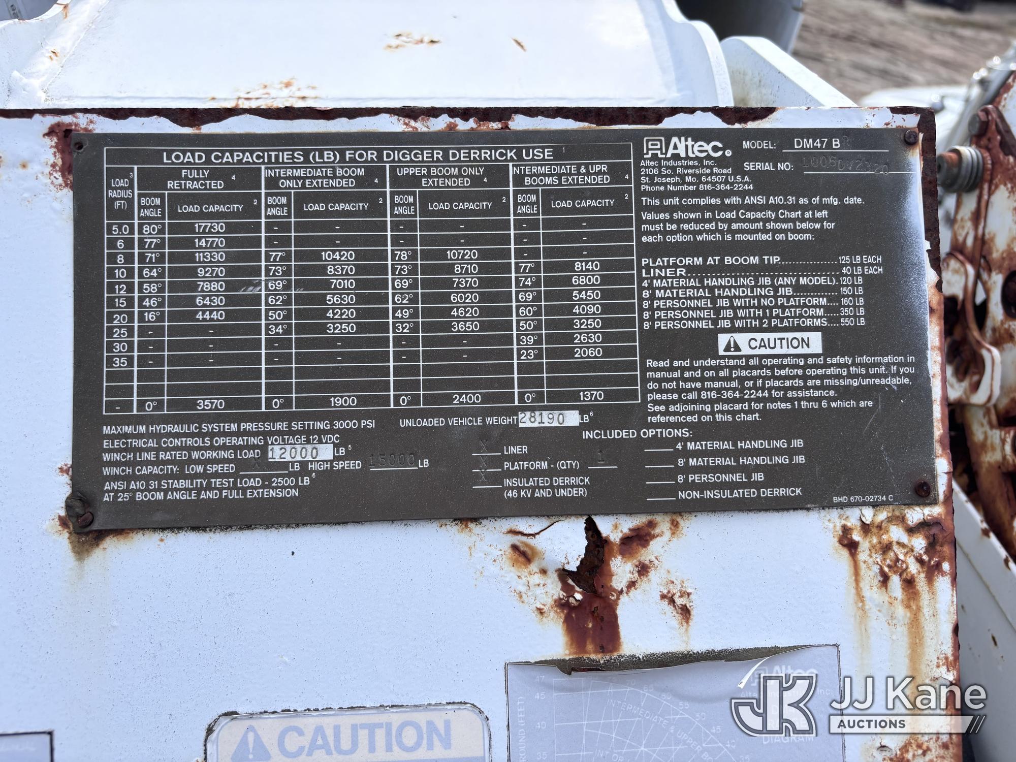 Altec DM47-BR, 17,730 Lb Digger Derrick s/n 1008DV2320, with 47 ft sheave height, 3 section hyd boom, 2 spd digger, upper controls, remote, tip winch, pole grabs, & riding console, rear mounted on 2007 International 4300 Utility Truck, DT466 Diesel, 4X2, 7-spd, A/C, with front winch, (88,979 miles) (Runs, Engine Issues, Coolant Mixing With Oil, Moves & Upper Operates) (Oil Leak At High RPMs, Gray Oil Color) (Sellers Tooling Will Be Removed Prior To Sale) (Reads 8,223 hours) This is a Titled Item*