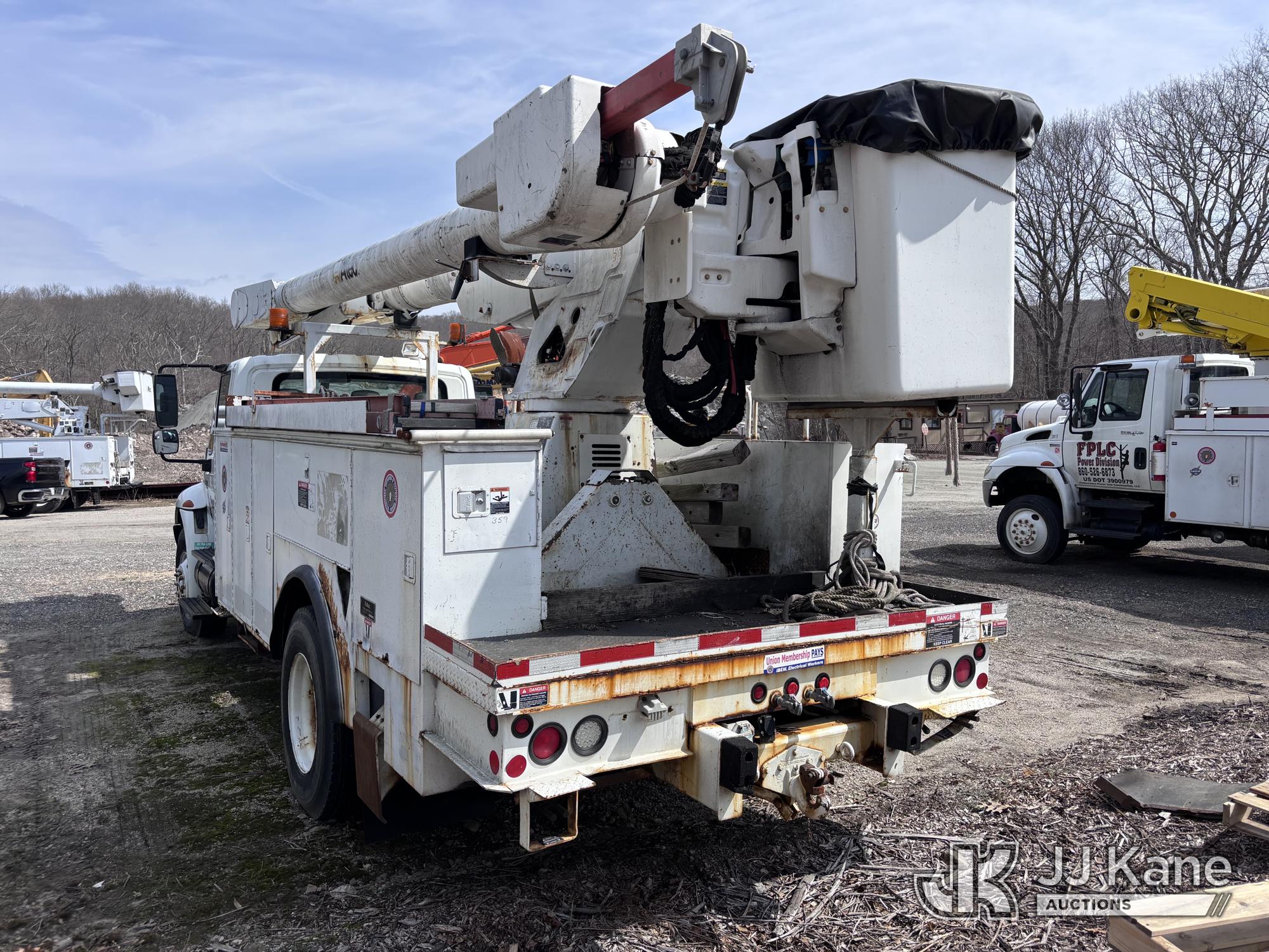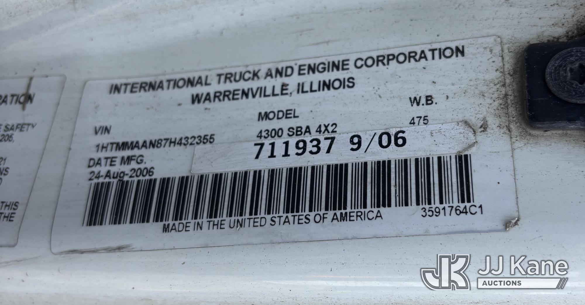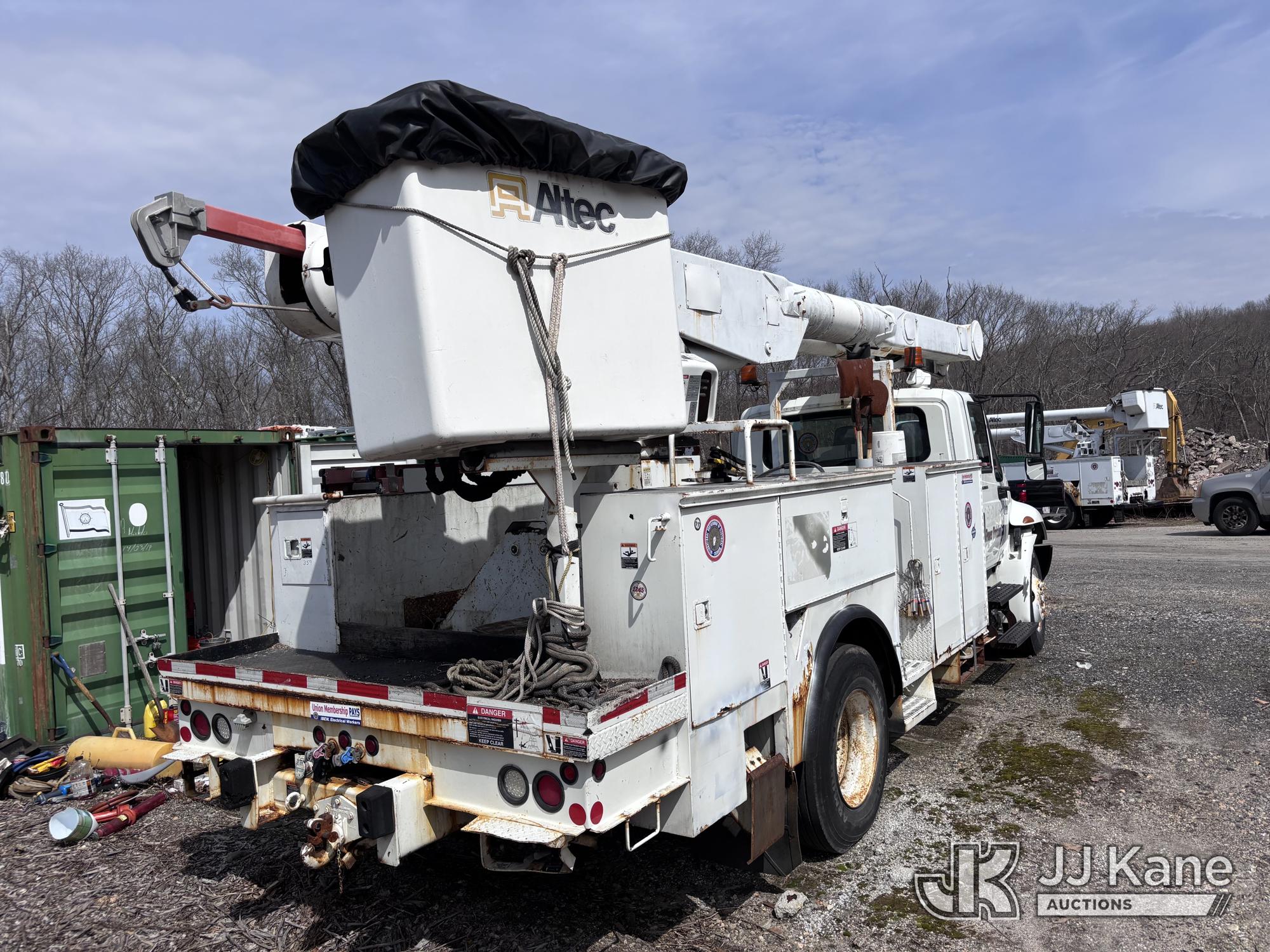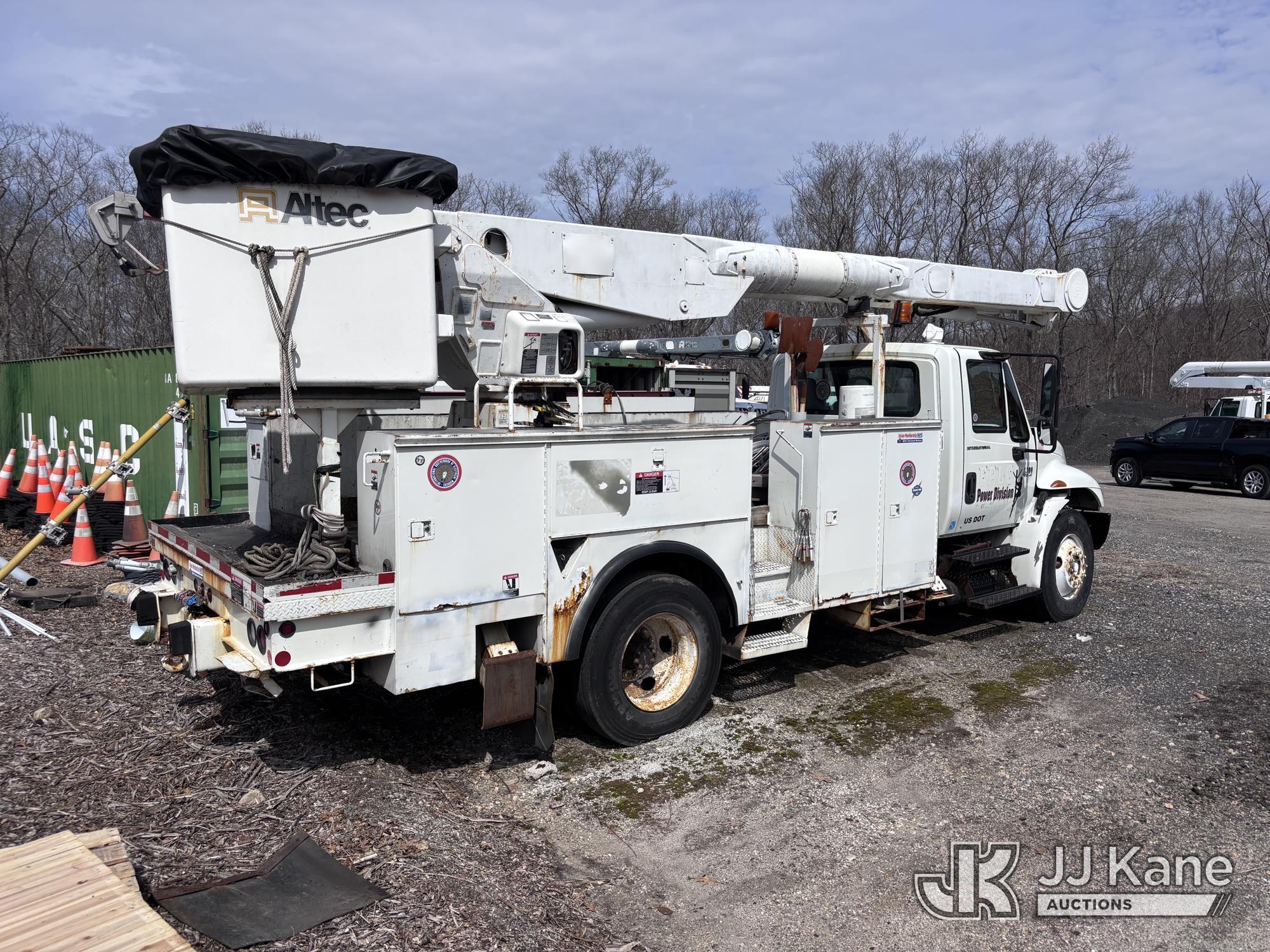 Altec AM855-MH, 60 ft, Over-Center Material Handling Bucket Truck s/n 1206BB4259, with two-man bucket & 4 hyd outriggers, rear mounted on 2007 International 4300 Utility Truck, DT466 Diesel, 4X2, Auto, A/C, (93,978 miles) (Not Running, Condition Unknown) (Upper End of Engine Partially Disassembled) (Sellers Tooling Will Be Removed Prior To Sale) This is a Titled Item*