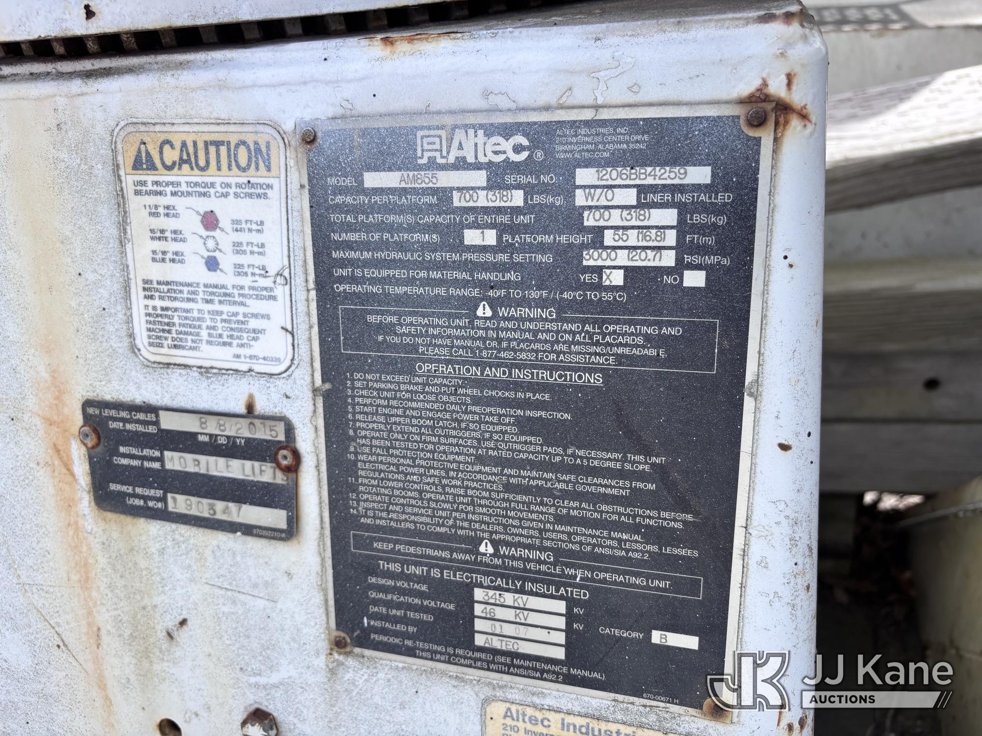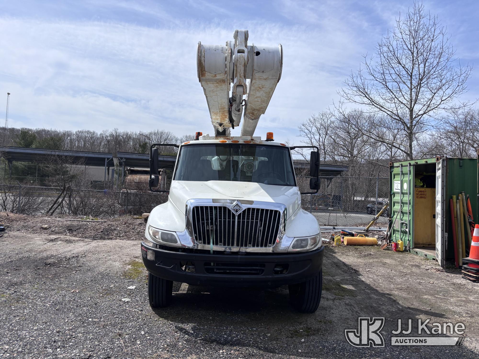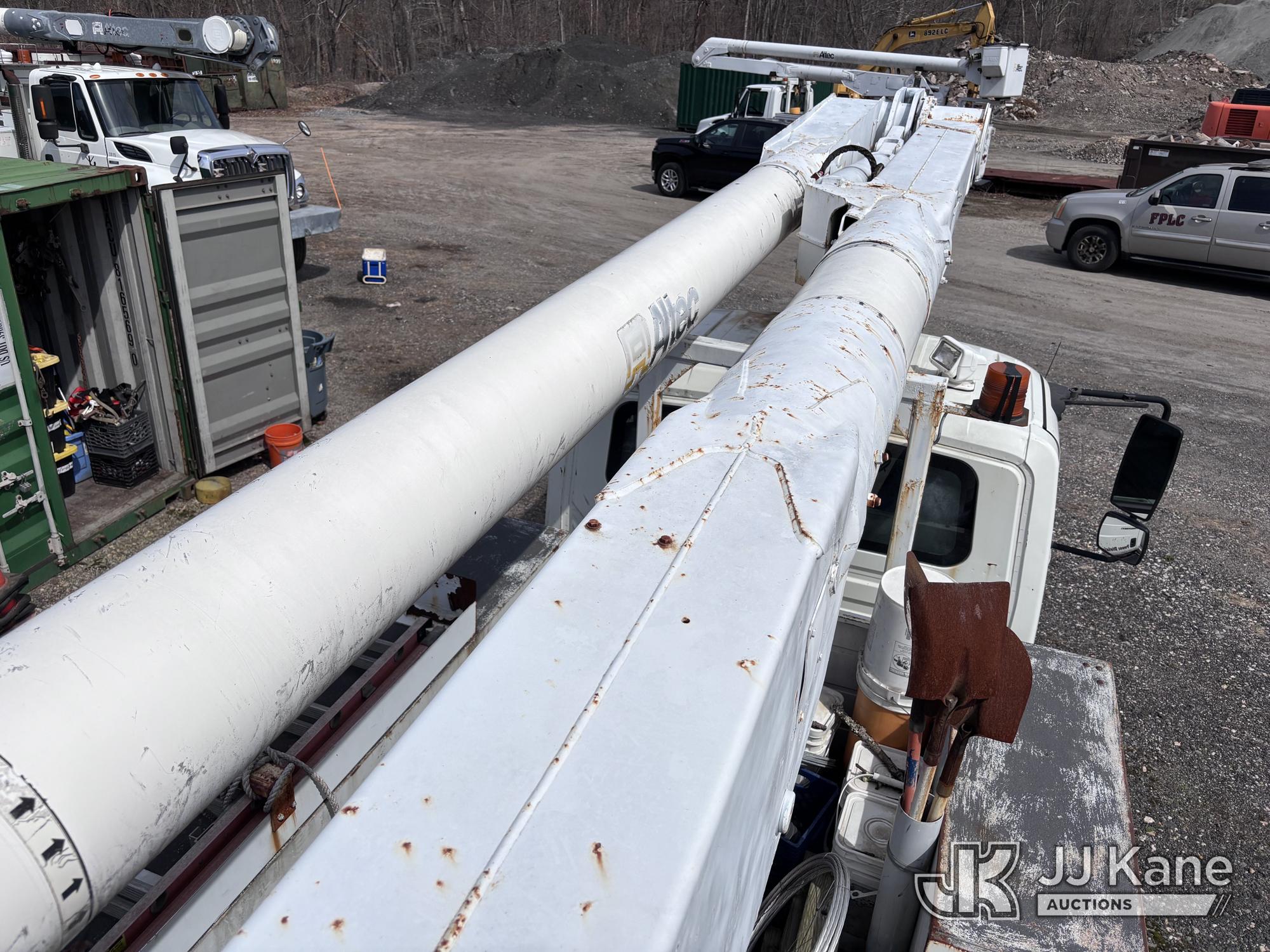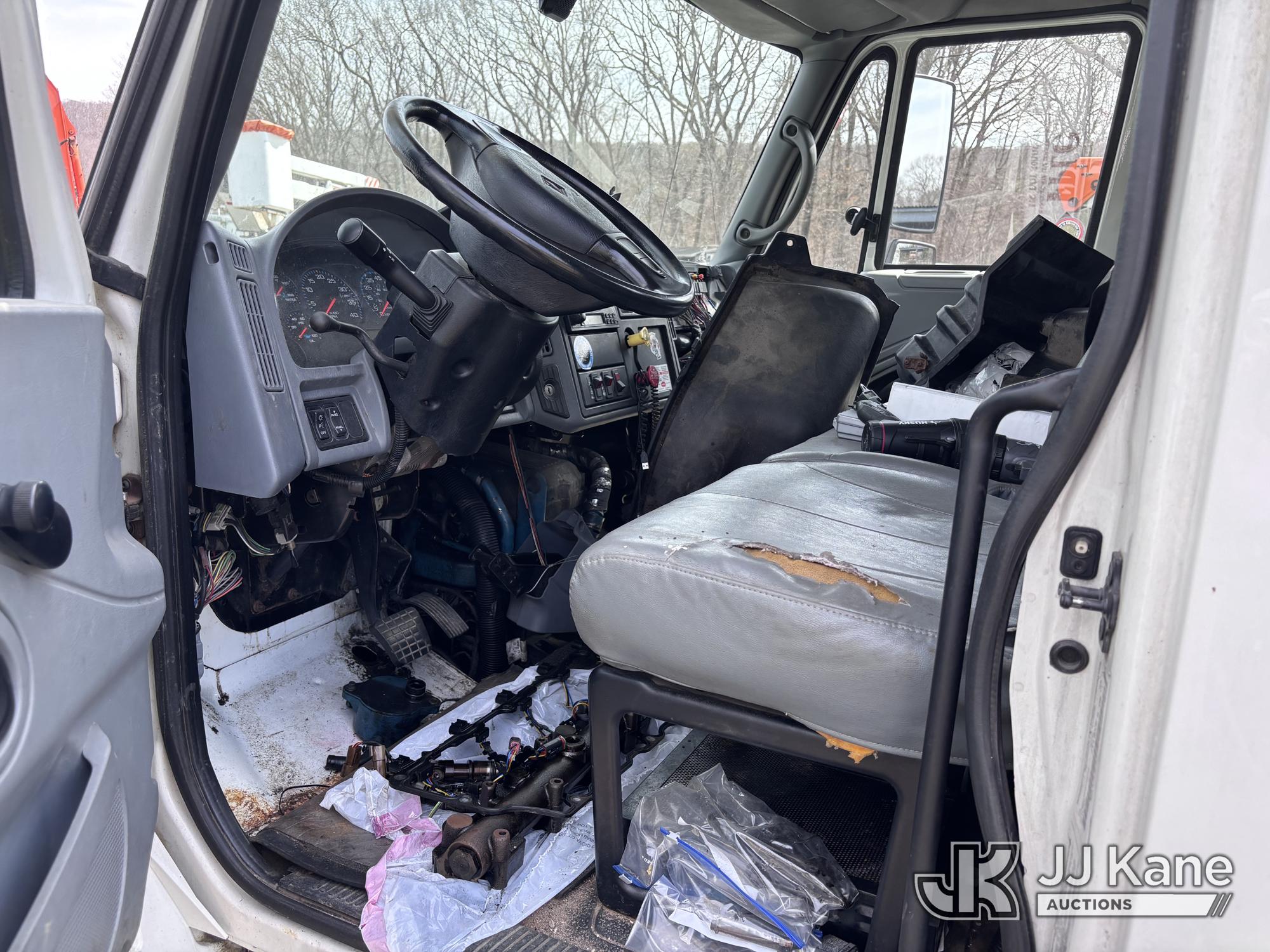 Altec AM855-MH, 60 ft, Over-Center Material Handling Bucket Truck s/n 1206BB4259, with two-man bucket & 4 hyd outriggers, rear mounted on 2007 International 4300 Utility Truck, DT466 Diesel, 4X2, Auto, A/C, (93,978 miles) (Not Running, Condition Unknown) (Upper End of Engine Partially Disassembled) (Sellers Tooling Will Be Removed Prior To Sale) This is a Titled Item*