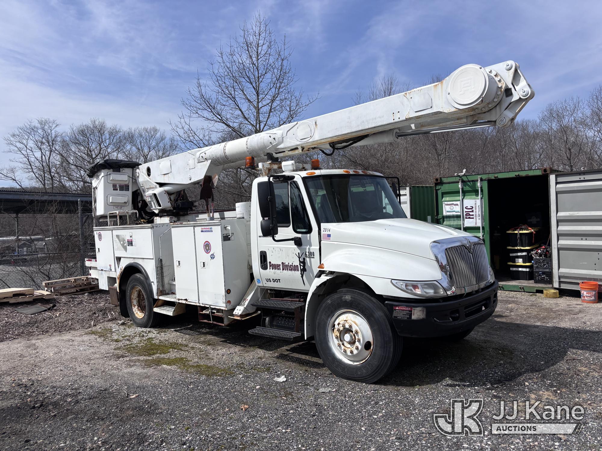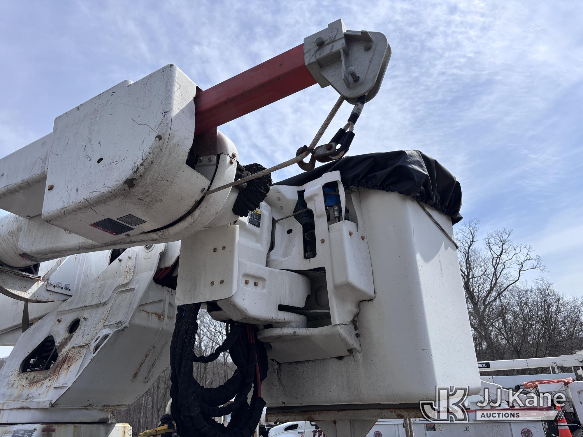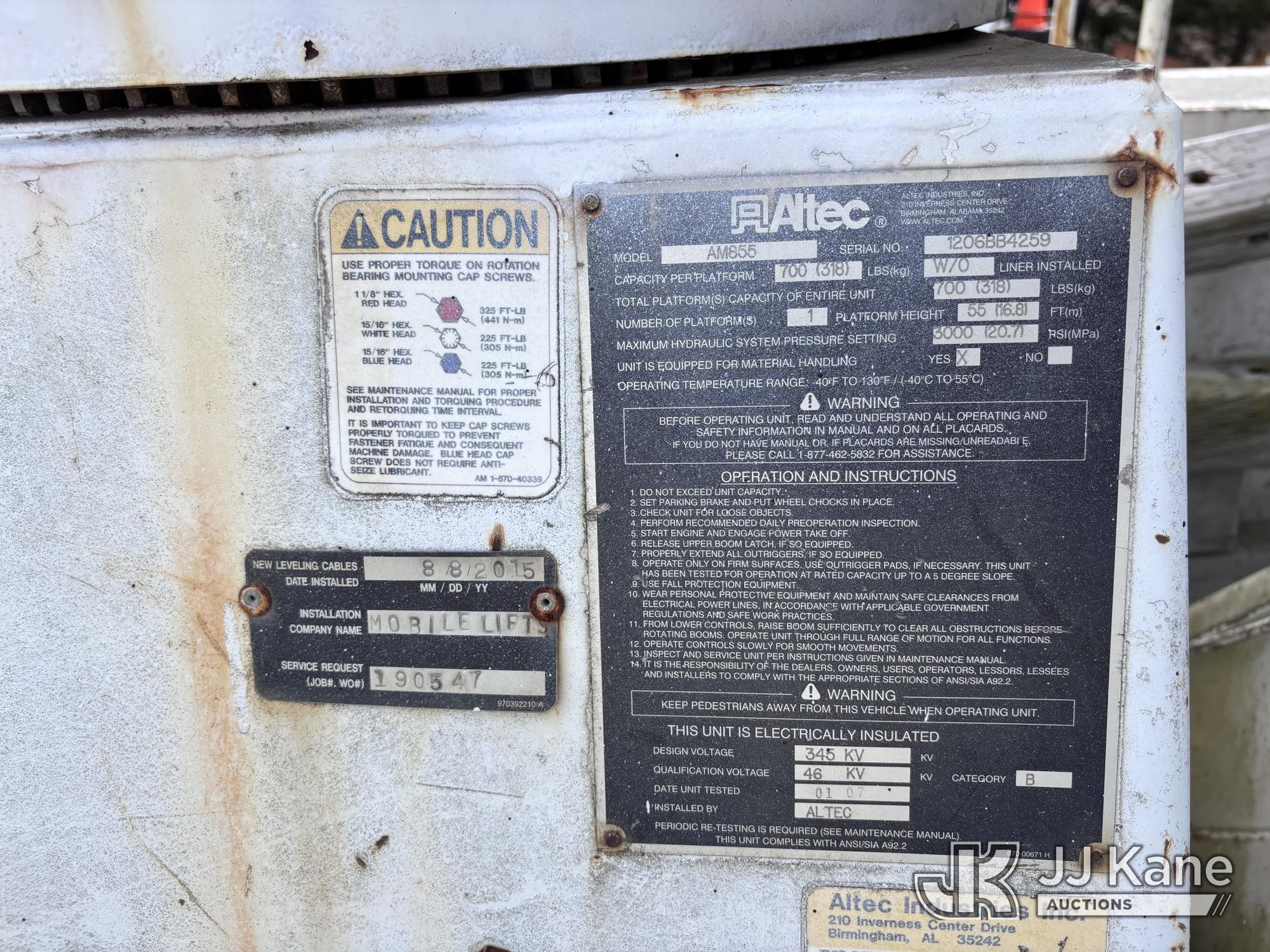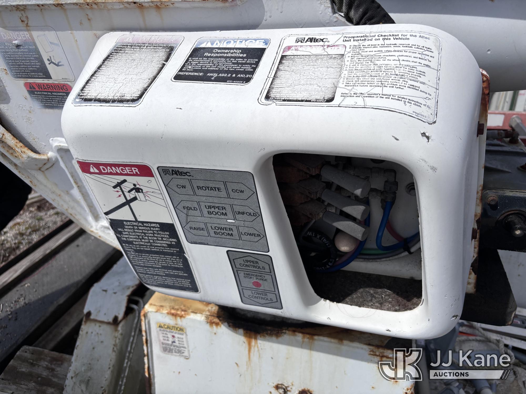 Altec AM855-MH, 60 ft, Over-Center Material Handling Bucket Truck s/n 1206BB4259, with two-man bucket & 4 hyd outriggers, rear mounted on 2007 International 4300 Utility Truck, DT466 Diesel, 4X2, Auto, A/C, (93,978 miles) (Not Running, Condition Unknown) (Upper End of Engine Partially Disassembled) (Sellers Tooling Will Be Removed Prior To Sale) This is a Titled Item*