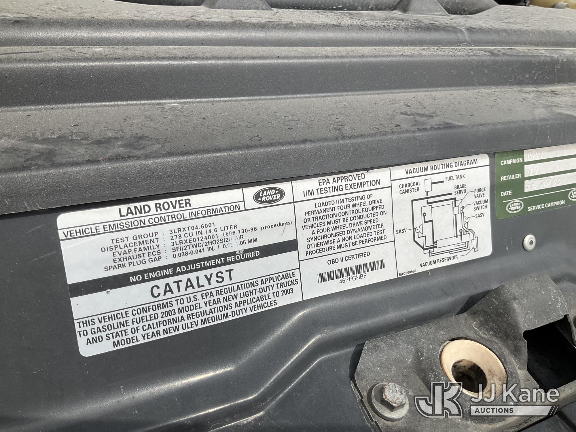 2003 Land Rover Discovery 4x4 4-Door Sport Utility Vehicle, 8-cyl gas, Auto, A/C, (Exempt from Odometer Disclosure - Reads 134,978 miles) (Runs & Moves) (Brake Light On) This is a Titled Item*
