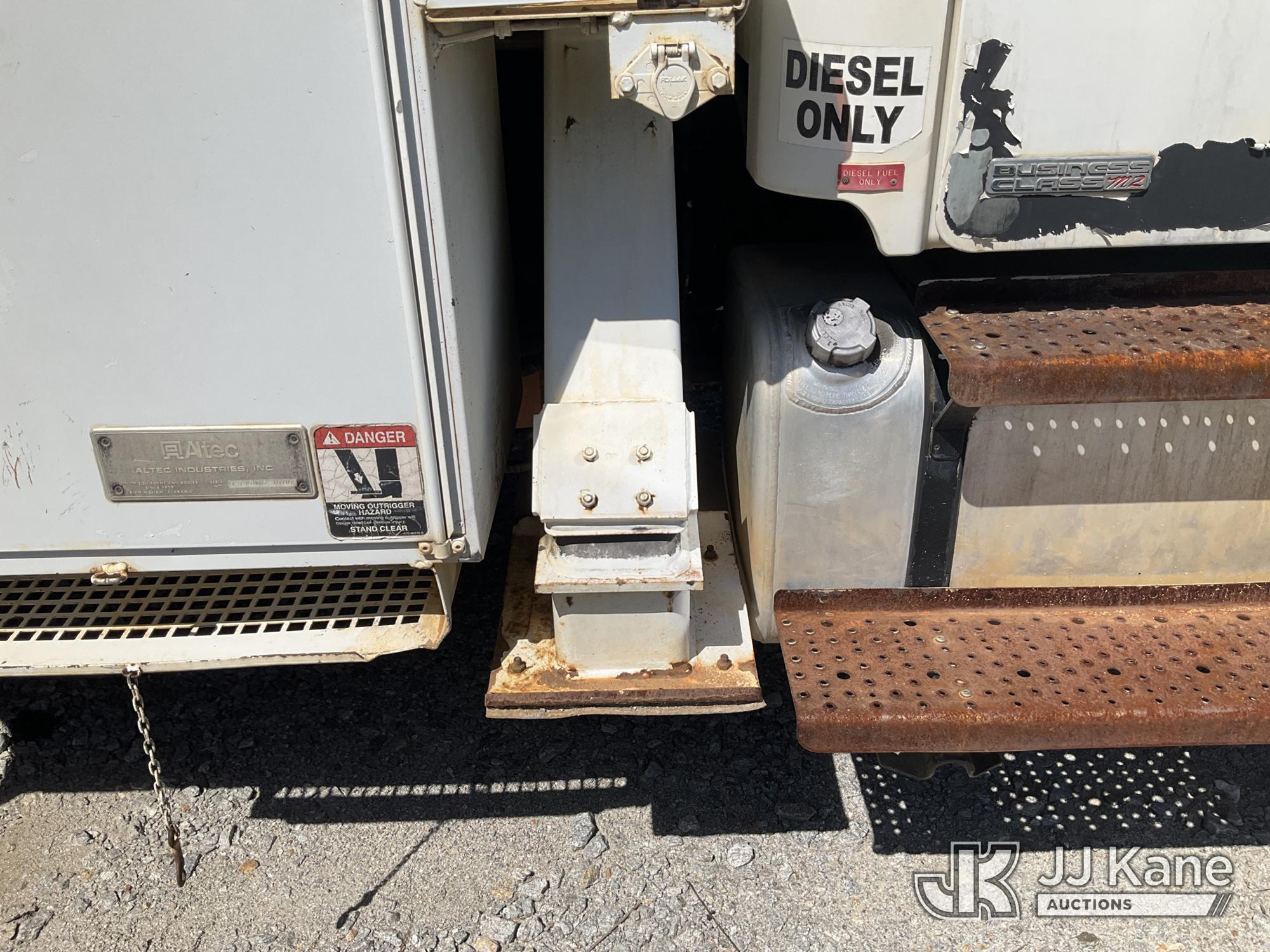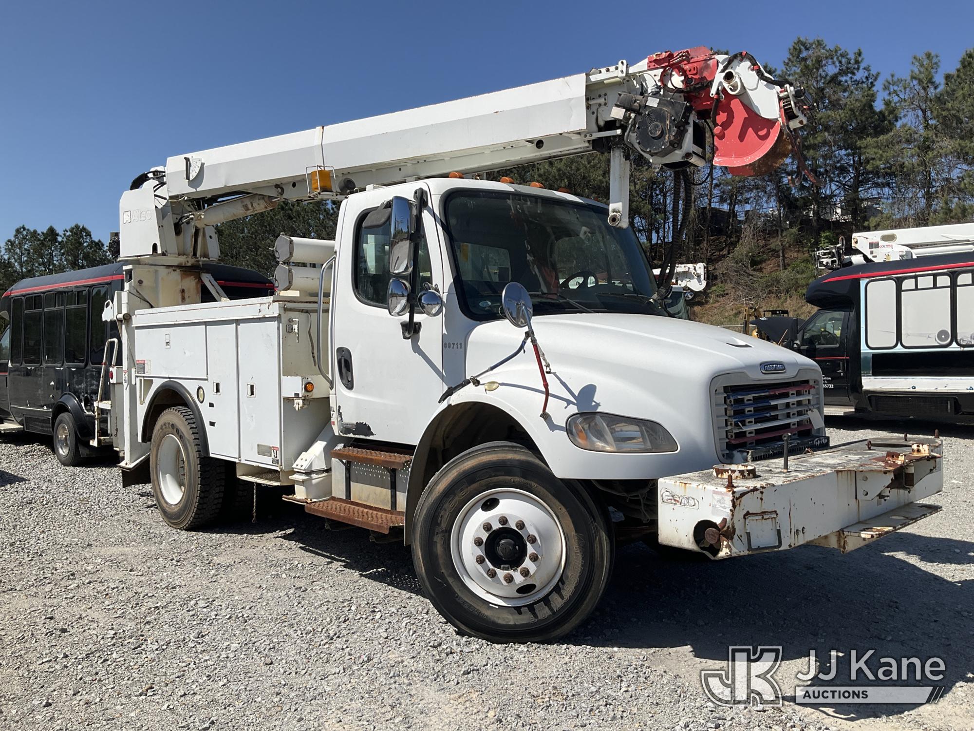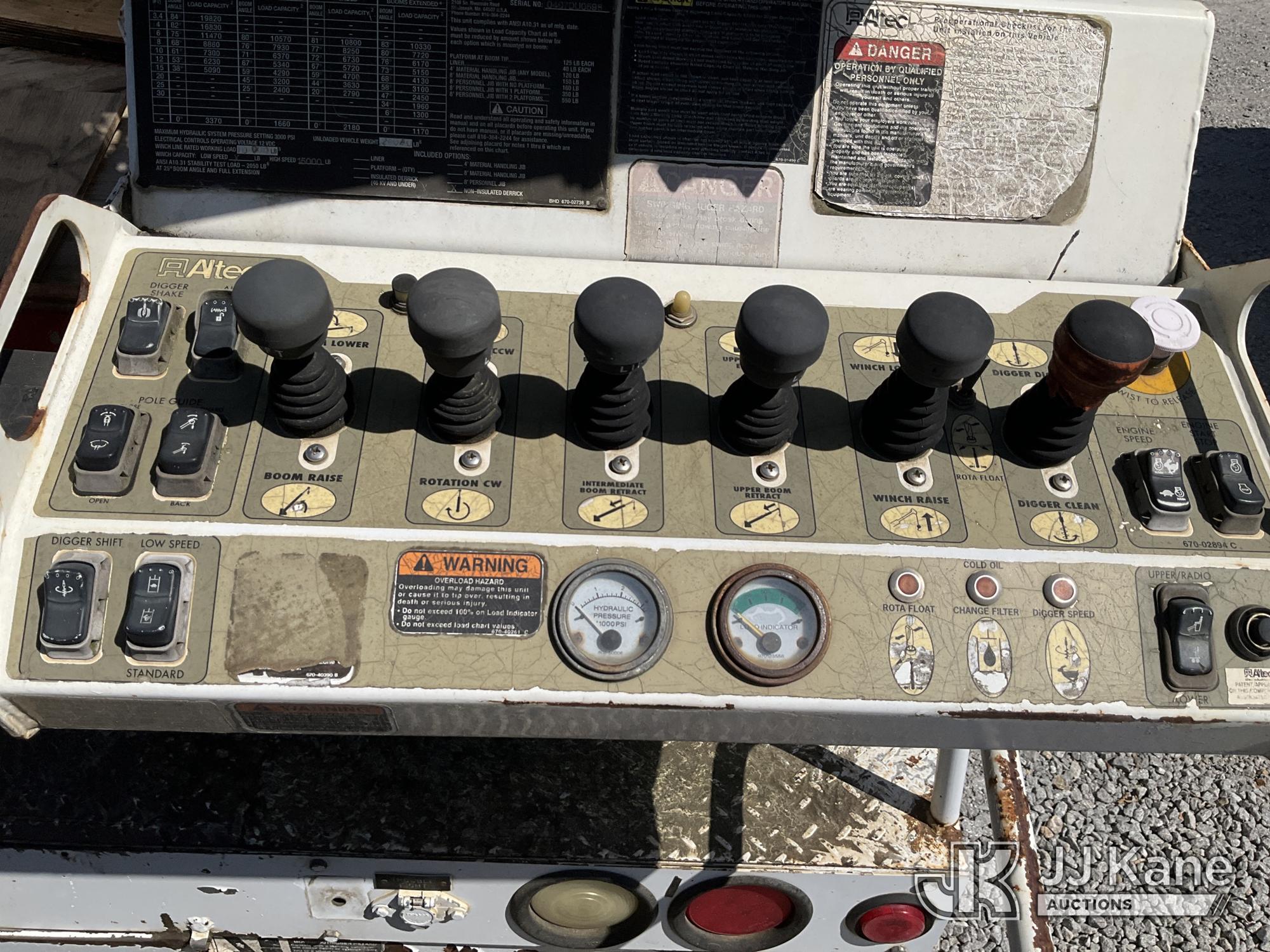 Altec DL45-BC, 19,820 Lb Derrick s/n 0407DU0598, with 45ft sheave height, pole guides, tip winch, corner mounted on 2007 Freightliner M2 Utility Truck, Cat 7.2L diesel, Auto, A/C, with front winch, True Mileage Unknown (Not Running, Condition Unknown, Upper Condition Unknown, Missing Digger Motor) This is a Titled Item*
