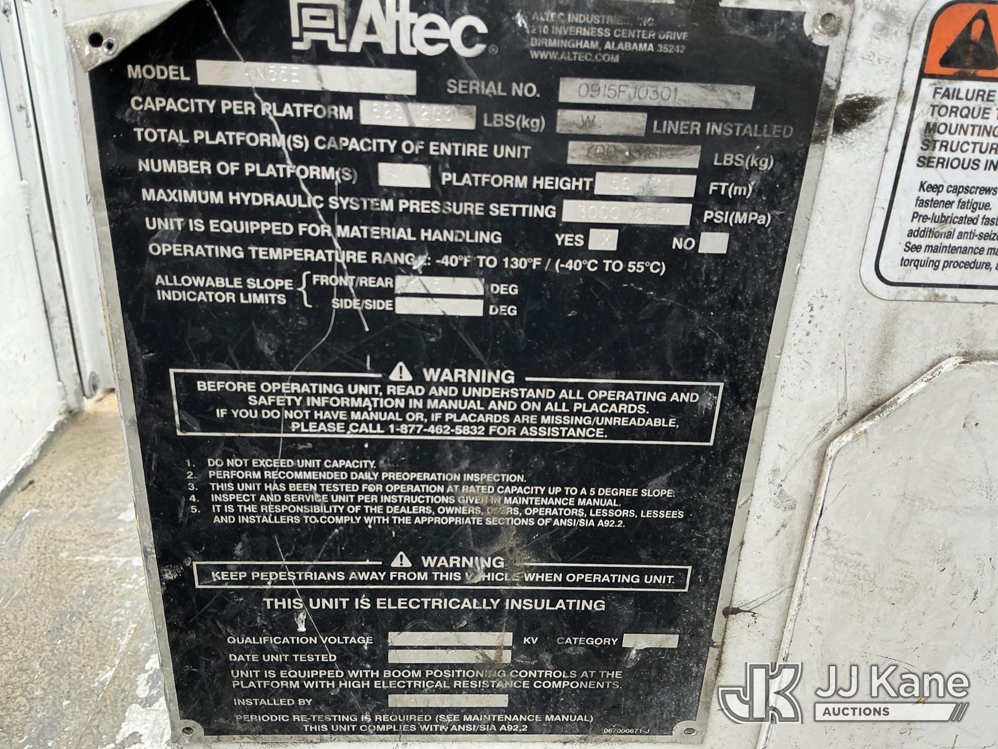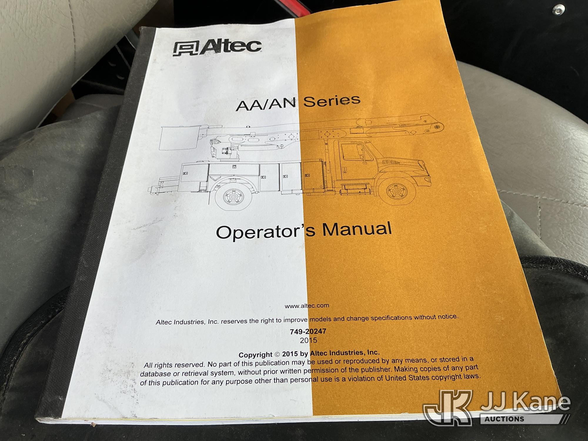 Altec AN55E, 60 ft, Material Handling Bucket Truck s/n 0915FJ0301, with two-man bucket & 4 hyd outriggers, rear mounted on 2016 Freightliner M2 106 Utility Truck, 6.7L L6 Diesel, 4X2, Auto, A/C, with inverter, (95,843 miles) (Runs, Moves & Upper Operates) (Paint Damage) (Reads 8,277 hours) This is a Titled Item*