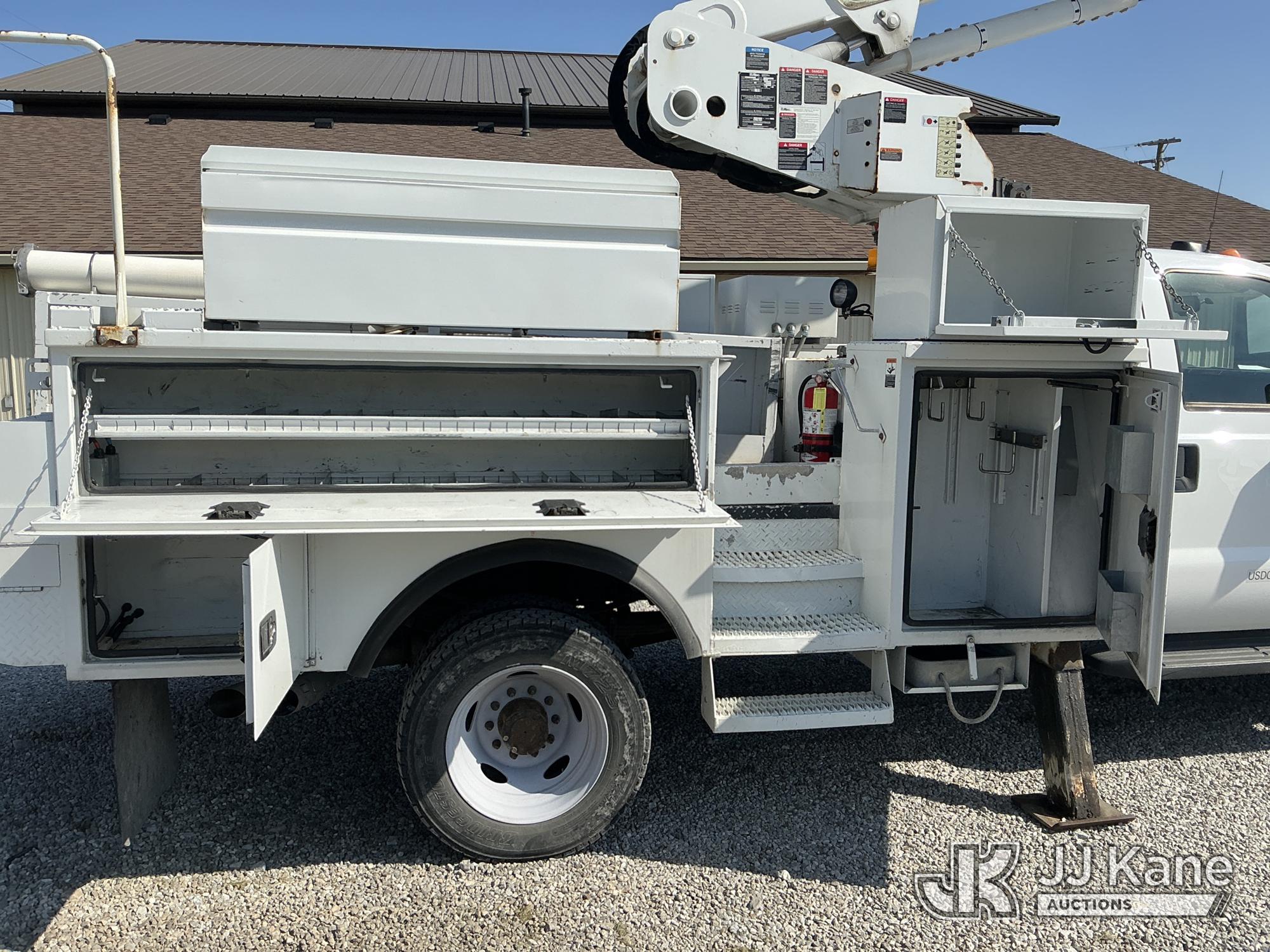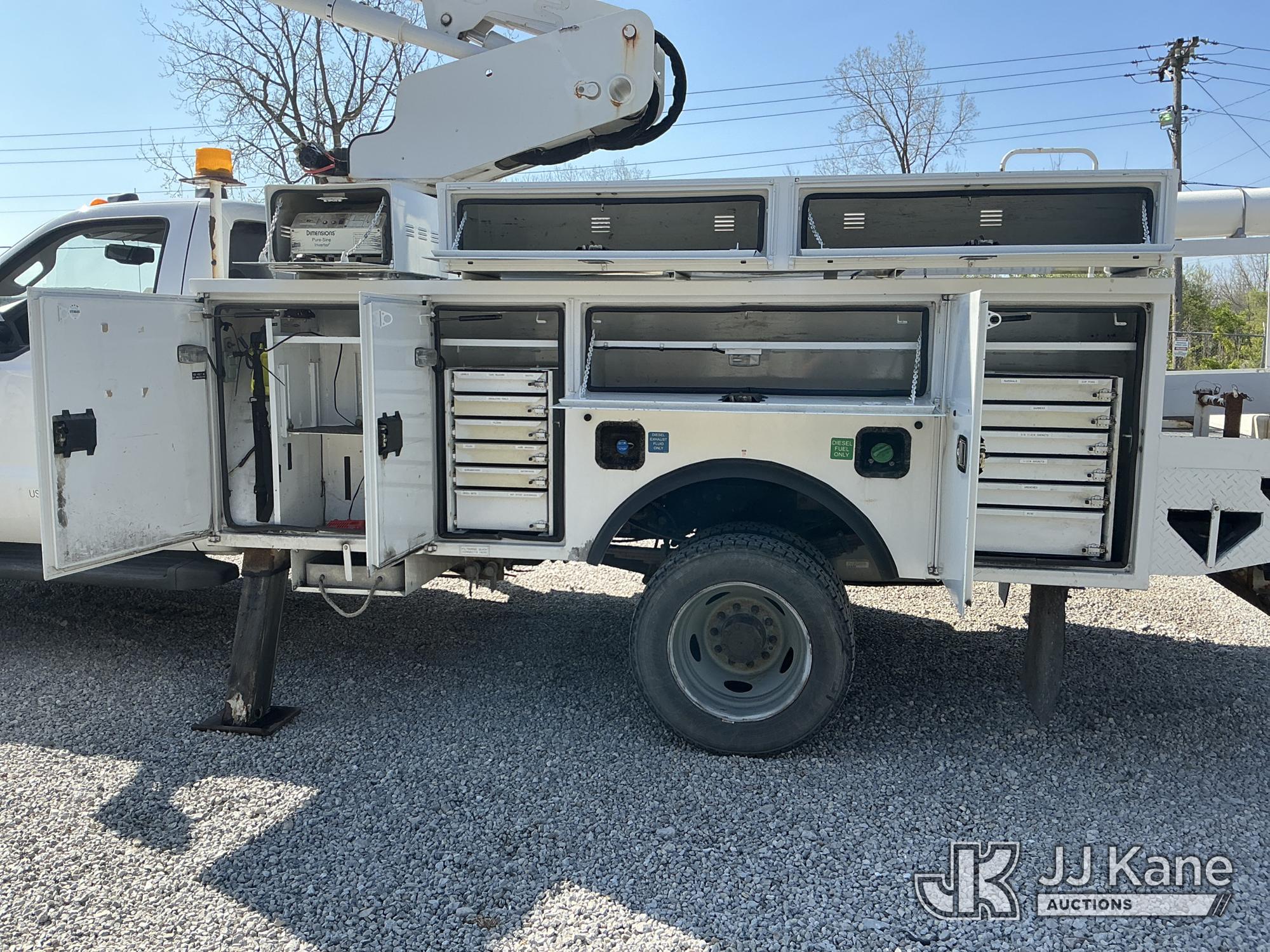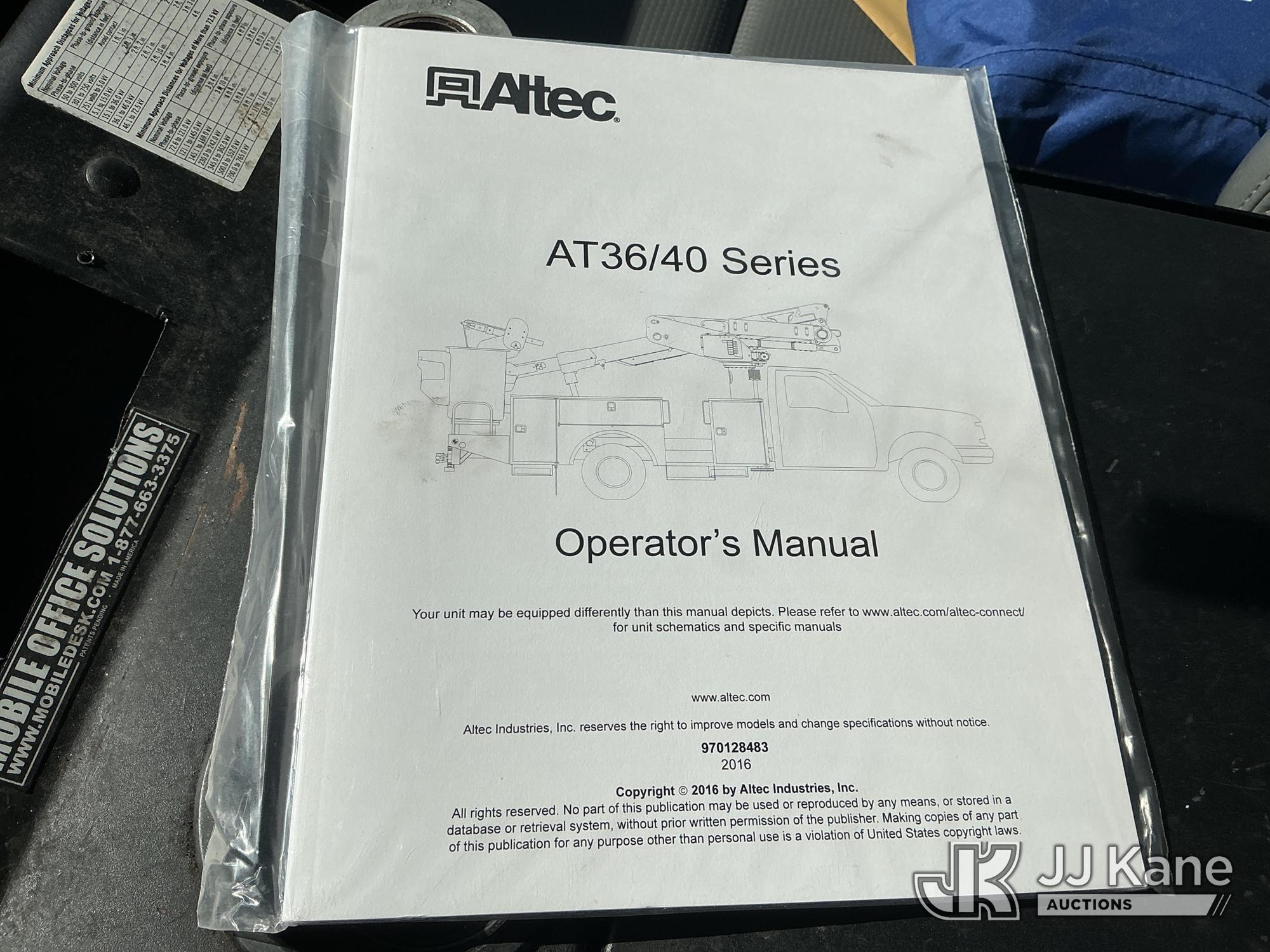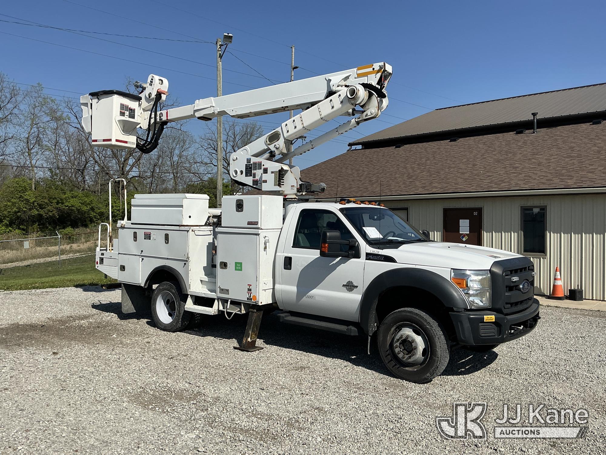 Altec AT40-MH, 40 ft, Articulating & Telescopic Material Handling Bucket Truck s/n 1112CZ01001, with single-man bucket & 2 hyd outriggers, mounted behind cab on 2012 Ford F-550 Regular Cab DRW 4WD Service Truck, s/n 1FDUF5HT5CEC97863, 6.7L V8 OHV 16V Diesel, Auto, A/C, with inverter, (131,247 miles) (Runs, Moves & Upper Operates) (Check Engine Light On, Paint Damage) (Reads 8,396 hours) This is a Titled Item*
