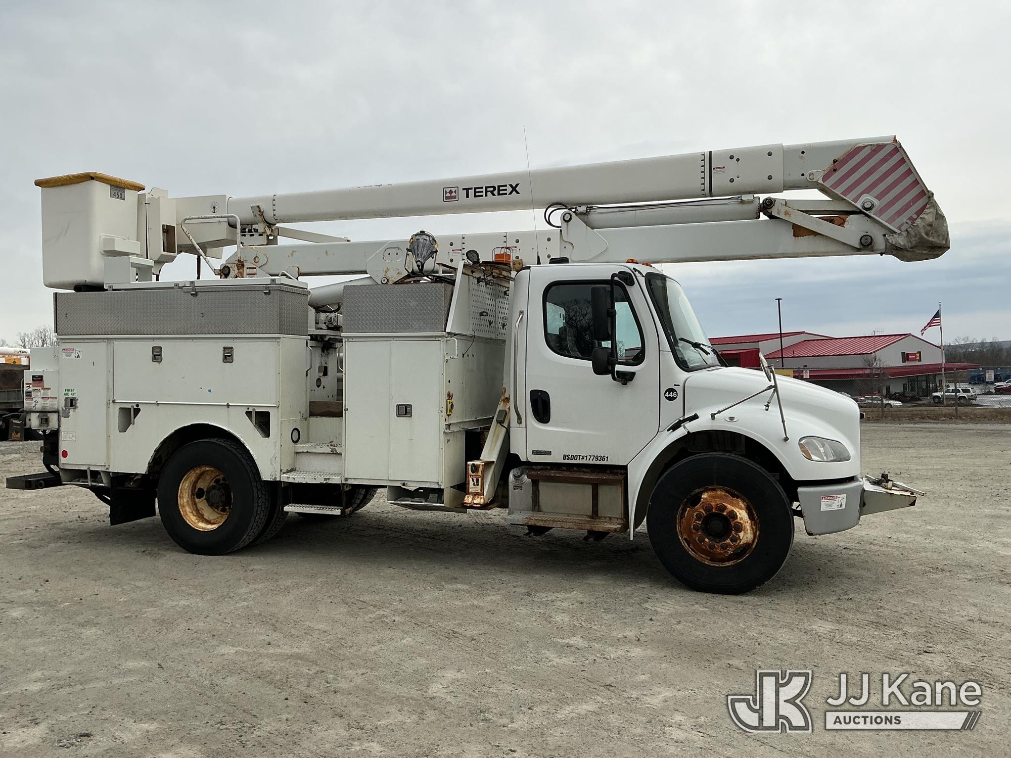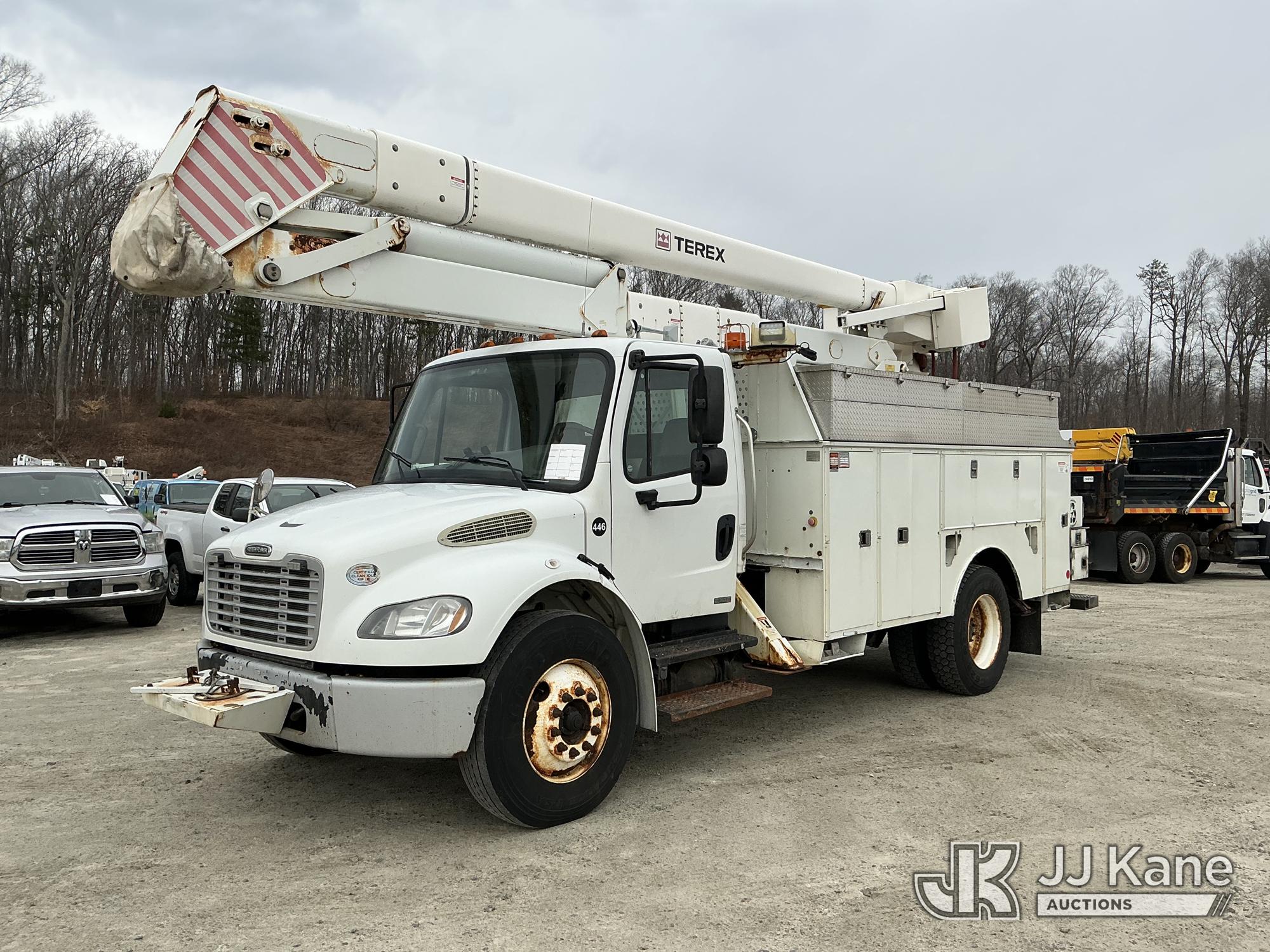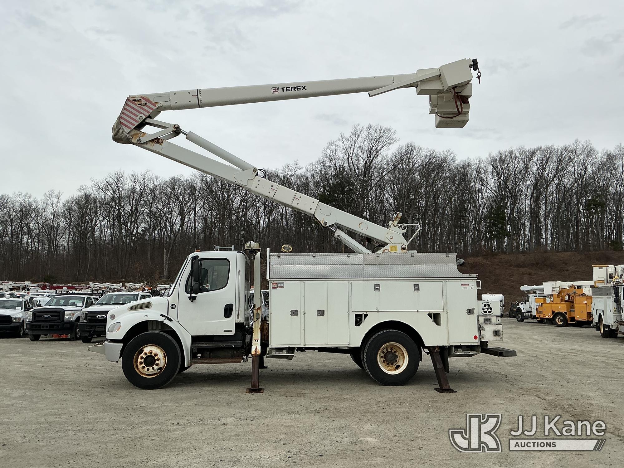 Terex/HiRanger HR52-MH, 57 ft, Material Handling Bucket Truck s/n 2100141057, with single-man bucket & 4 hyd outriggers, rear mounted on 2010 Freightliner M2 106 Utility Truck, Cummins 6.7L 4X2, diesel, Auto, A/C, (155,394 miles) (Runs, Moves & Upper Operates) (Reads 12,351 hours) This is a Titled Item*