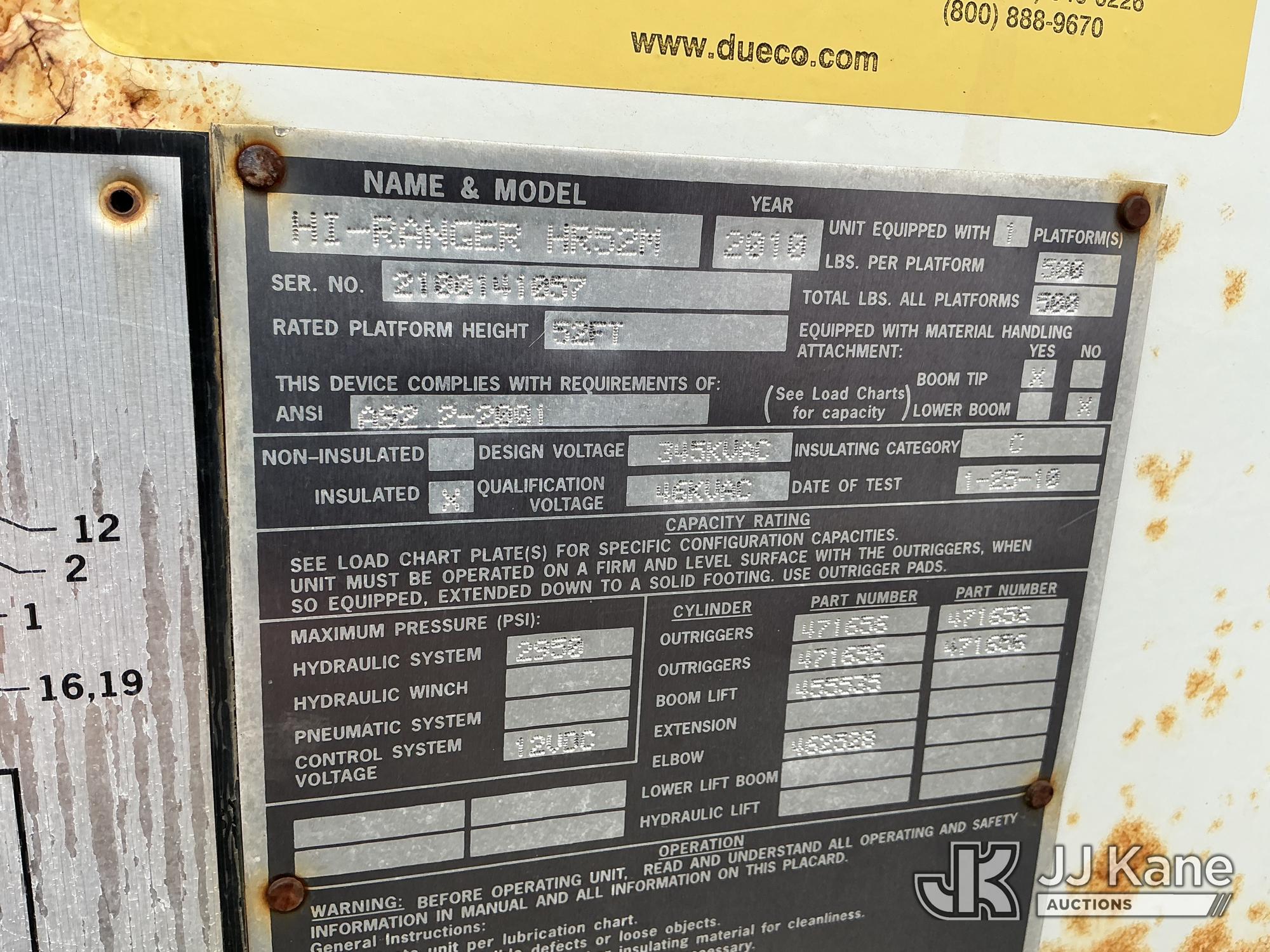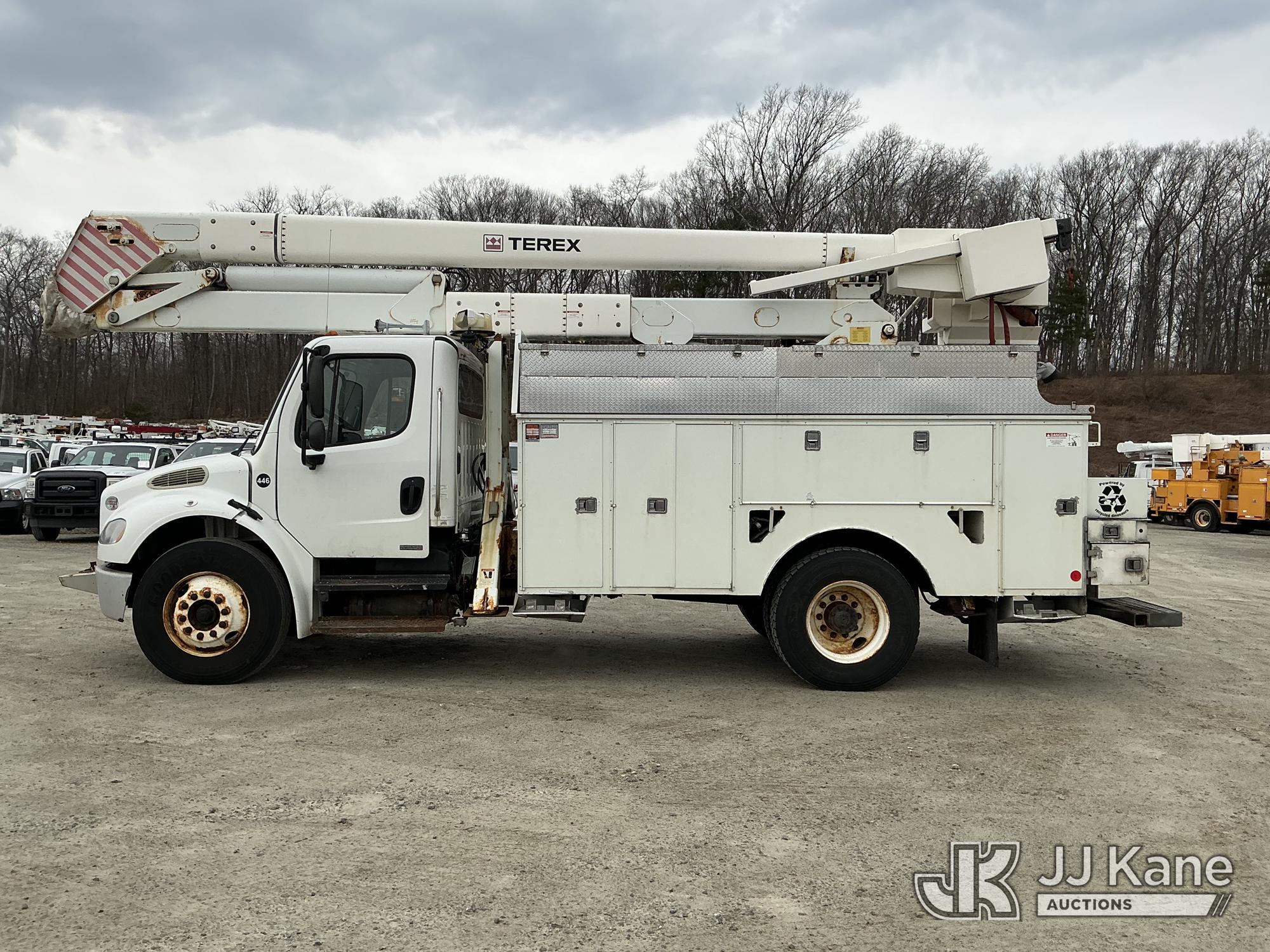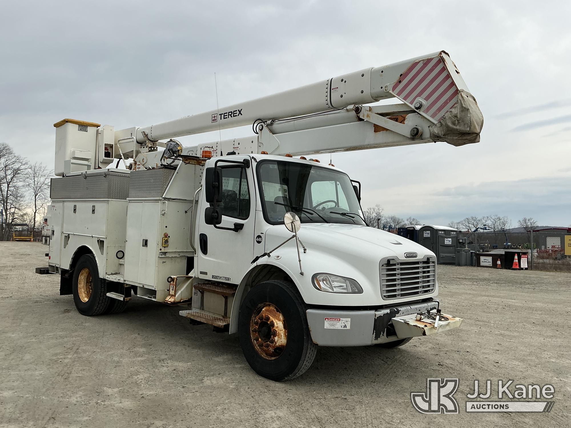 Terex/HiRanger HR52-MH, 57 ft, Material Handling Bucket Truck s/n 2100141057, with single-man bucket & 4 hyd outriggers, rear mounted on 2010 Freightliner M2 106 Utility Truck, Cummins 6.7L 4X2, diesel, Auto, A/C, (155,394 miles) (Runs, Moves & Upper Operates) (Reads 12,351 hours) This is a Titled Item*