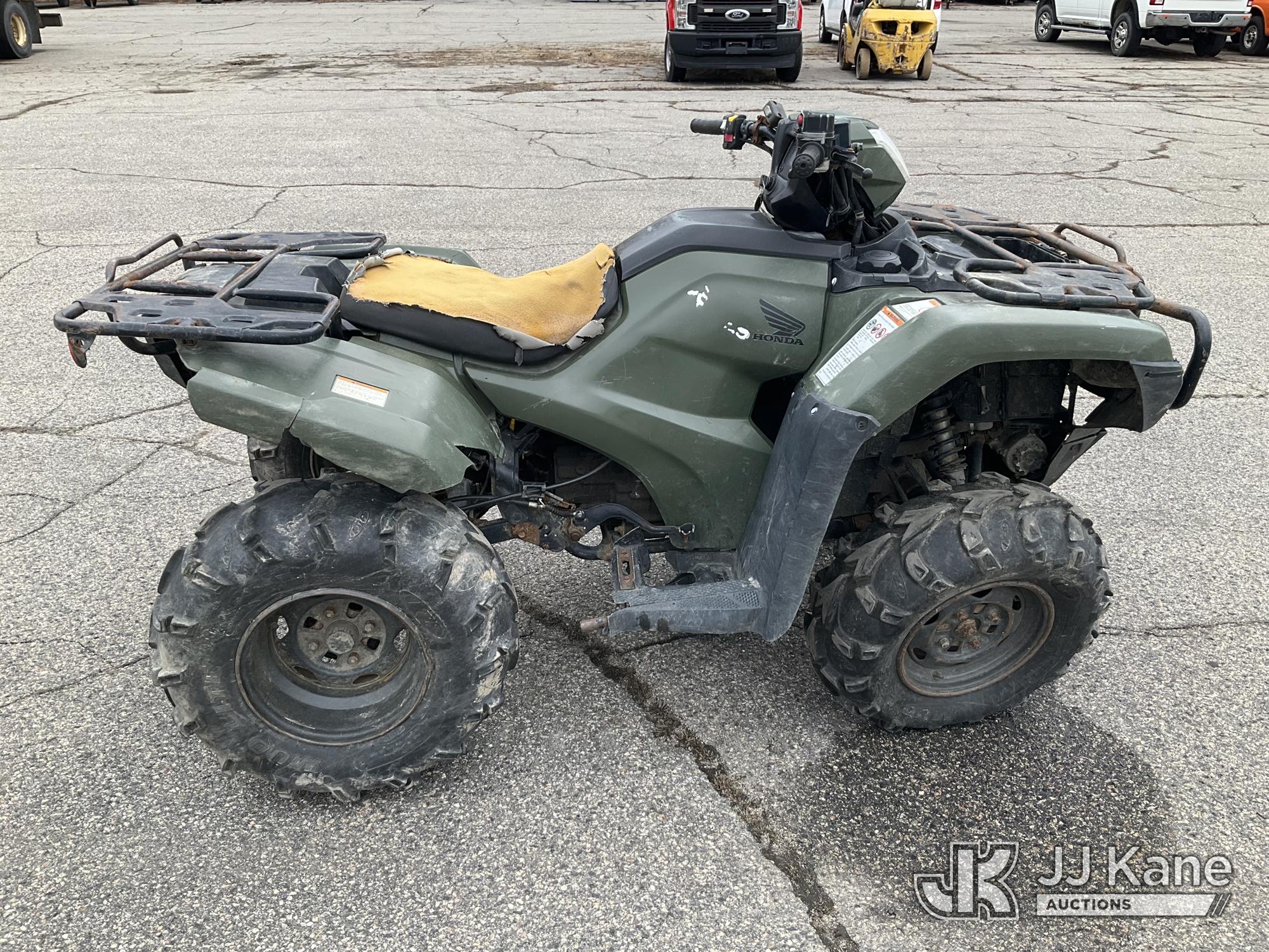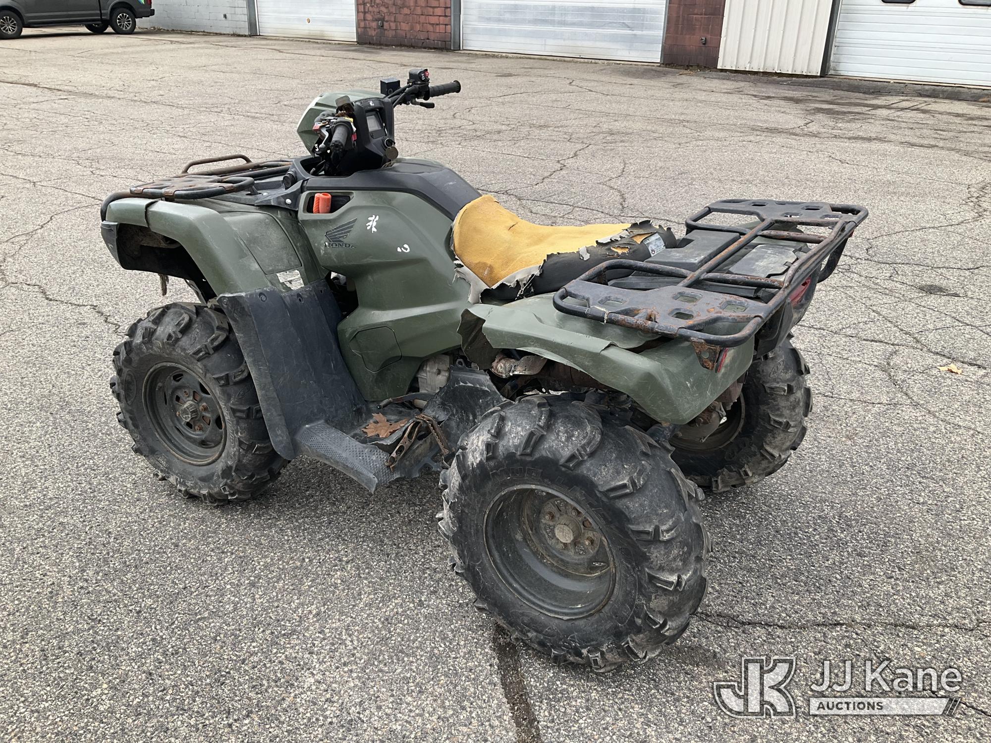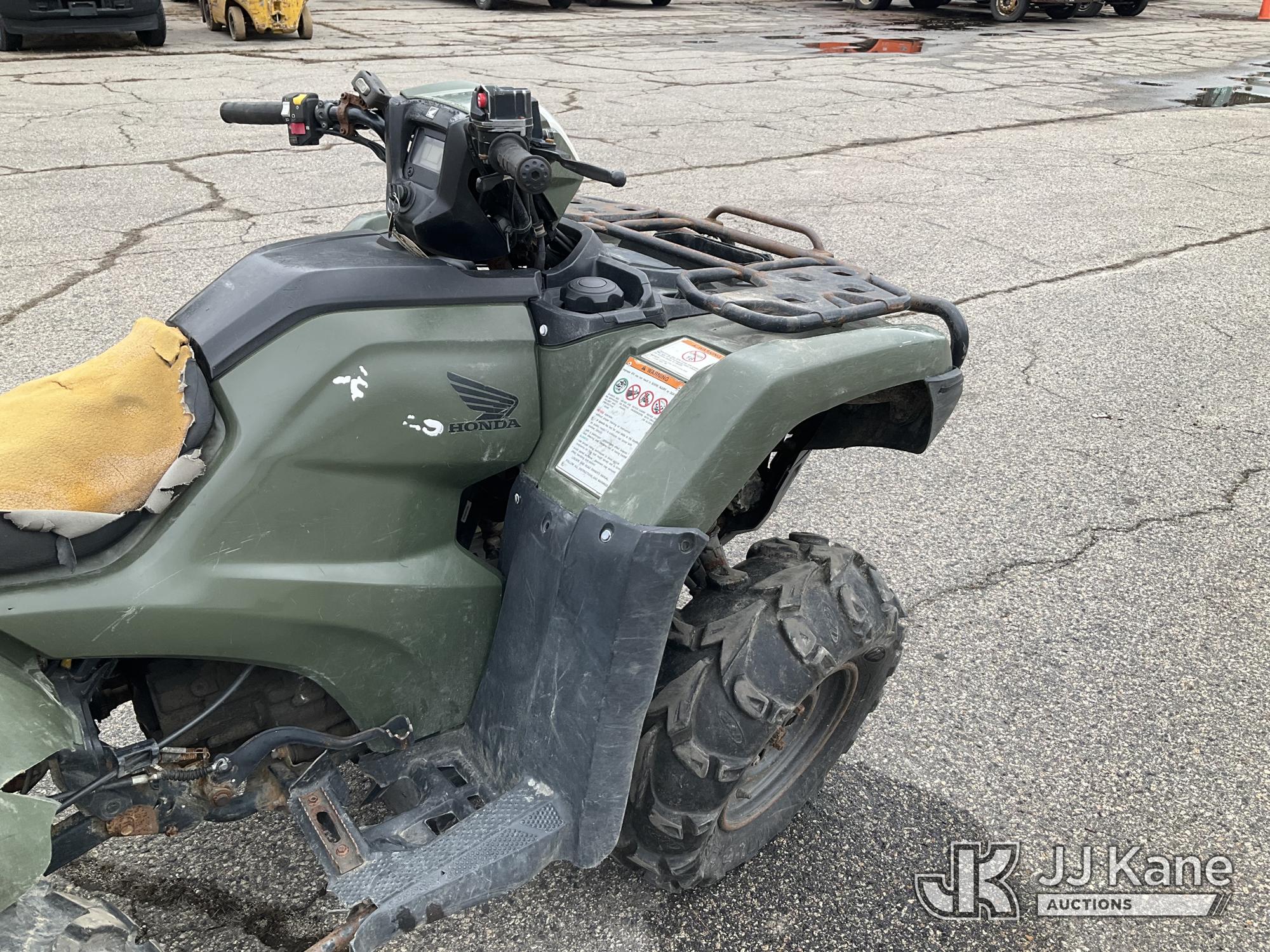 2021 Honda TRX520FM1M 4 Wheeler All Terrain Vehicle, s/n 1HFTE4416M4704457, Gas, manual, (3,189 miles) (Non-Titled) (Runs, Jump To Start, Moves, Broken Right Lower Control Arm, Headlight/Dash Broken, Bad Reverse Cable & Lever)*