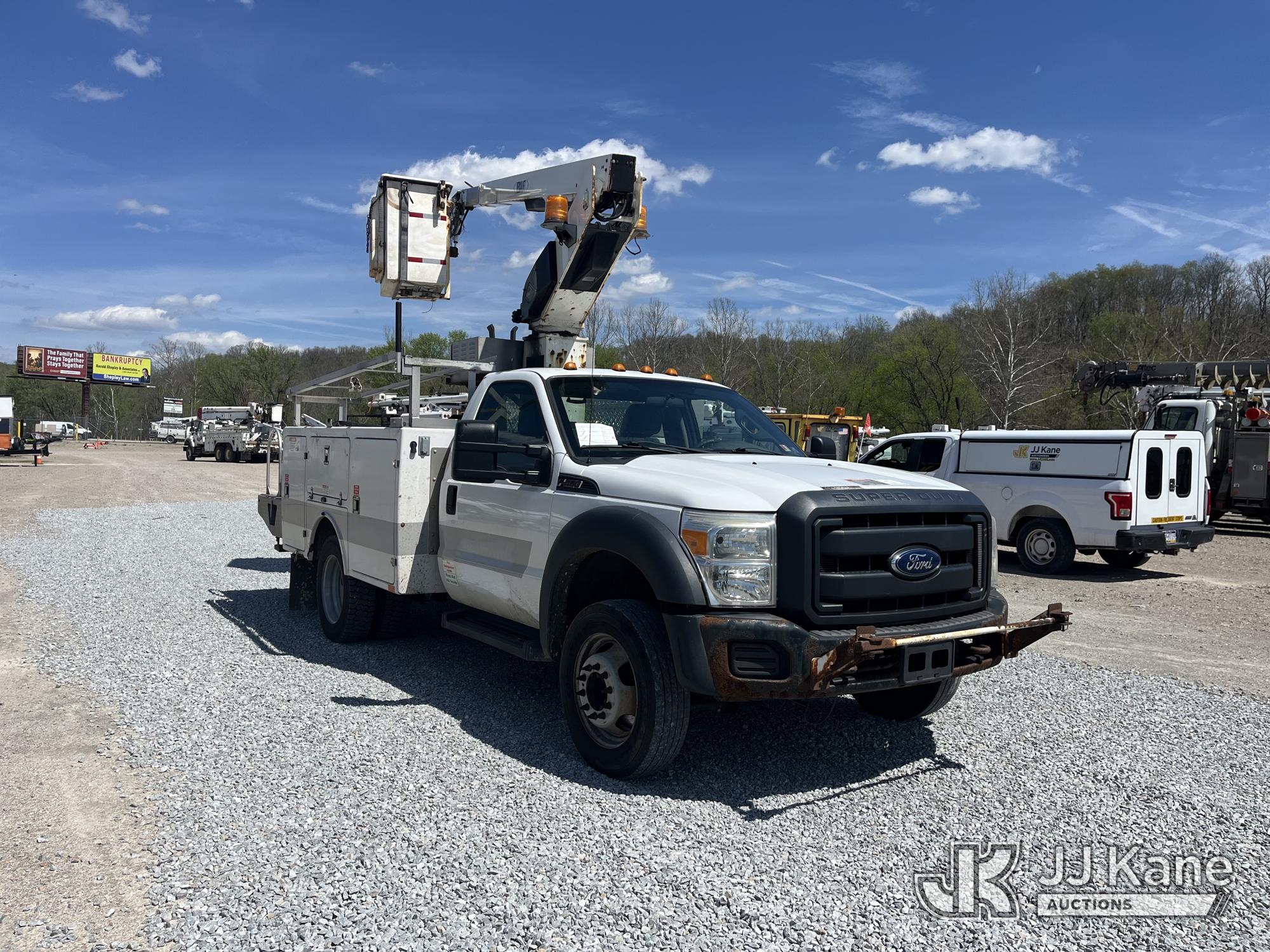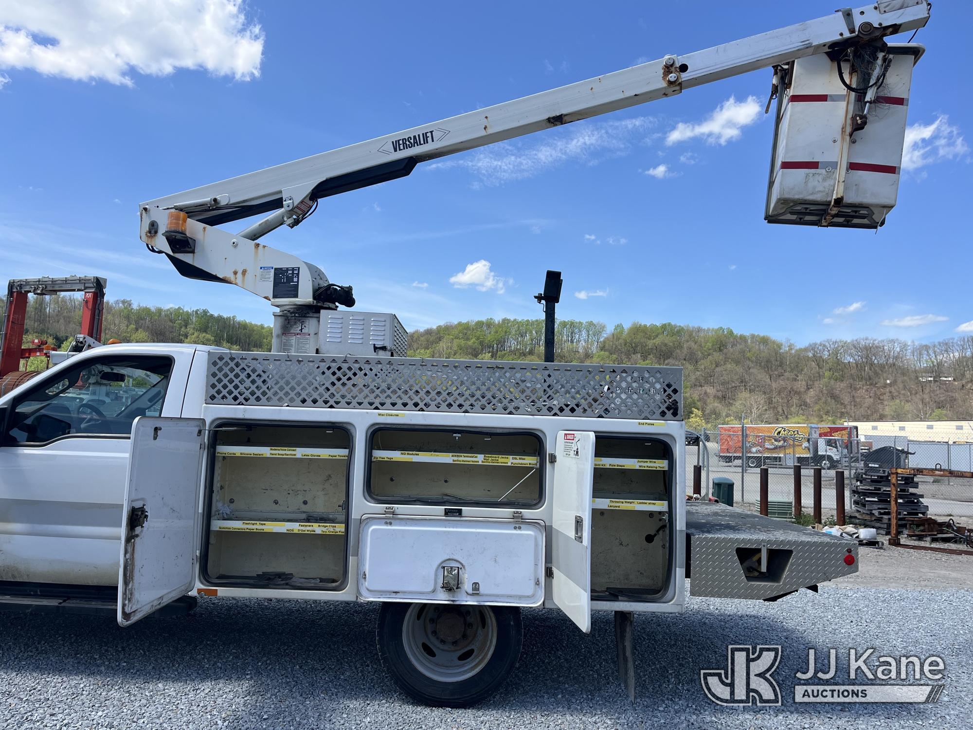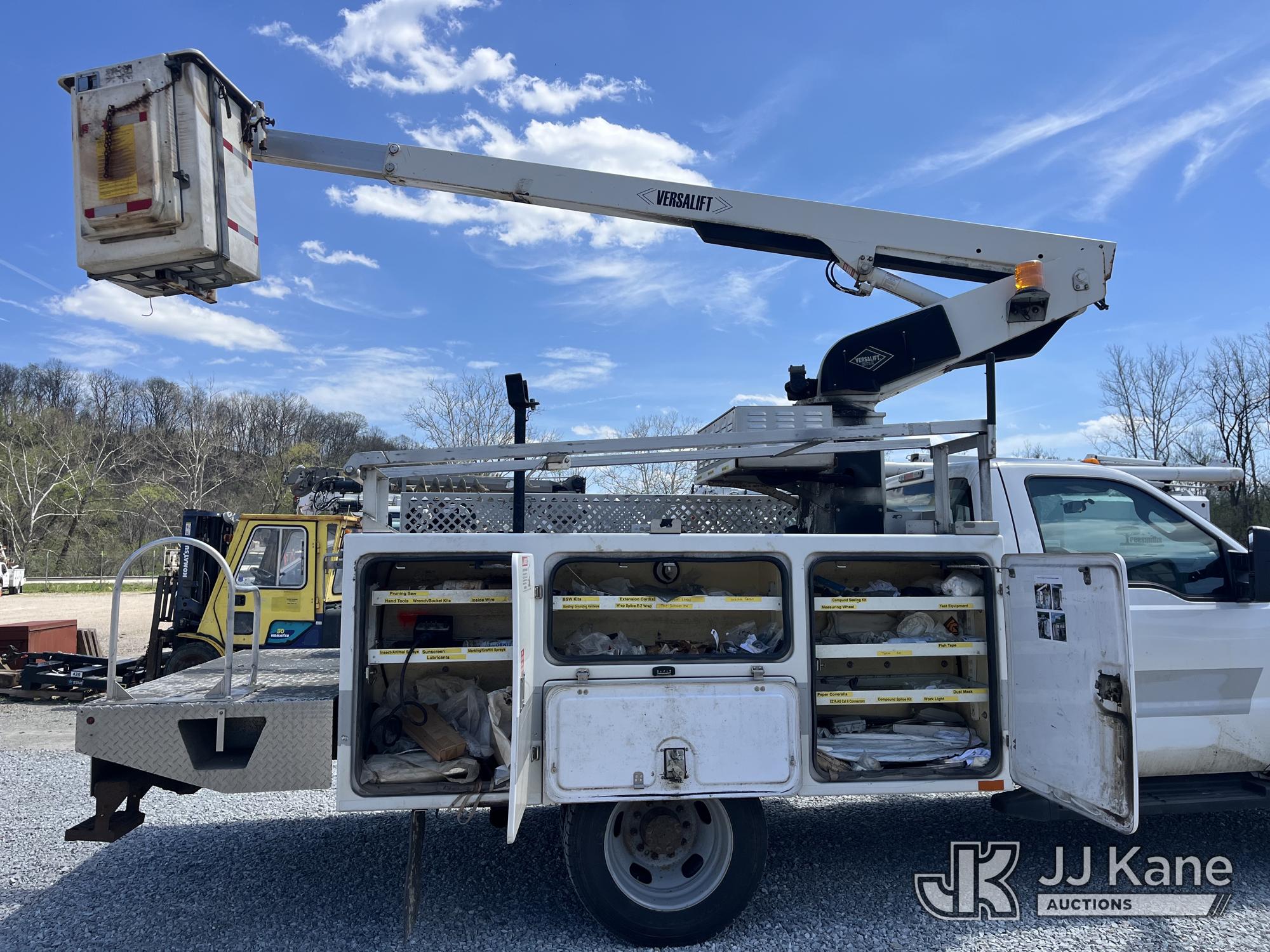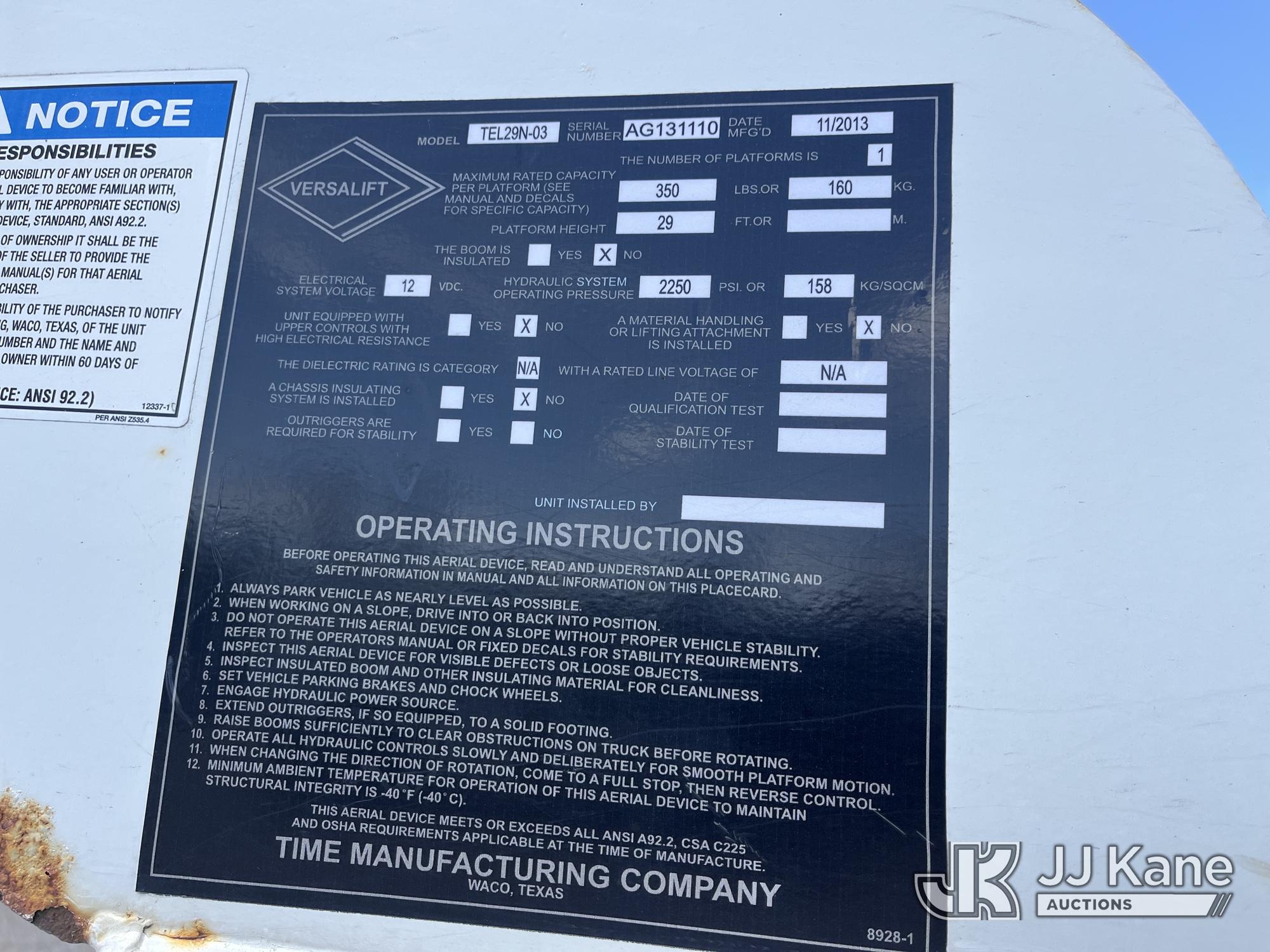 Versalift TEL29N-03, 34 ft, Non-Insulated Bucket Truck s/n AG131110, with single-man bucket, mounted behind cab on 2014 Ford F450 Service Truck, 6.8L V10 Gas, RWD, Automatic, A/C, (210,595 miles) (Runs, Moves & Operates) (Reads 1,950 hours) This is a Titled Item*