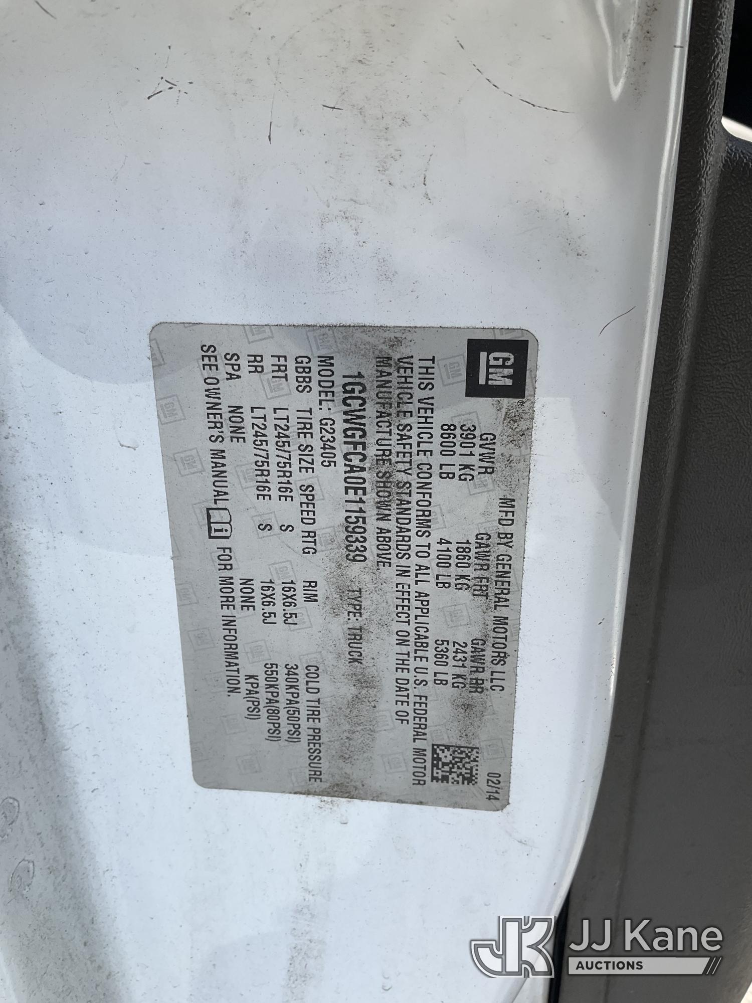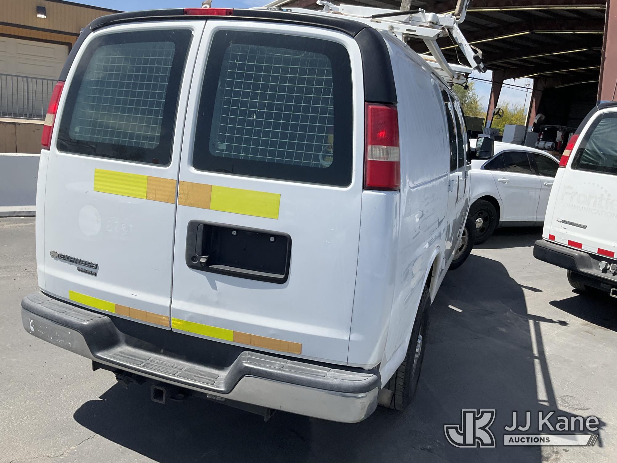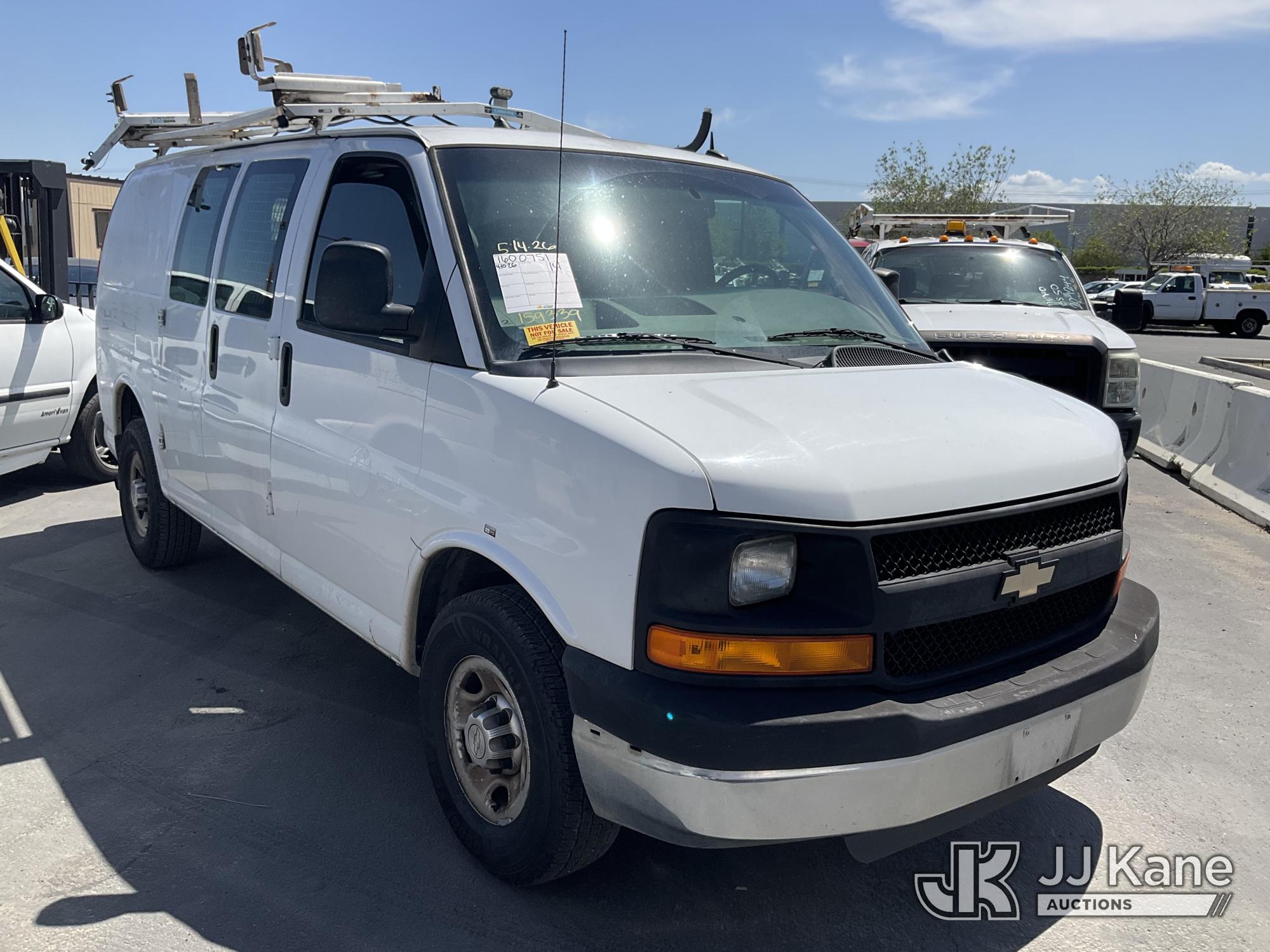 2014 Chevrolet Express 2500 Cargo Van, s/n 1GCWGFCA0E1159339, 4.8L V8 OHV 16V RWD, GAS, 6-Speed Automatic, A/C, with Ladder rack, (235,167 miles) (Runs & Moves, Engine Light On, Runs Rough) (Bidding Restricted to Licensed Vehicle Dealers Only), This is a Titled Item*