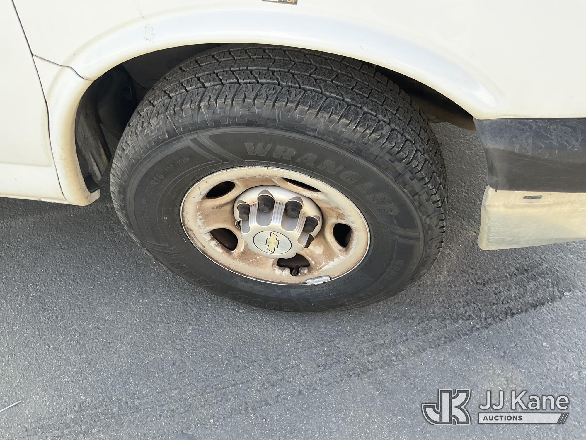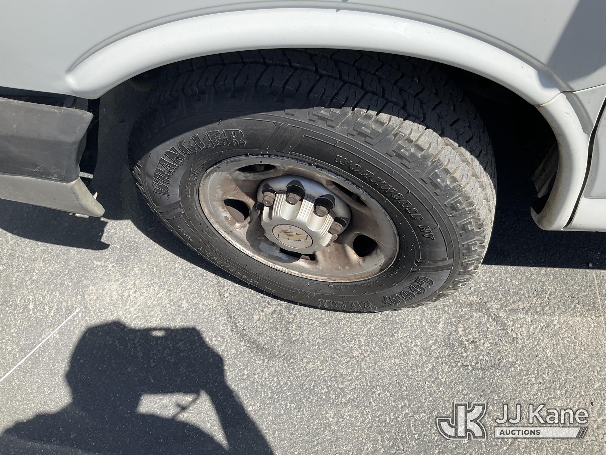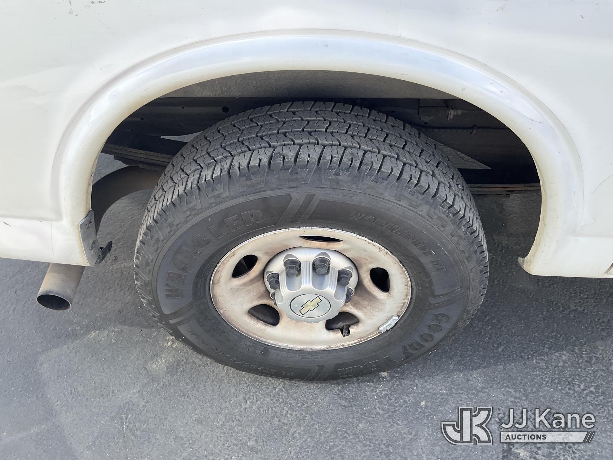 2014 Chevrolet Express 2500 Cargo Van, s/n 1GCWGFCA0E1159339, 4.8L V8 OHV 16V RWD, GAS, 6-Speed Automatic, A/C, with Ladder rack, (235,167 miles) (Runs & Moves, Engine Light On, Runs Rough) (Bidding Restricted to Licensed Vehicle Dealers Only), This is a Titled Item*