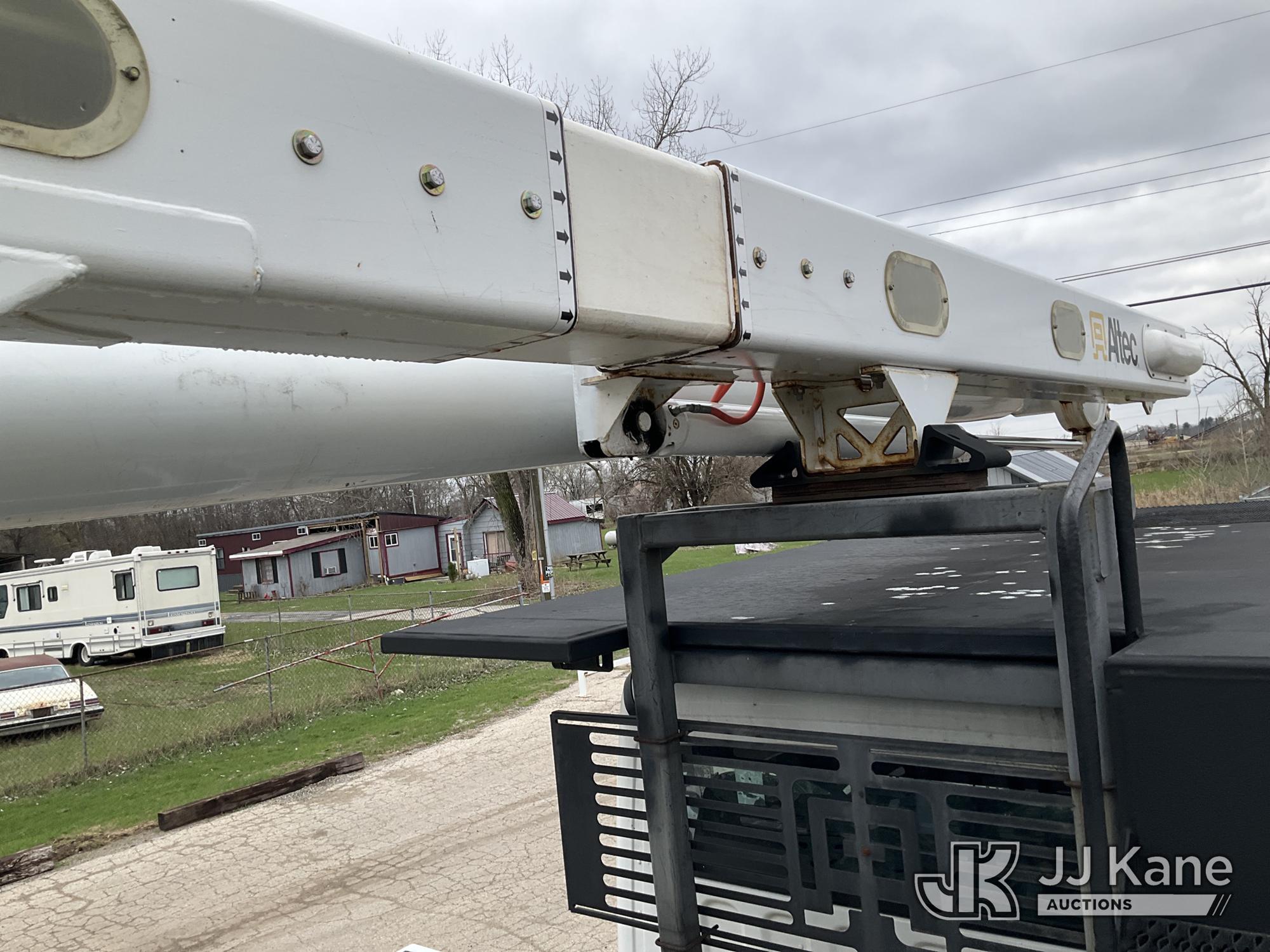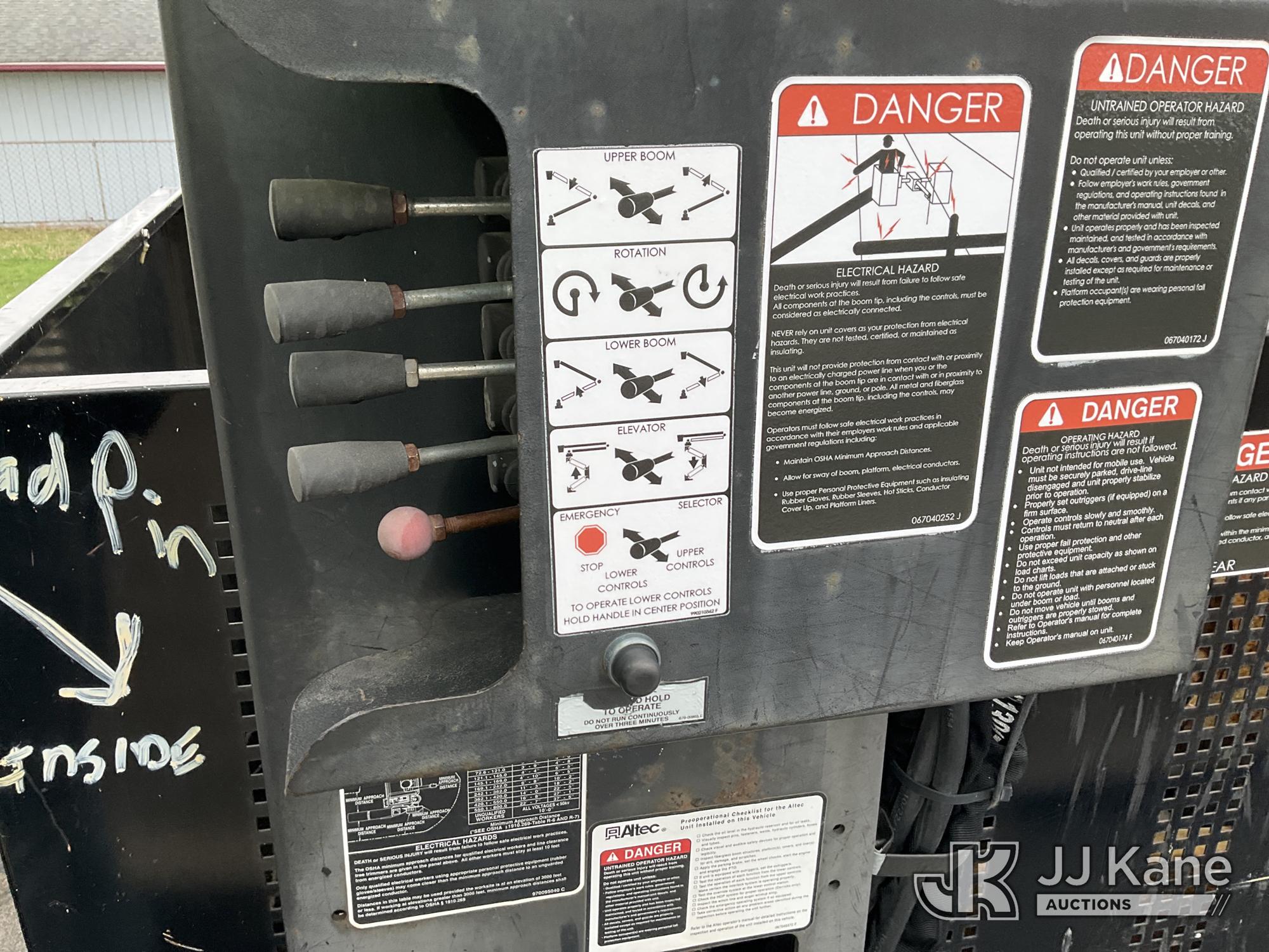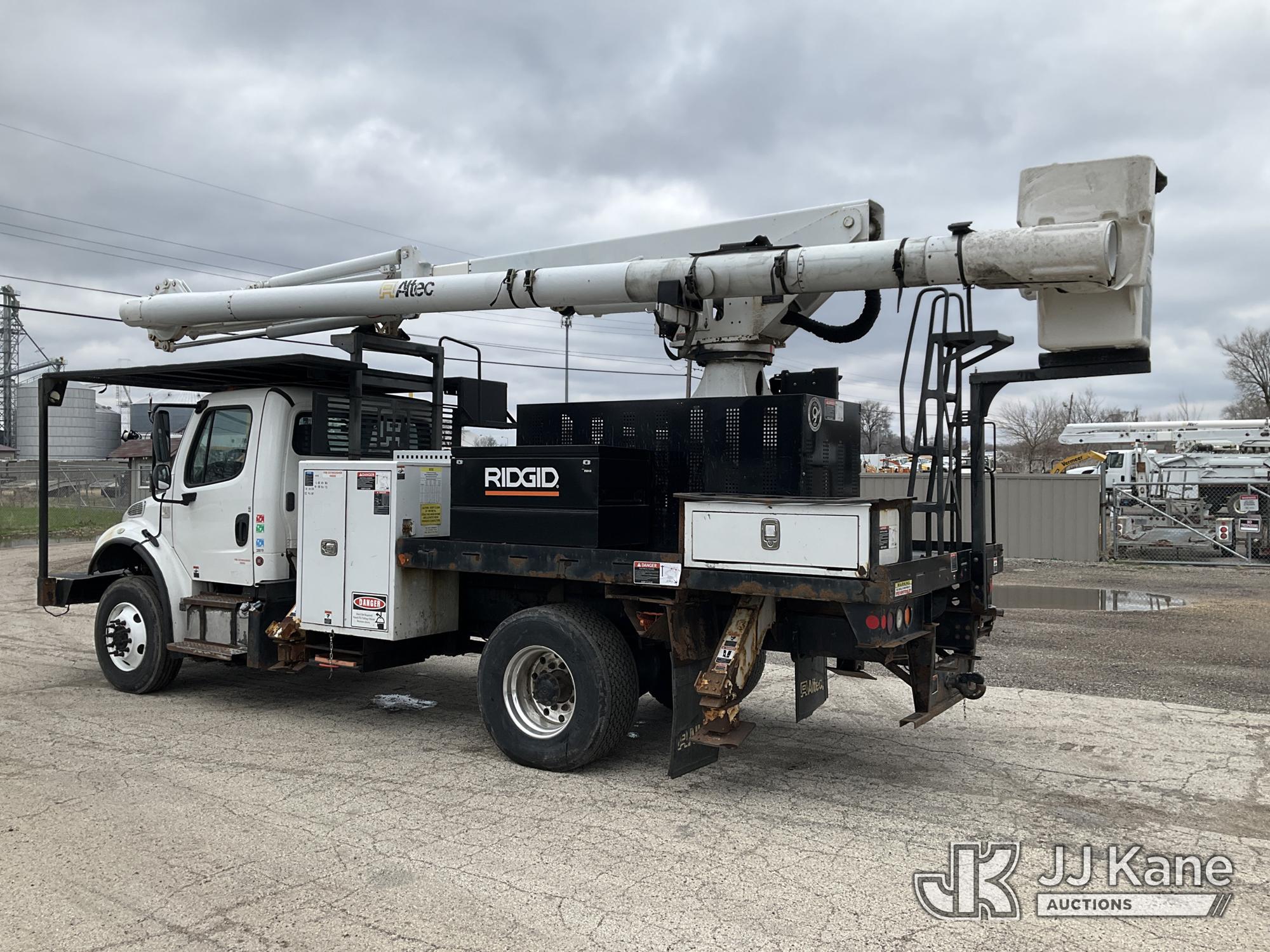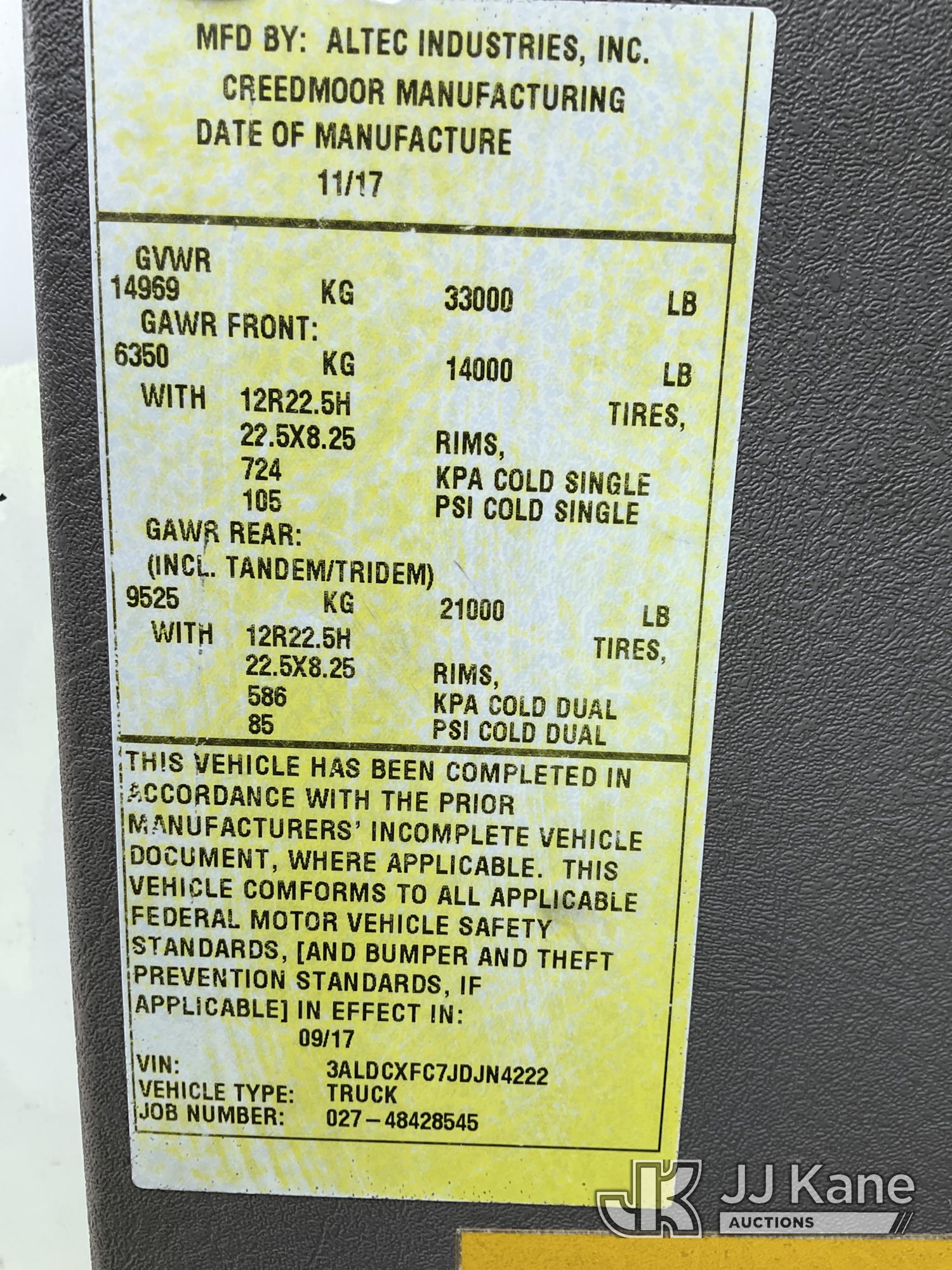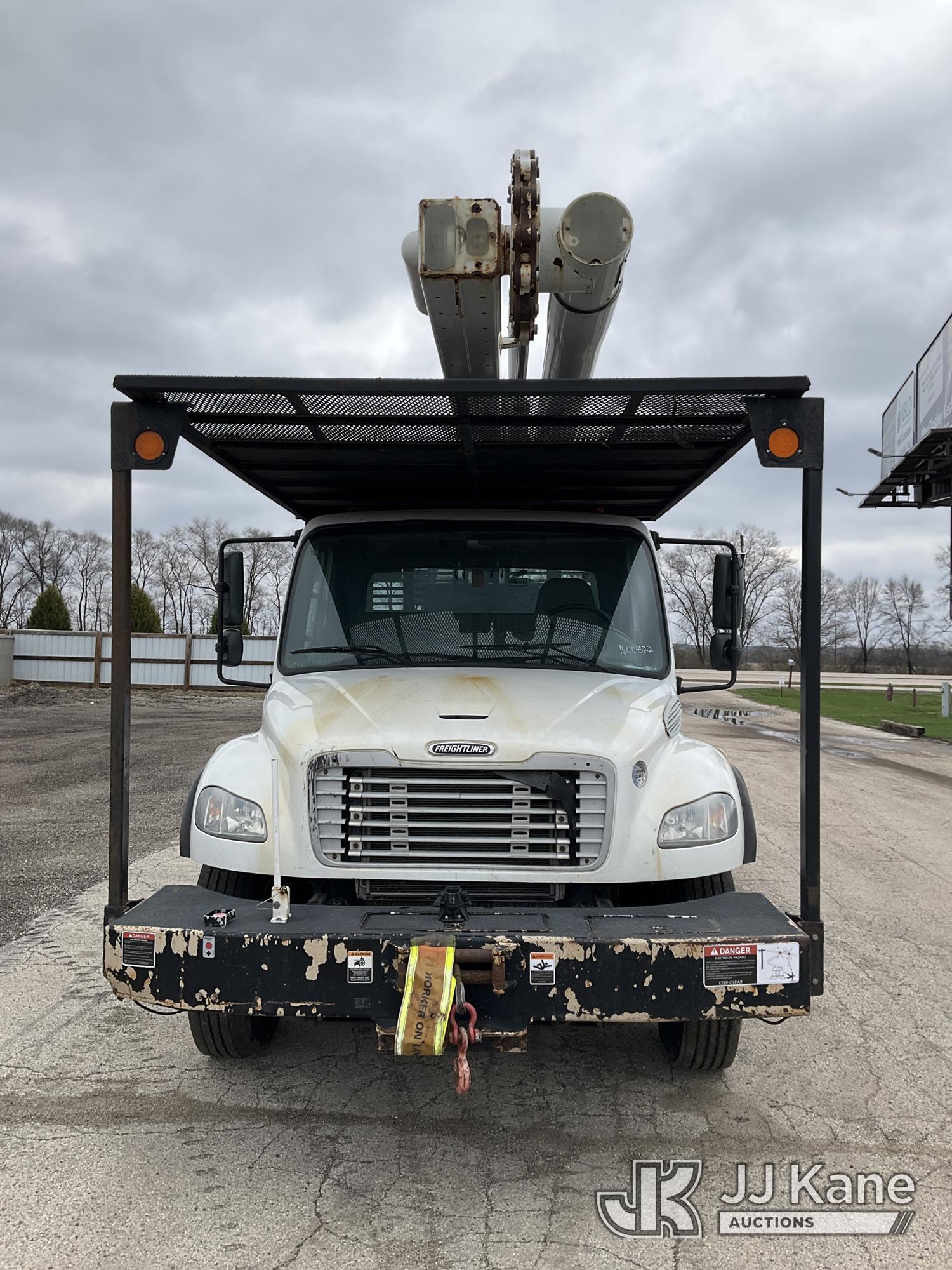 Altec LR7-60E70RM, 75 ft, Over-Center Elevator Bucket Truck s/n 1117FF7538, with Single-Man Bucket, 4 Hydraulic Outriggers, mounted on 2018 Freightliner M2 106 Flatbed/Service Truck, Cummins 6.7L Diesel 6-spd manual, A/C, with front bumper winch, (120,157 miles) (Runs, Moves, Hydraulic System Defect-Do Not Engage PTO, Upper Condition Unknown) (Brake System Non-Operational, Dash Indicator Light On, Windshield Deficiencies) (Seller States-Major repairs needed) (Reads 12,976 hours) This is a Titled Item*