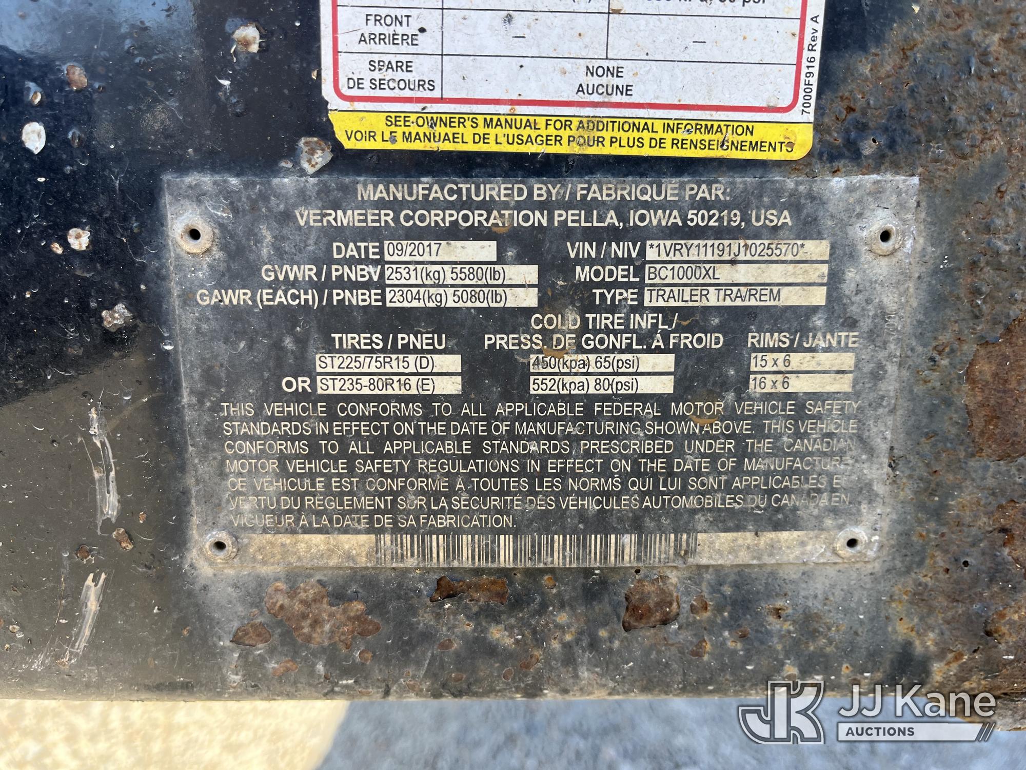 2018 Vermeer BC1000XL Portable Chipper (12in Drum), Deutz diesel, trailer mtd. (Runs, Operational Condition Unknown, Hour Meter Inop, High RPM) This is a Titled Item*