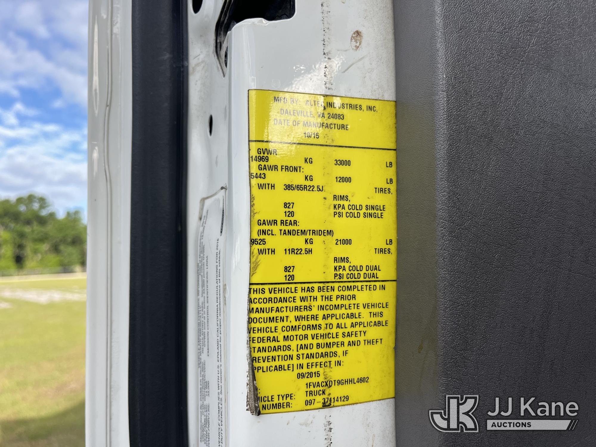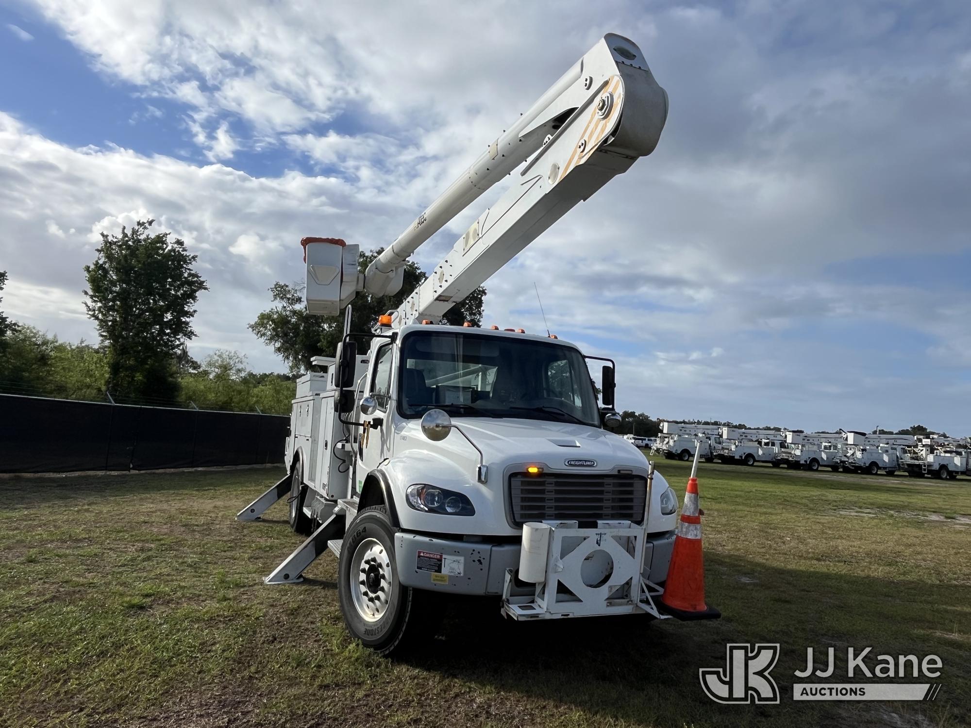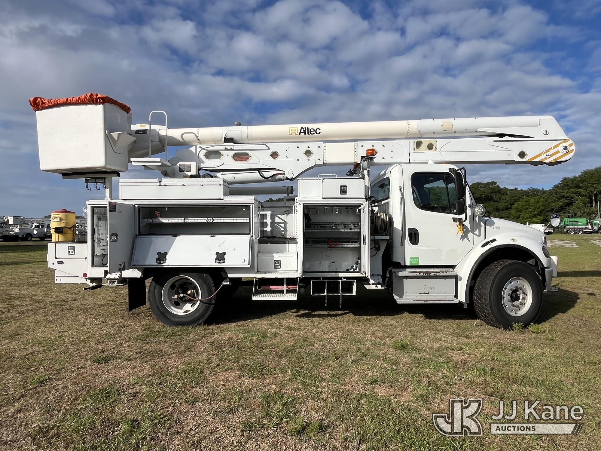 Altec AN55E, 60 ft, Material Handling Bucket Truck s/n 0915FJ0311, with two-man bucket & 4 hydraulic outriggers, rear mounted on 2016 Freightliner M2 106 Utility Truck, 6.7L L6 Diesel, 4X2, Auto, A/C, (96,989 miles) (Duke Unit) (Runs, Moves, Upper Operates) (FL Residents Purchasing Titled Items – tax, title & registration fees will be collected at the maximum rate of $400.00 under 25,999 and $800.00 for Over 26,000 and $250.00 trailers – Proof of insurance is mandatory; Out of State Residents Purchasing Title Items – tax will be collected based upon your state rate.) (Reads 10,495 hours) This is a Titled Item*