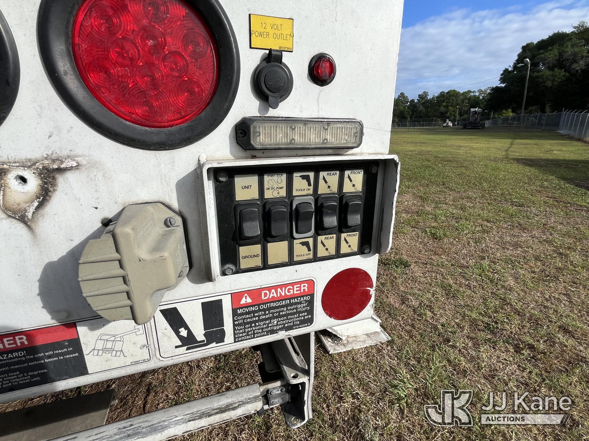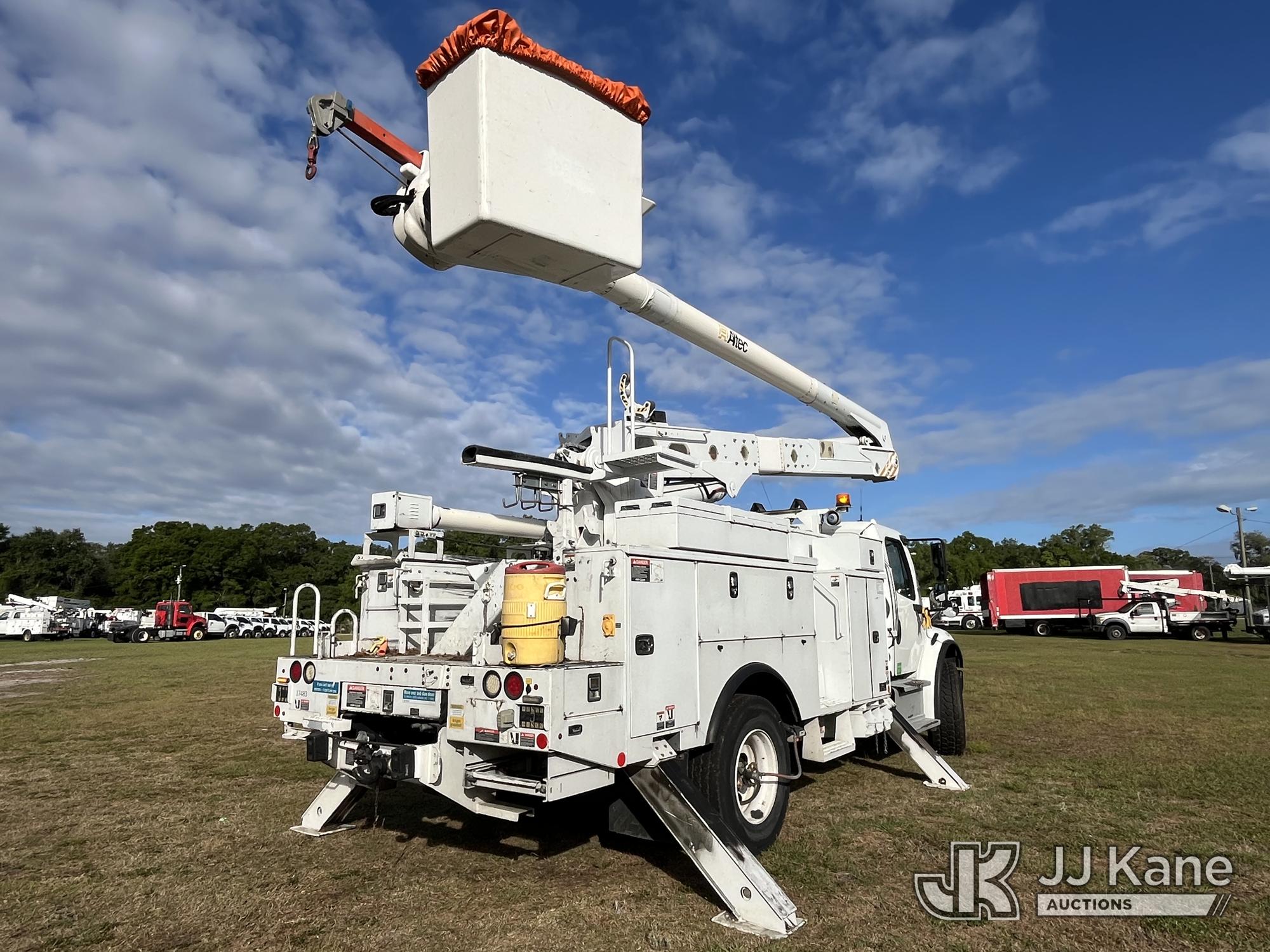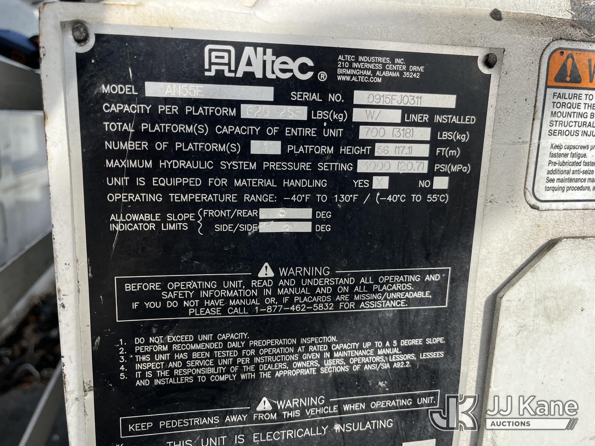 Altec AN55E, 60 ft, Material Handling Bucket Truck s/n 0915FJ0311, with two-man bucket & 4 hydraulic outriggers, rear mounted on 2016 Freightliner M2 106 Utility Truck, 6.7L L6 Diesel, 4X2, Auto, A/C, (96,989 miles) (Duke Unit) (Runs, Moves, Upper Operates) (FL Residents Purchasing Titled Items – tax, title & registration fees will be collected at the maximum rate of $400.00 under 25,999 and $800.00 for Over 26,000 and $250.00 trailers – Proof of insurance is mandatory; Out of State Residents Purchasing Title Items – tax will be collected based upon your state rate.) (Reads 10,495 hours) This is a Titled Item*