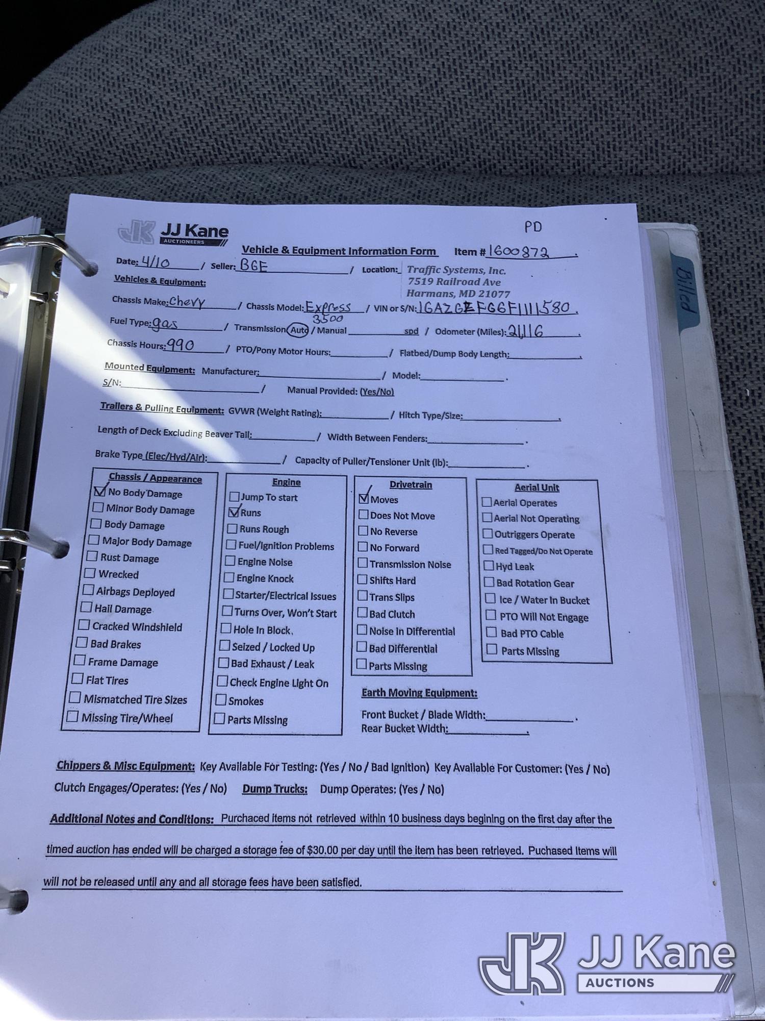 2015 Chevrolet Express 3500 Extended Passenger Van, 6.0L V8 FFV, RWD, Automatic, A/C, (21,116 miles) (Runs & Moves) (Removal is by Appointment Only, Buyer MUST make a appointment prior to picking up, Buyer/Transporter Must have PAID IN FULL RELEASE. No onsite assistance available, Please Come prepared.) This is a Titled Item*