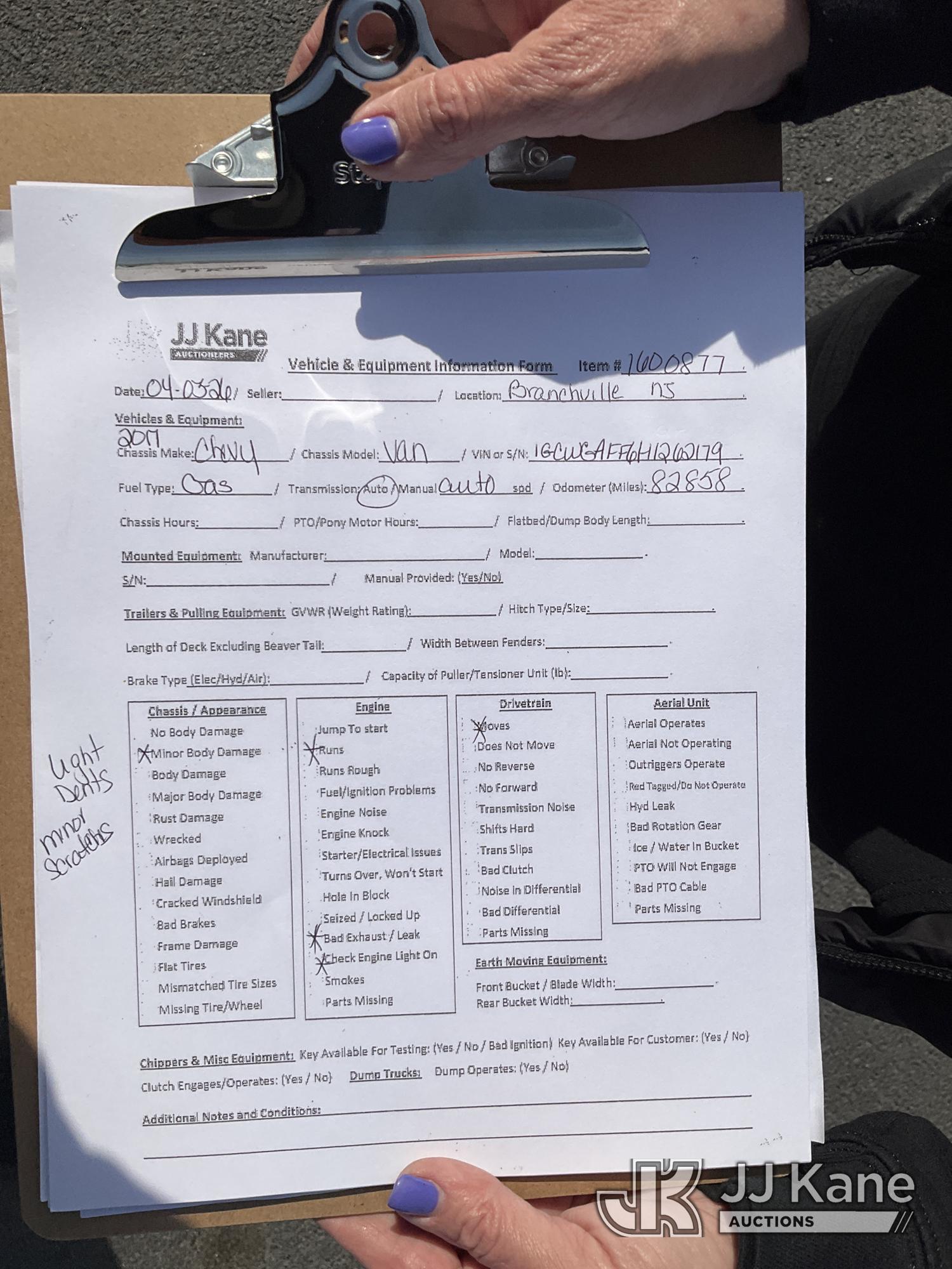 2017 Chevrolet Express G2500 Cargo Van, 8-cyl gas, Auto, A/C, (82,858 miles) (Runs & Moves, Bad Exhaust, Engine Light On) (Removal is by Appointment Only, Buyer MUST make a appointment prior to picking up, Buyer/Transporter Must have PAID IN FULL RELEASE. No onsite assistance available, Please Come prepared.) This is a Titled Item*