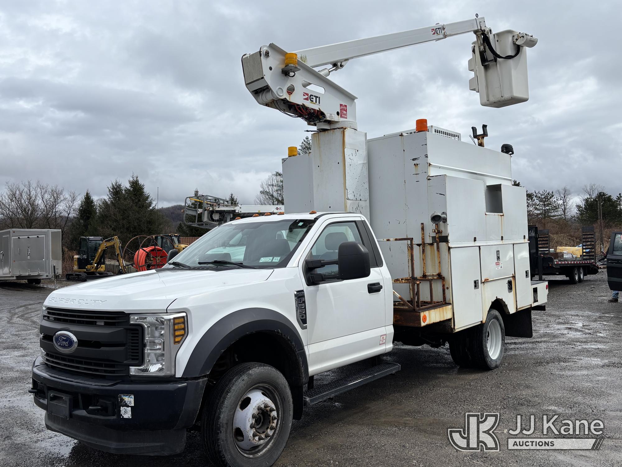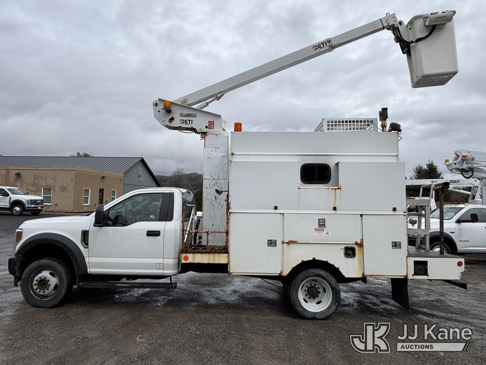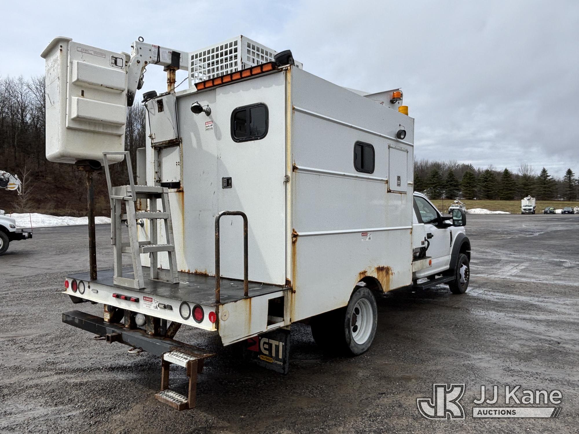 ETI ETT29-SNT, 34 ft, Telescopic Non-Insulated Bucket Van s/n 0418T914751, with single-man bucket, mounted behind cab on 2018 Ford F550 4x4 Enclosed Service Truck, 6.8L V10 SOHC 30V Gas, Auto, A/C, with Cummins Onan 5.5 generator, (199,588 miles) This is a Titled Item*