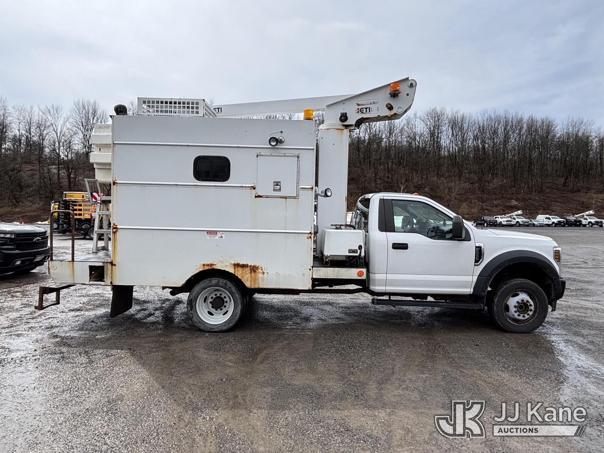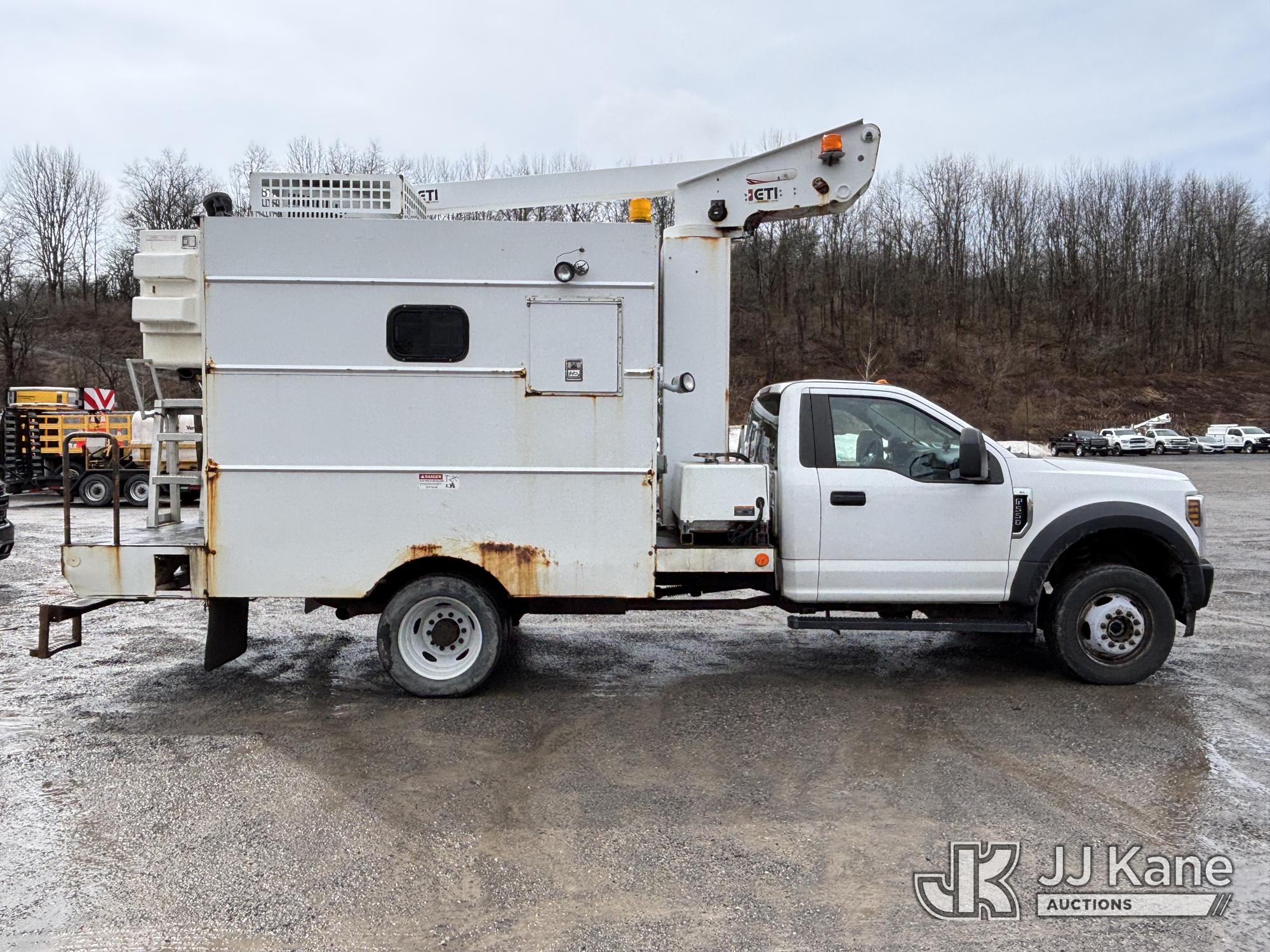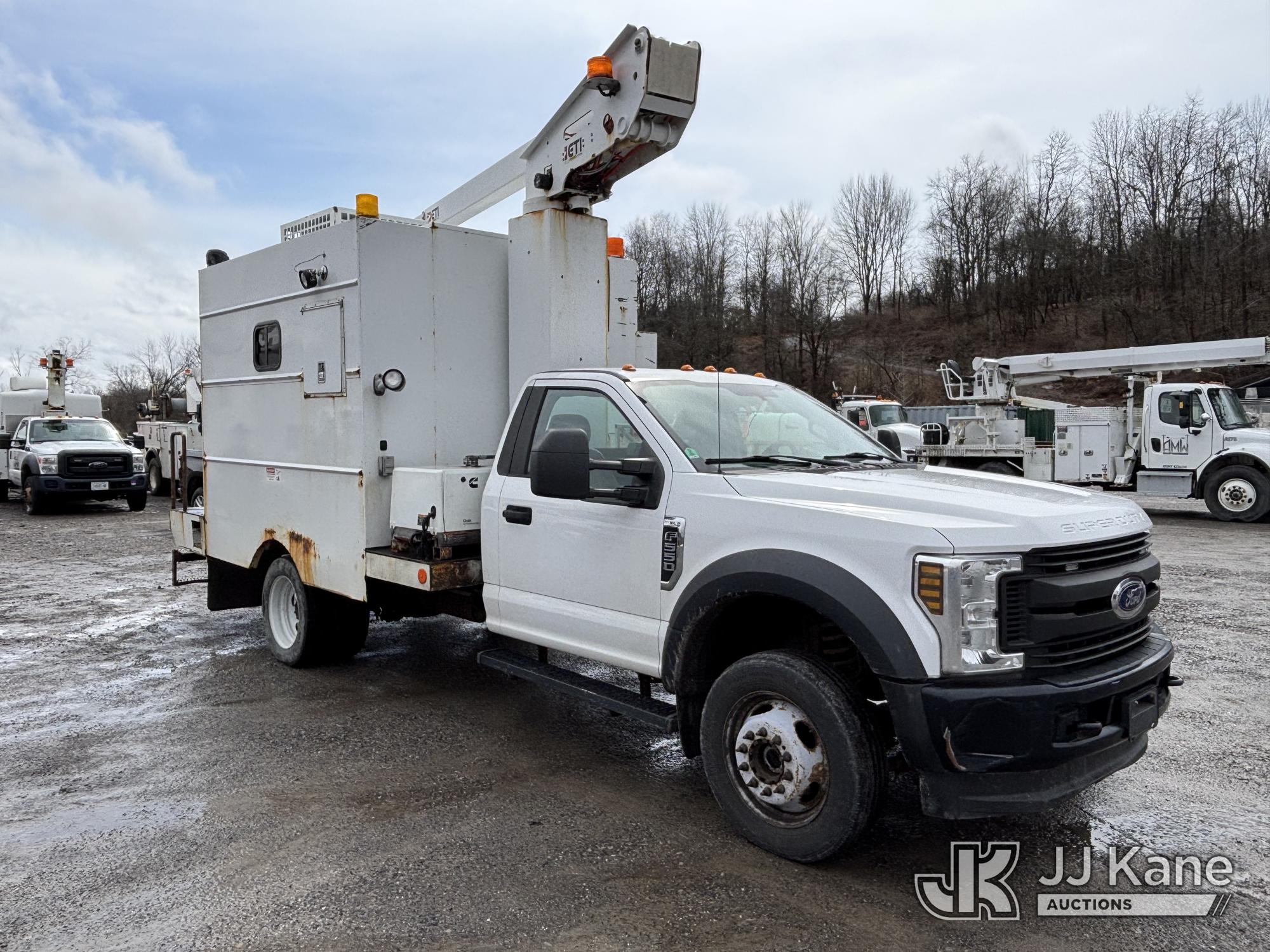 ETI ETT29-SNT, 34 ft, Telescopic Non-Insulated Bucket Van s/n 0418T914751, with single-man bucket, mounted behind cab on 2018 Ford F550 4x4 Enclosed Service Truck, 6.8L V10 SOHC 30V Gas, Auto, A/C, with Cummins Onan 5.5 generator, (199,588 miles) This is a Titled Item*