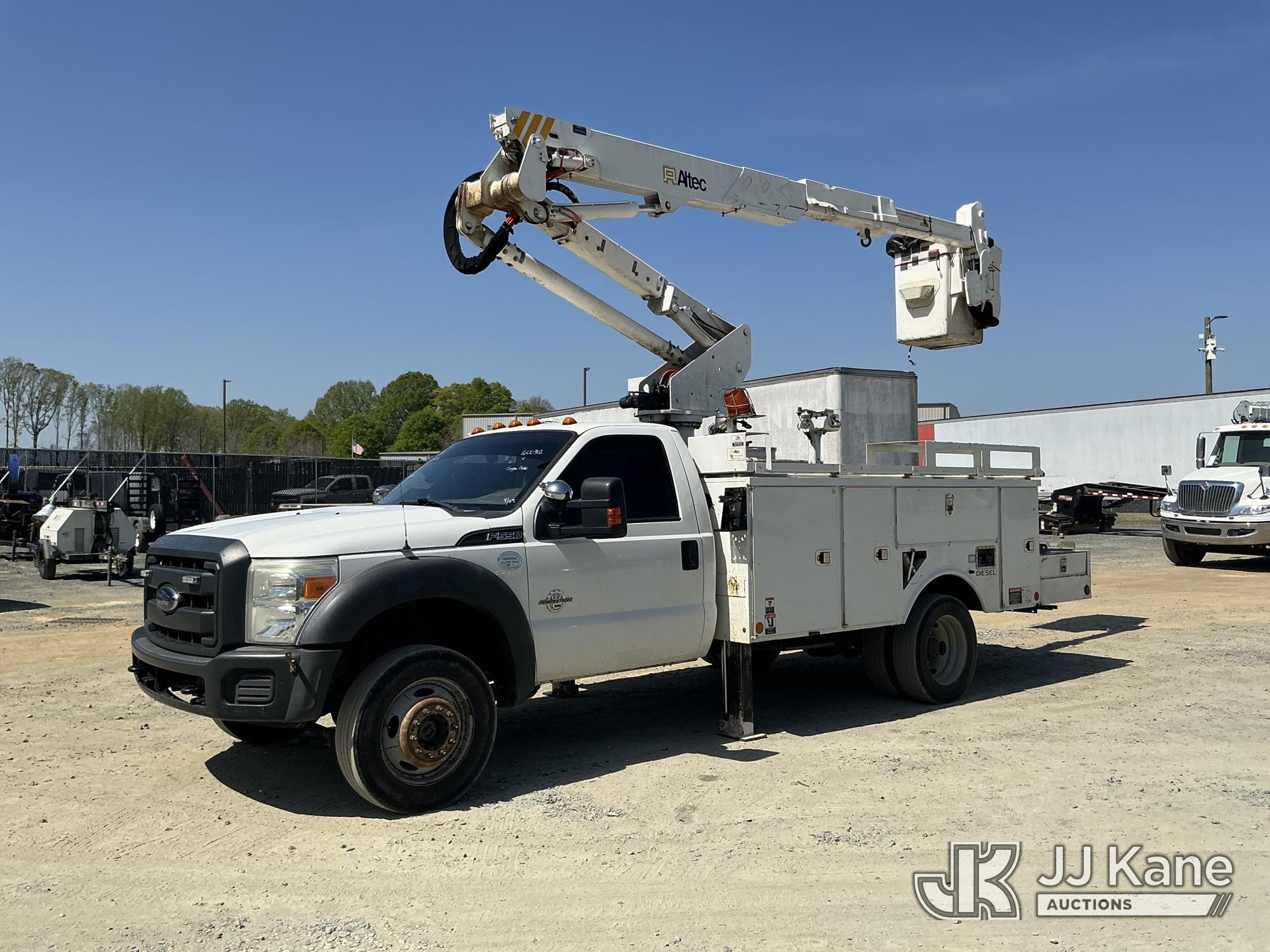 Altec AT37G, 42 ft, Articulating & Telescopic Bucket Truck s/n 0413DE15406, with single-man bucket, mounted behind cab on 2013 Ford F550 4X4 Service Truck, 6.7L diesel, Auto, A/C, (245,996 miles) (Runs, Moves & Upper Operates) (Engine Noise) This is a Titled Item*