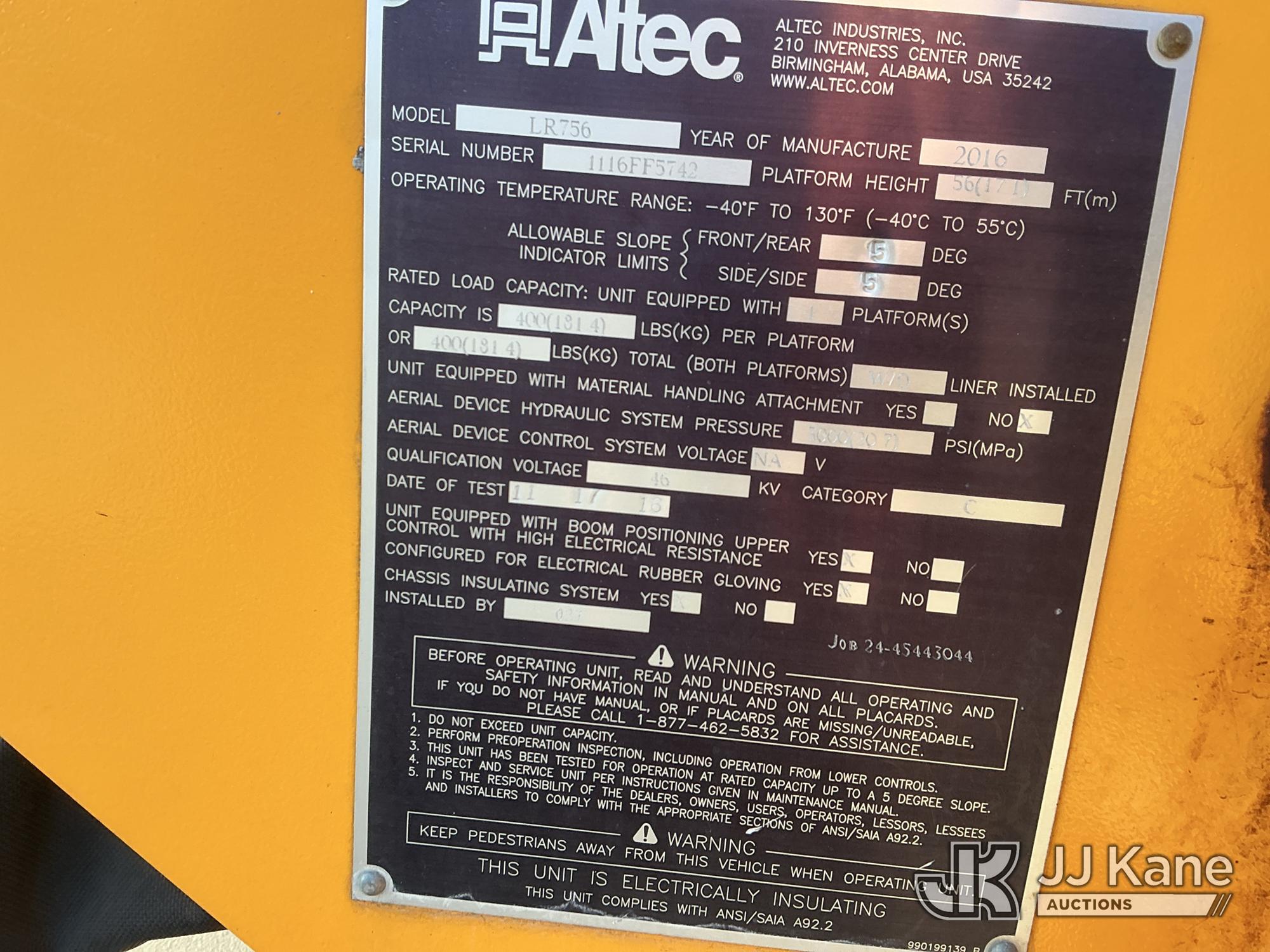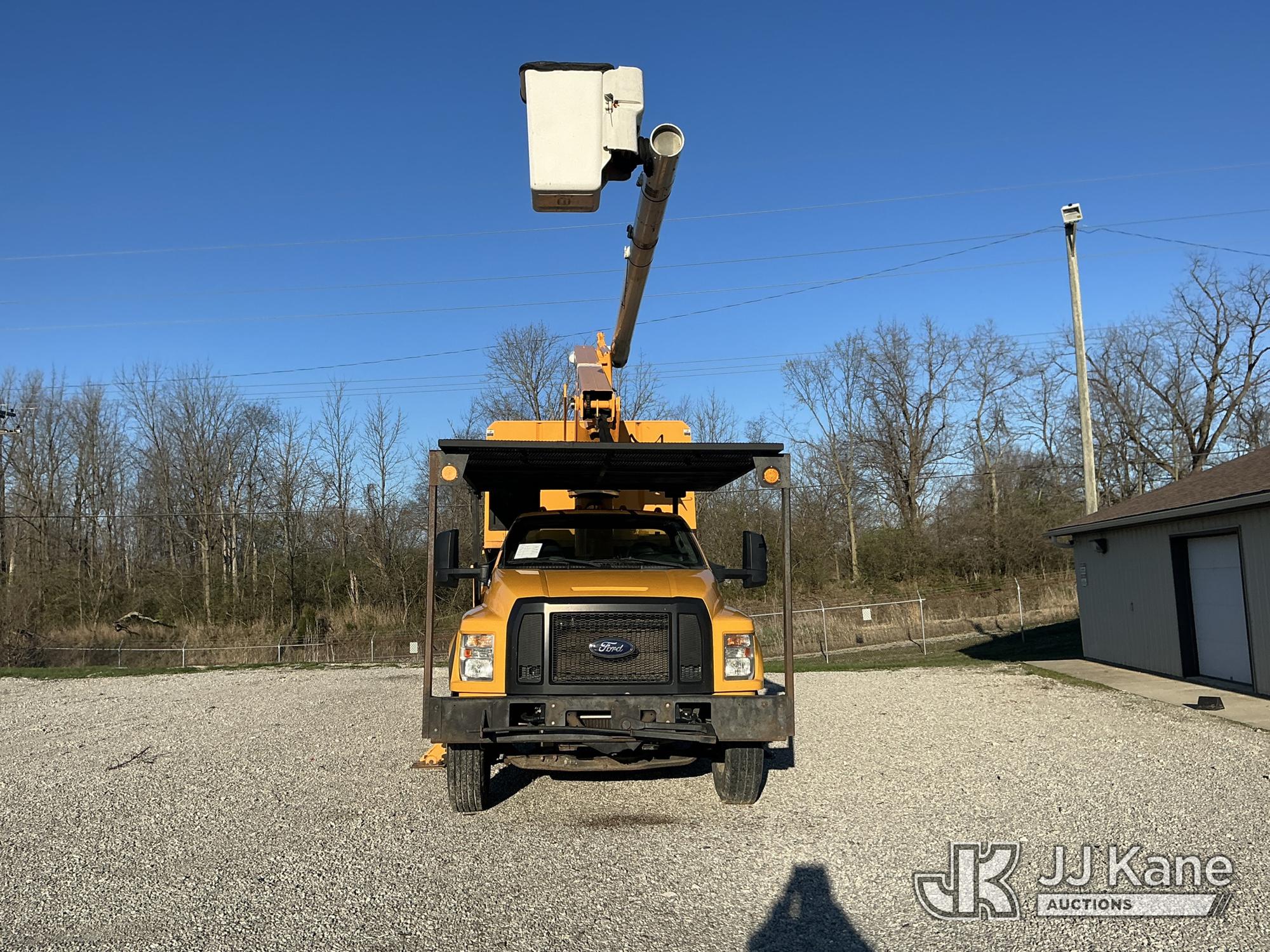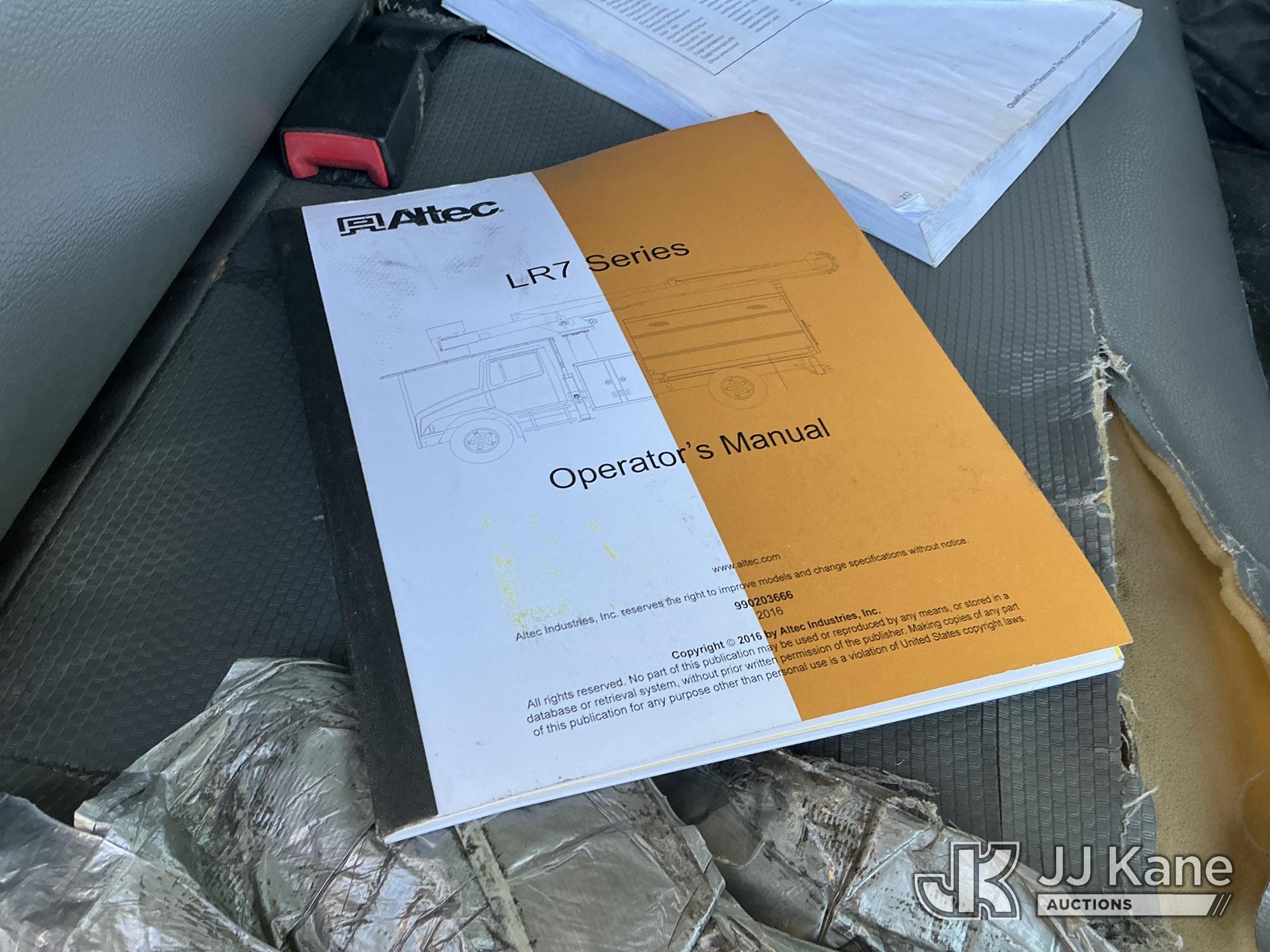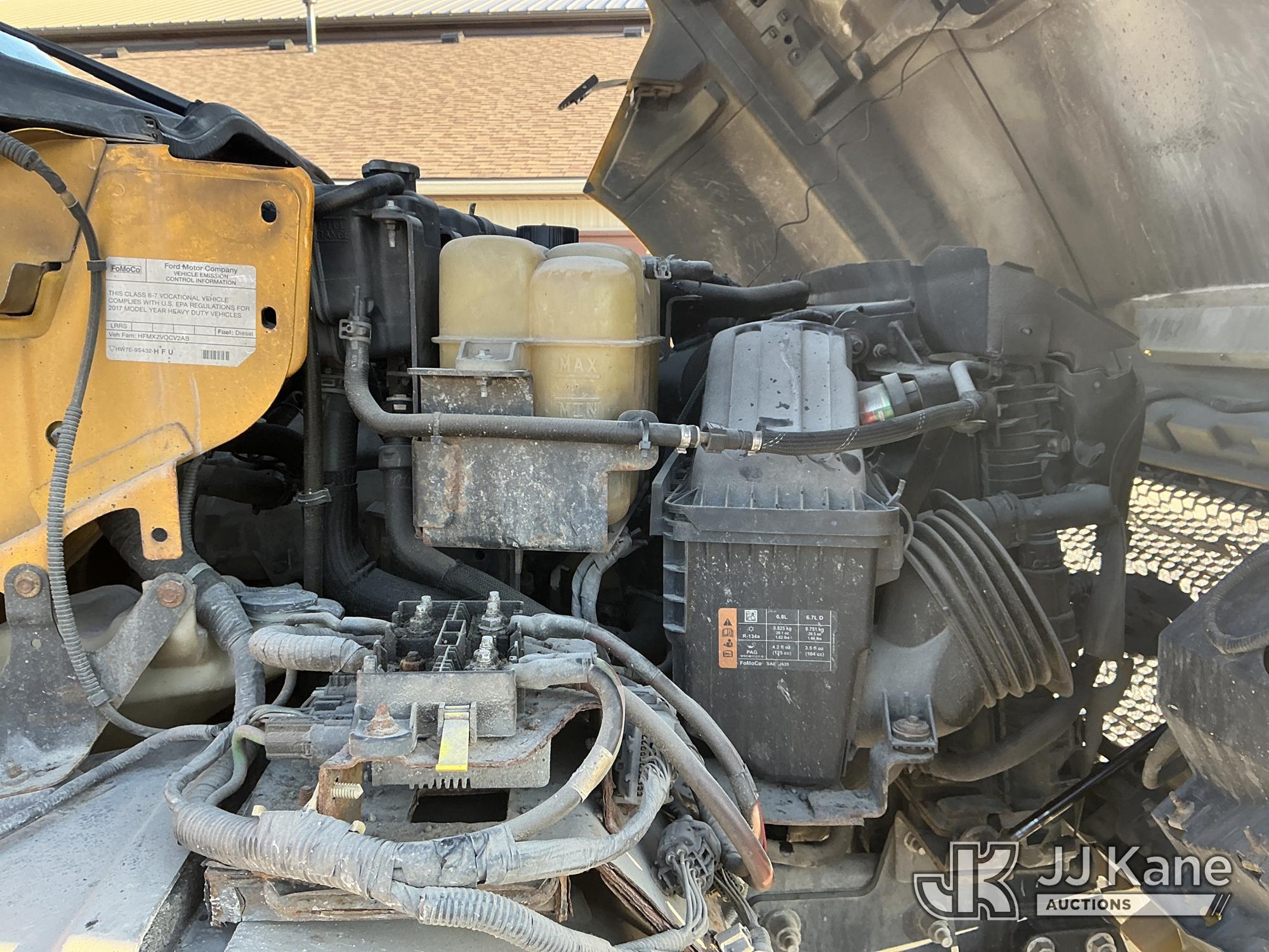 Altec LR7-56, 61 ft, Over-Center Bucket Truck s/n 1116FF5742, with single-man bucket & 2 hyd outriggers, mounted behind cab on 2017 Ford F750 Chipper Dump Truck, s/n 1FDNF7DC6HDB03411, 6.7L V8 Diesel, Auto, (61,651 miles) (Runs, Moves & Upper Operates) (Check Engine Light On, EPB Light On, Engine Noise, Coolant Leak, Body Damage) (The manufacturer has notified JJ Kane that this equipment is subject to an open recall. CSN 672 LRV/LR7 Leveling Yoke Inspection The equipment should not be operated until this is addressed. Buyer is responsible for reviewing the recall notice and contacting the manufacturer to schedule the recommended corrective actions. Associated costs may be covered by the manufacturer in some cases.) This is a Titled Item*
