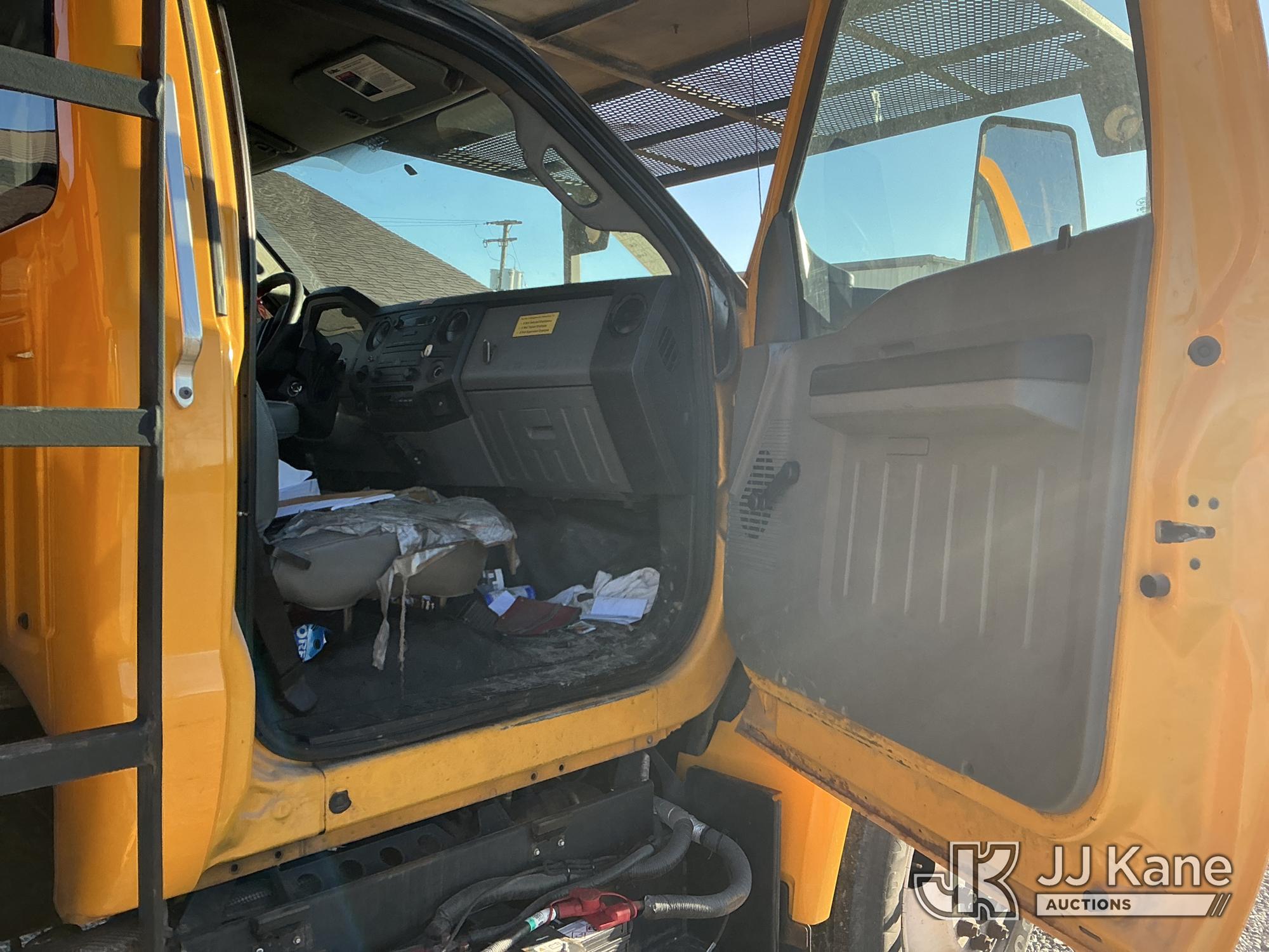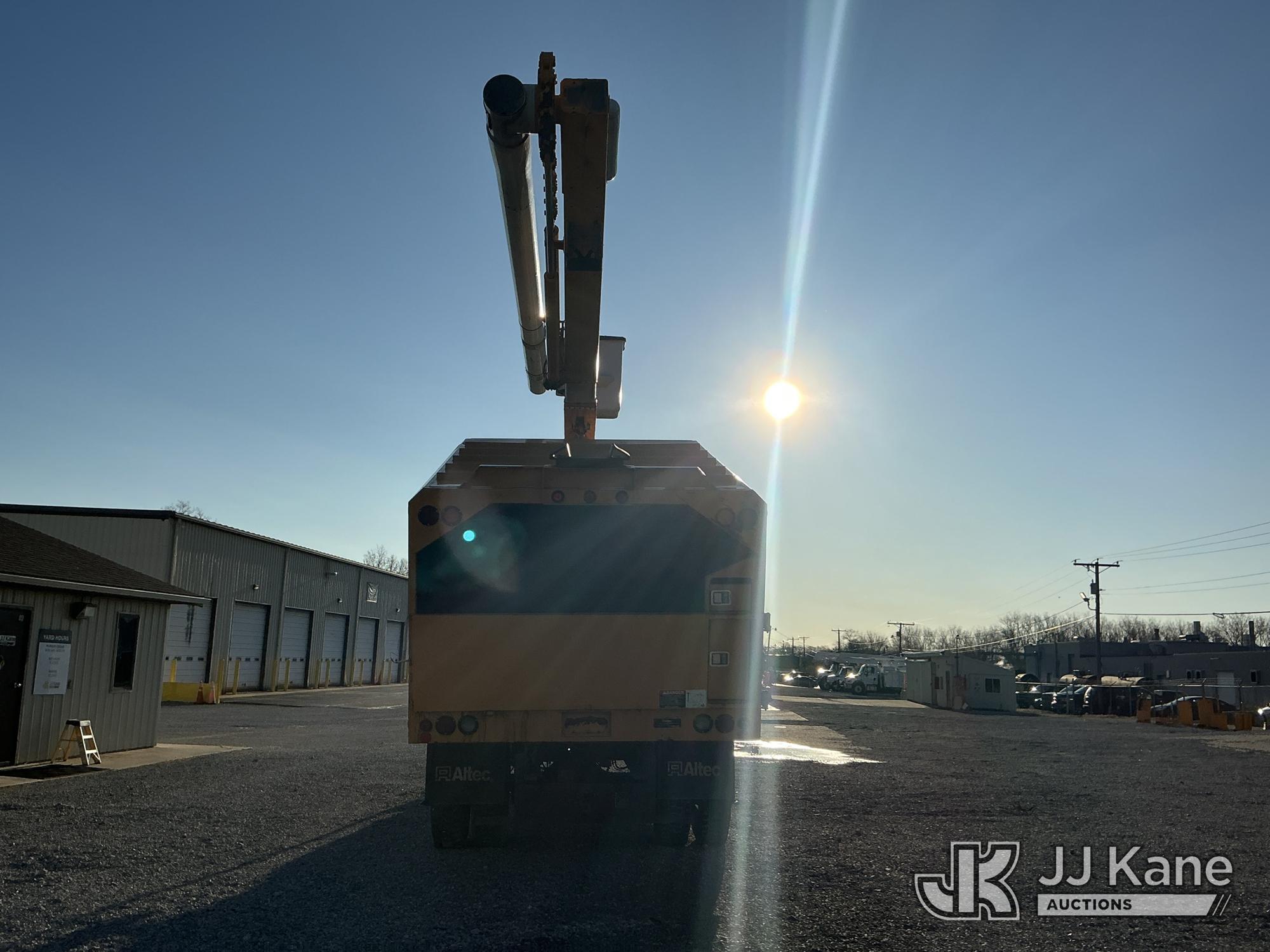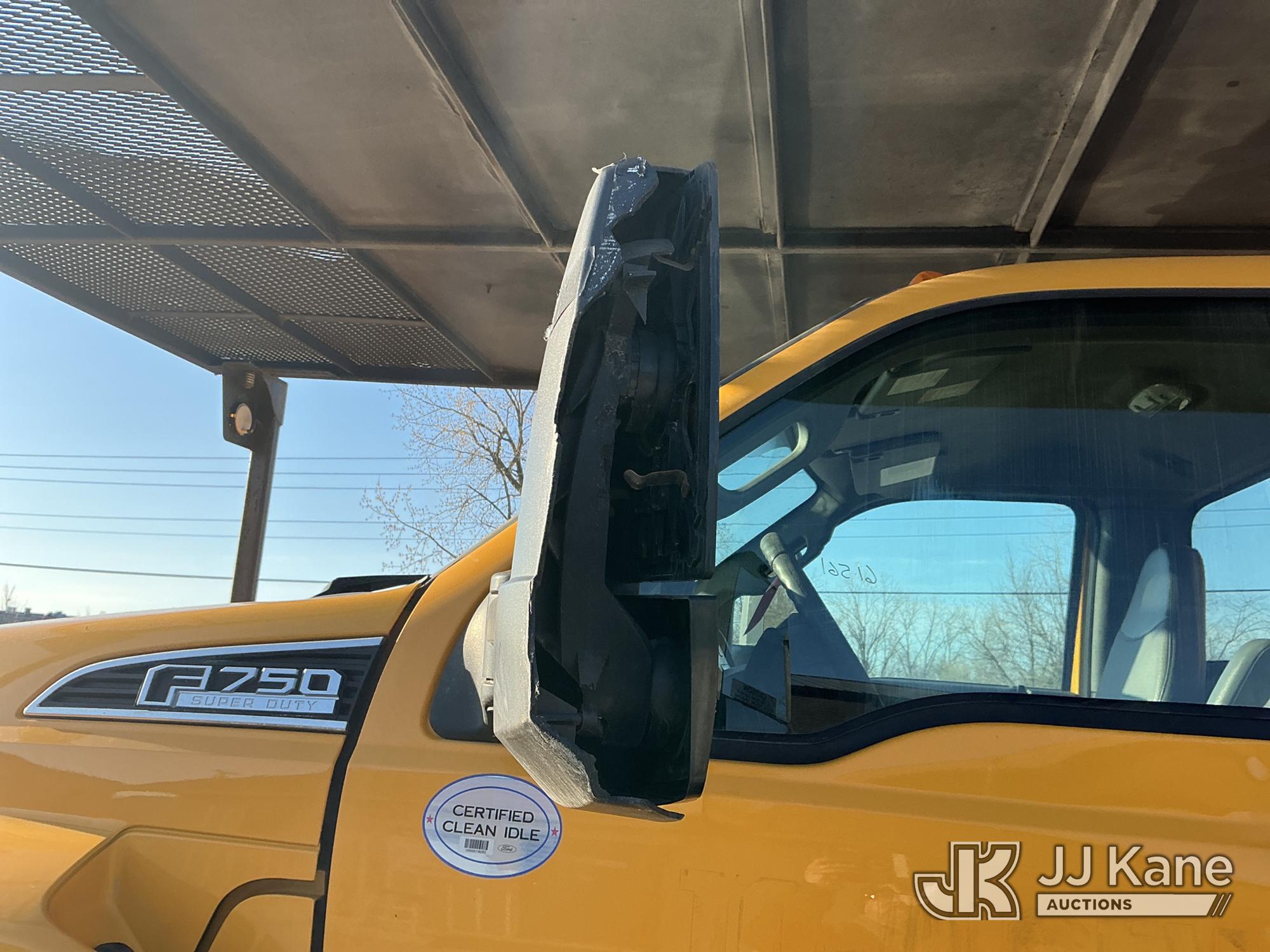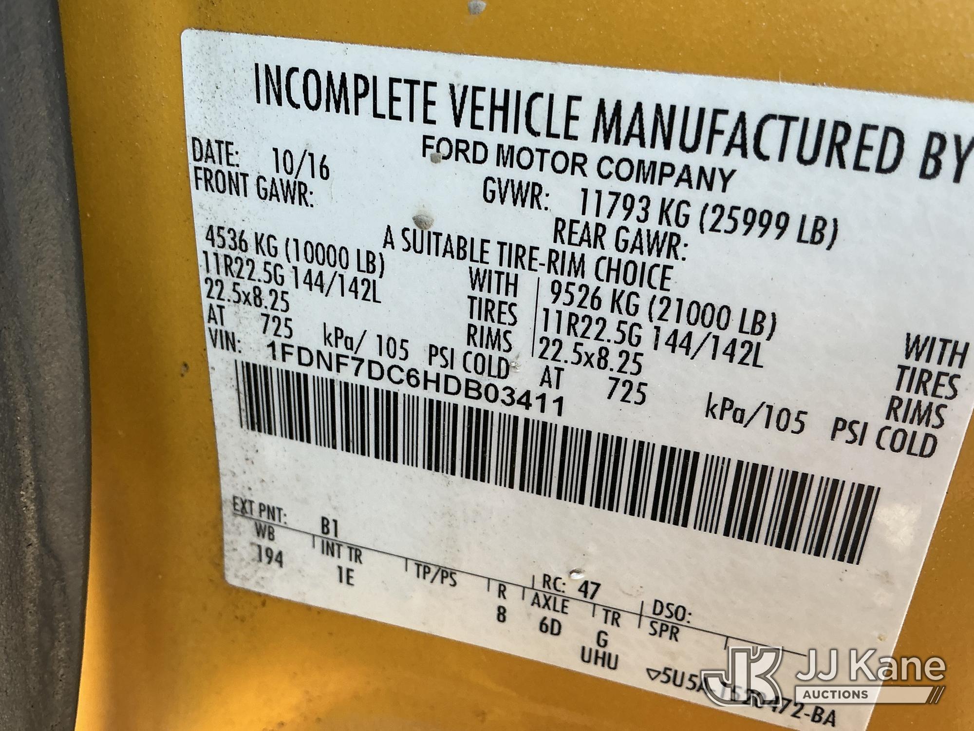 Altec LR7-56, 61 ft, Over-Center Bucket Truck s/n 1116FF5742, with single-man bucket & 2 hyd outriggers, mounted behind cab on 2017 Ford F750 Chipper Dump Truck, s/n 1FDNF7DC6HDB03411, 6.7L V8 Diesel, Auto, (61,651 miles) (Runs, Moves & Upper Operates) (Check Engine Light On, EPB Light On, Engine Noise, Coolant Leak, Body Damage) (The manufacturer has notified JJ Kane that this equipment is subject to an open recall. CSN 672 LRV/LR7 Leveling Yoke Inspection The equipment should not be operated until this is addressed. Buyer is responsible for reviewing the recall notice and contacting the manufacturer to schedule the recommended corrective actions. Associated costs may be covered by the manufacturer in some cases.) This is a Titled Item*